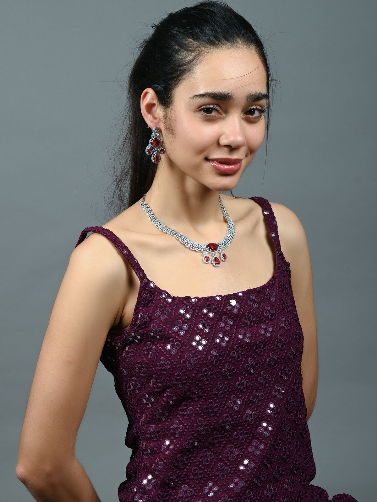 Odette Burgundy Alloy Embellished Jewellery Set For Women