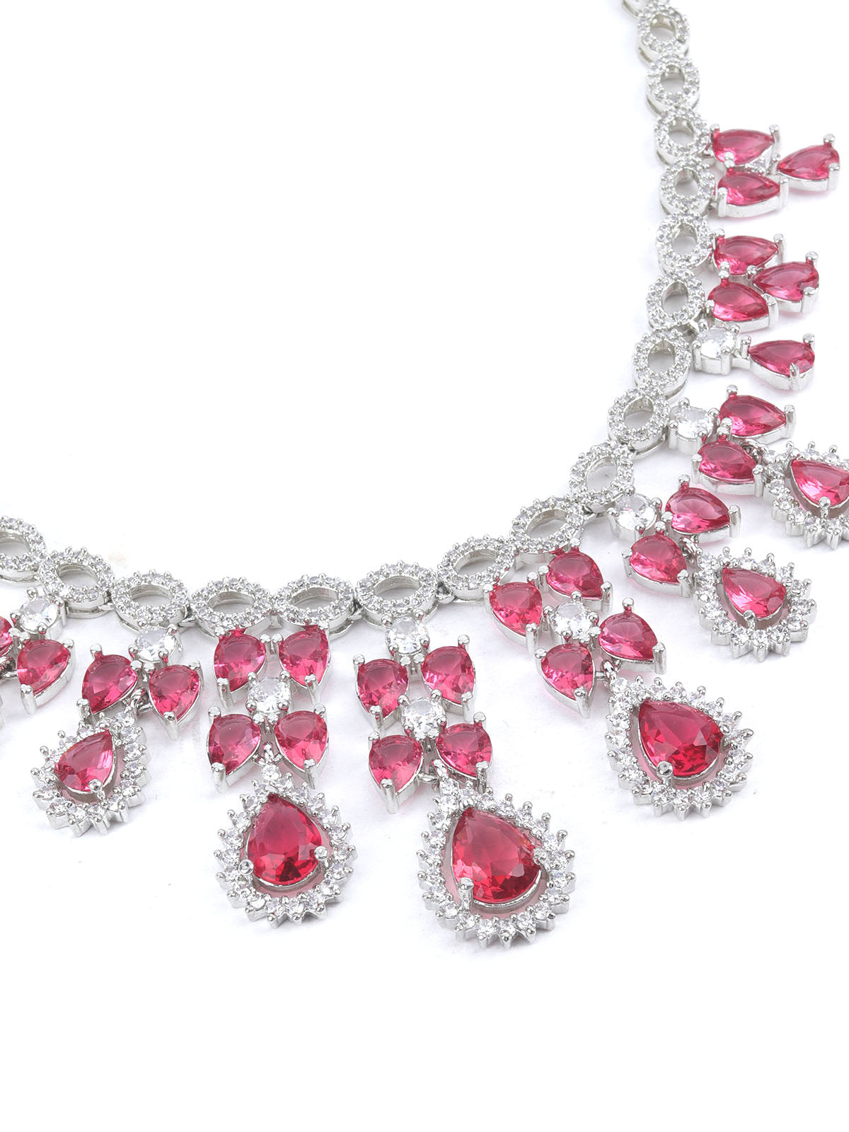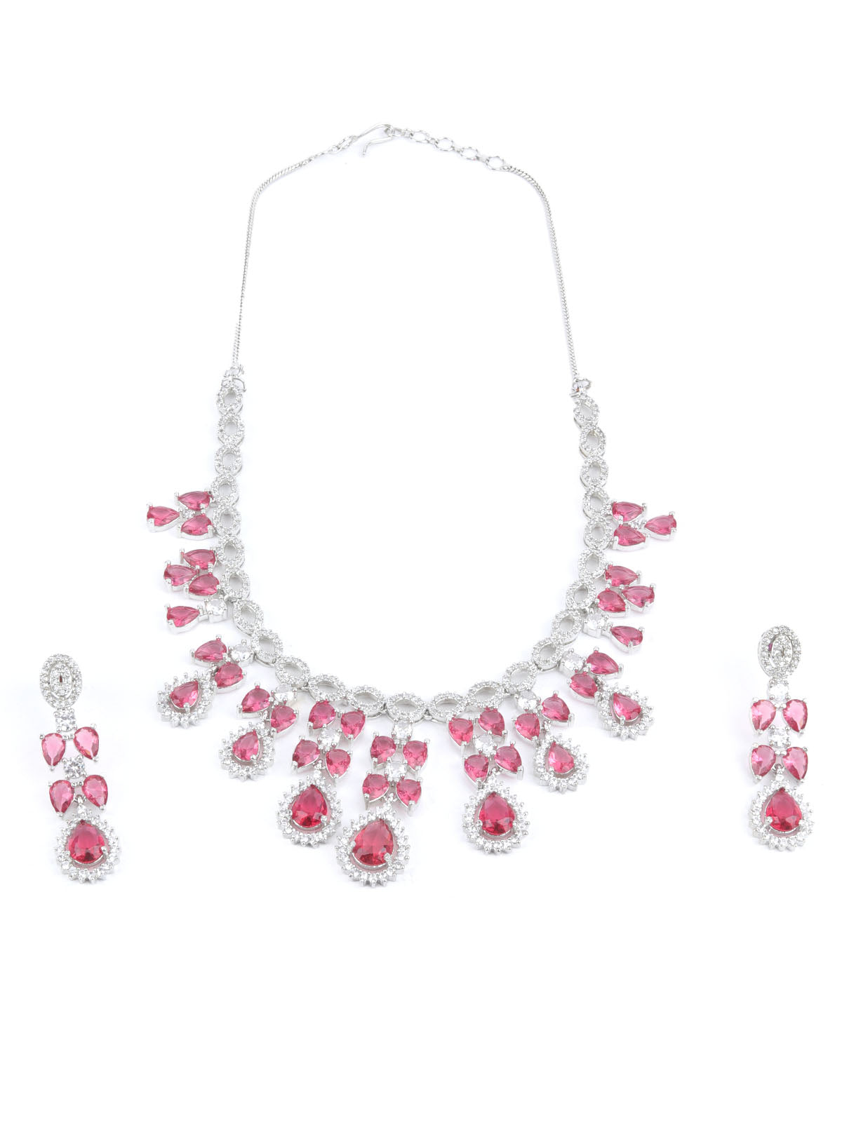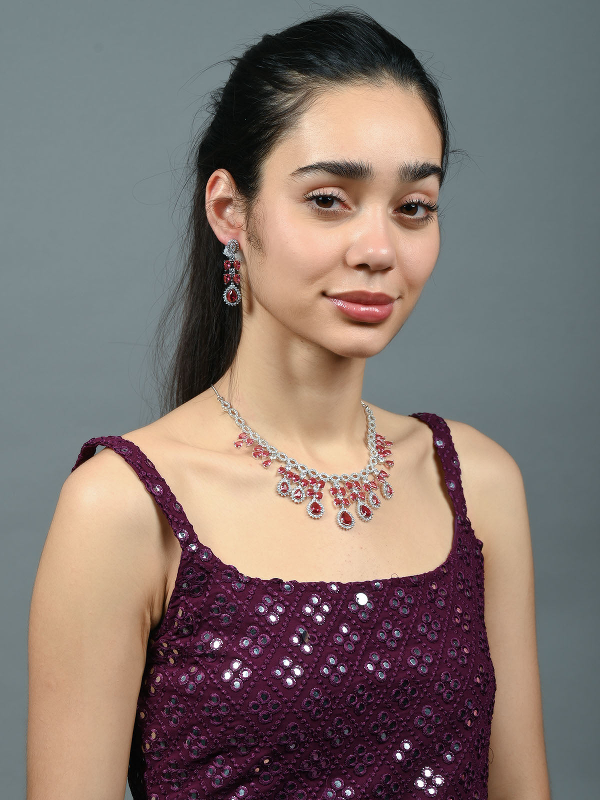 Odette Dark Pink Alloy Embellished Jewellery Set For Women