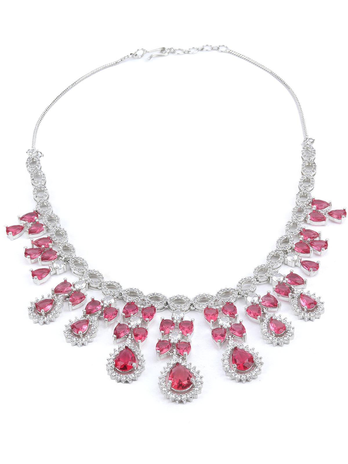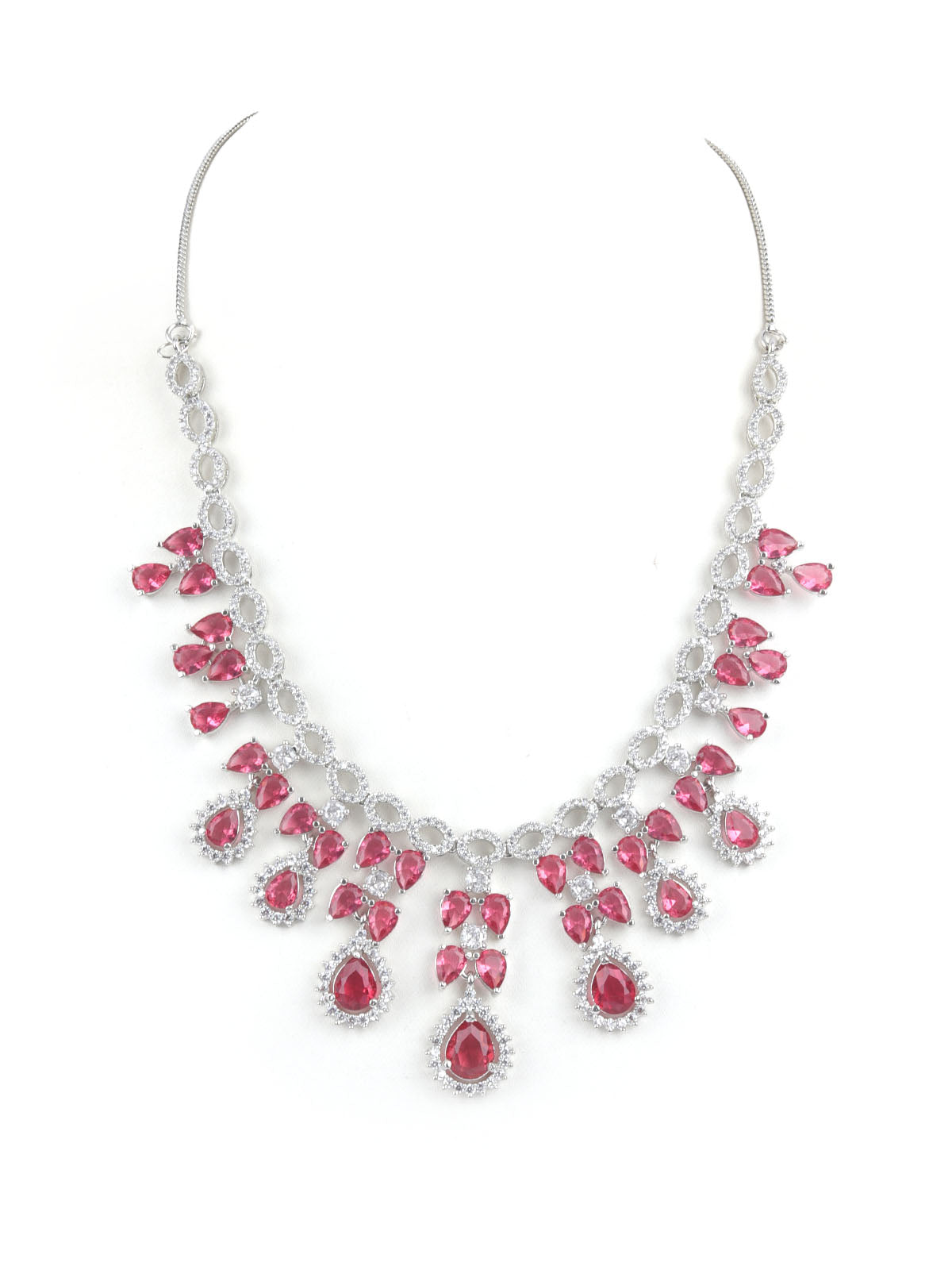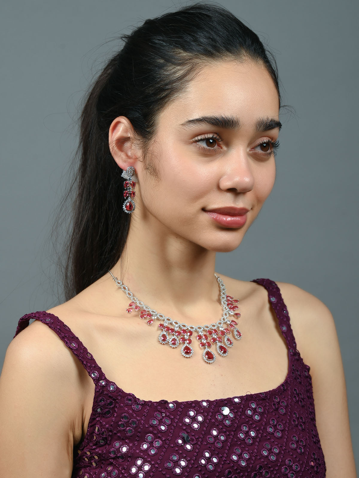 Odette Dark Pink Alloy Embellished Jewellery Set For Women