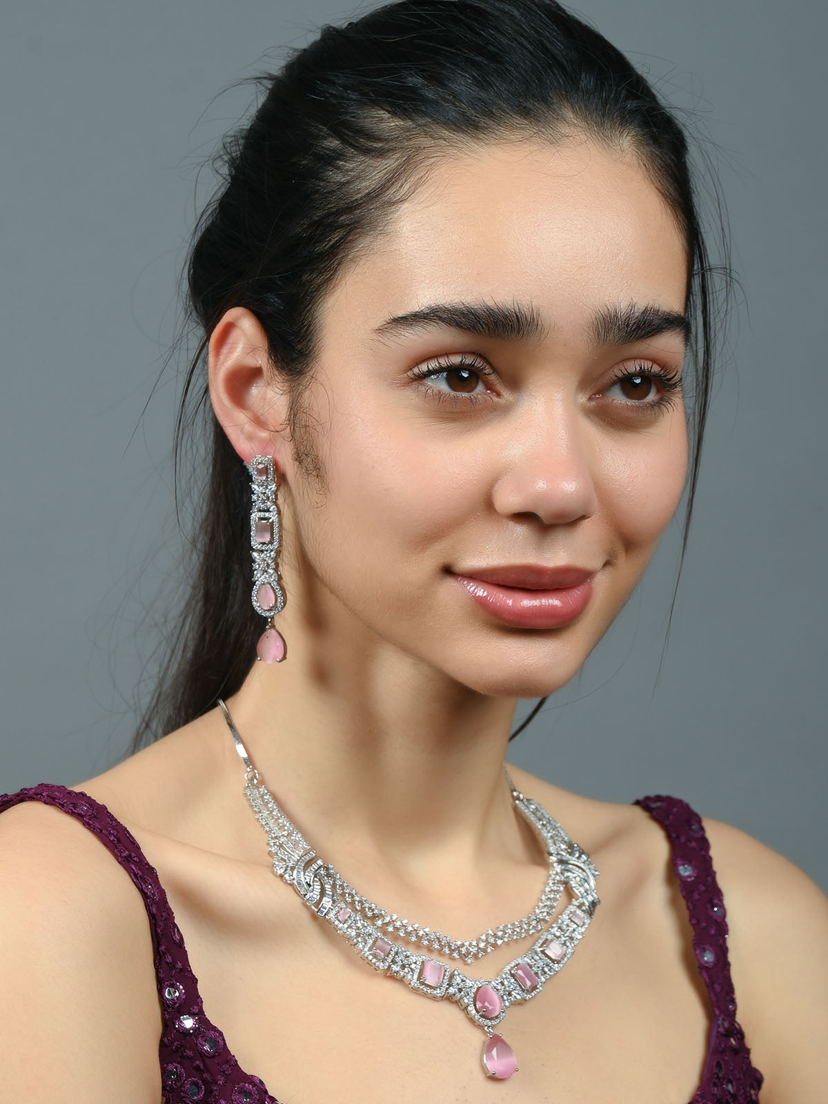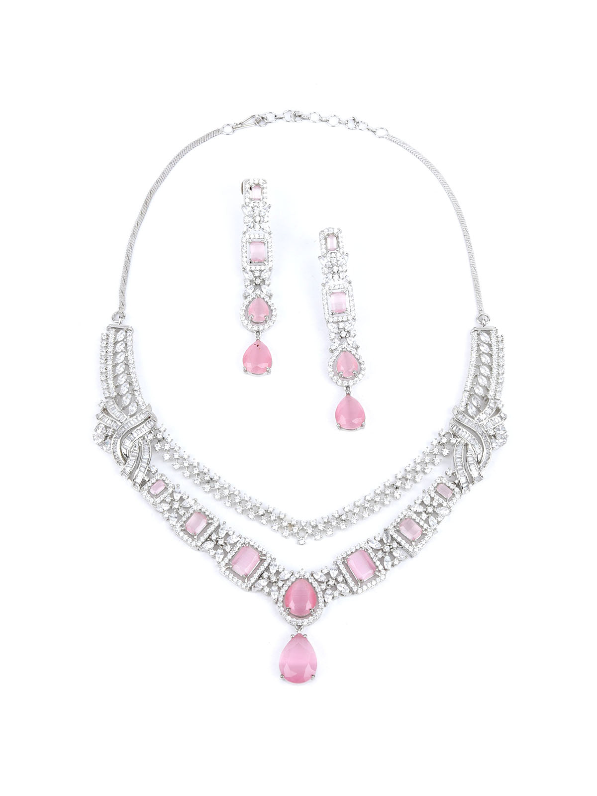 Odette Pink Alloy Embellished Jewellery Set For Women