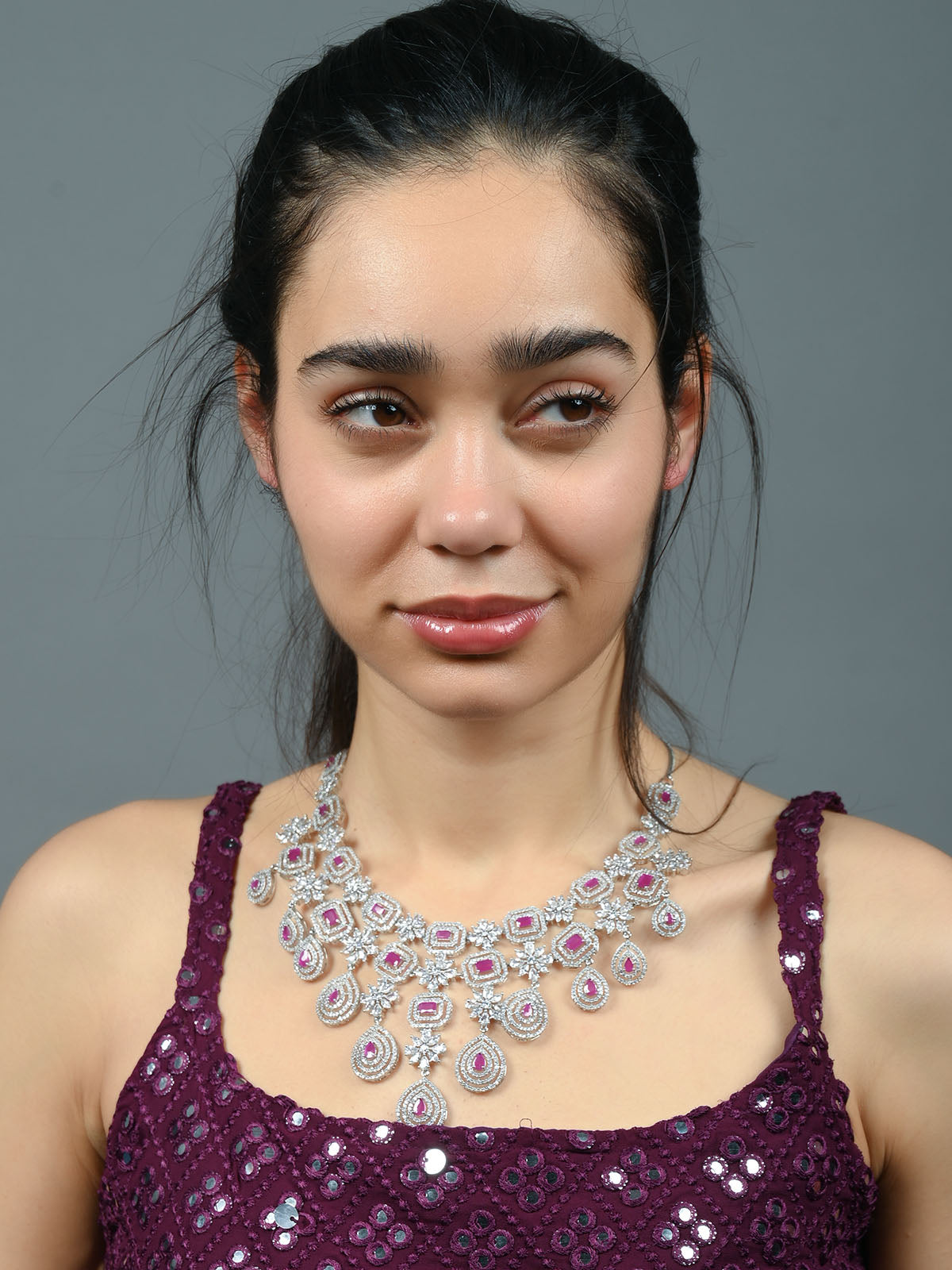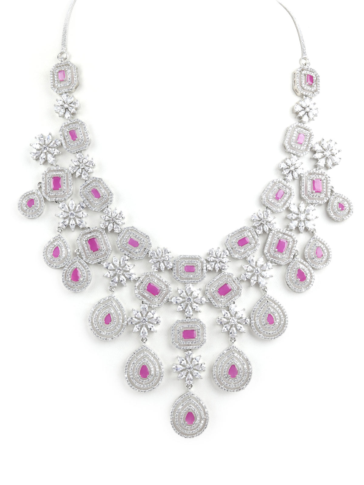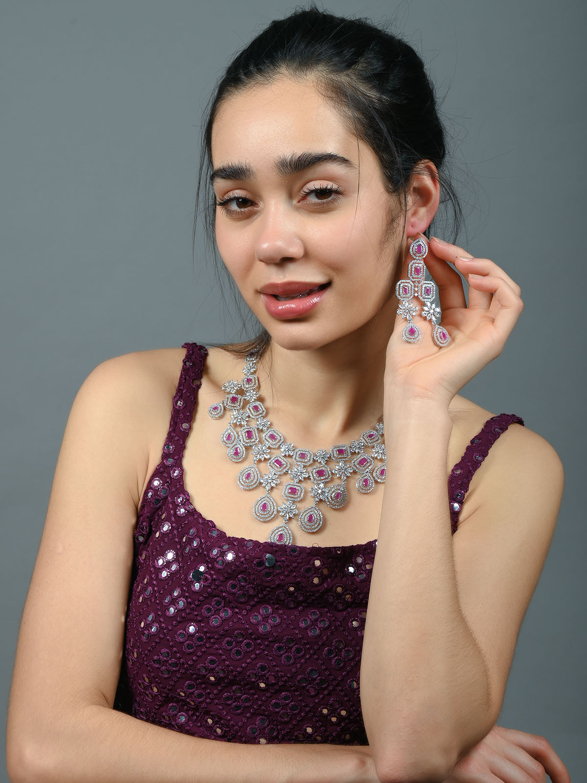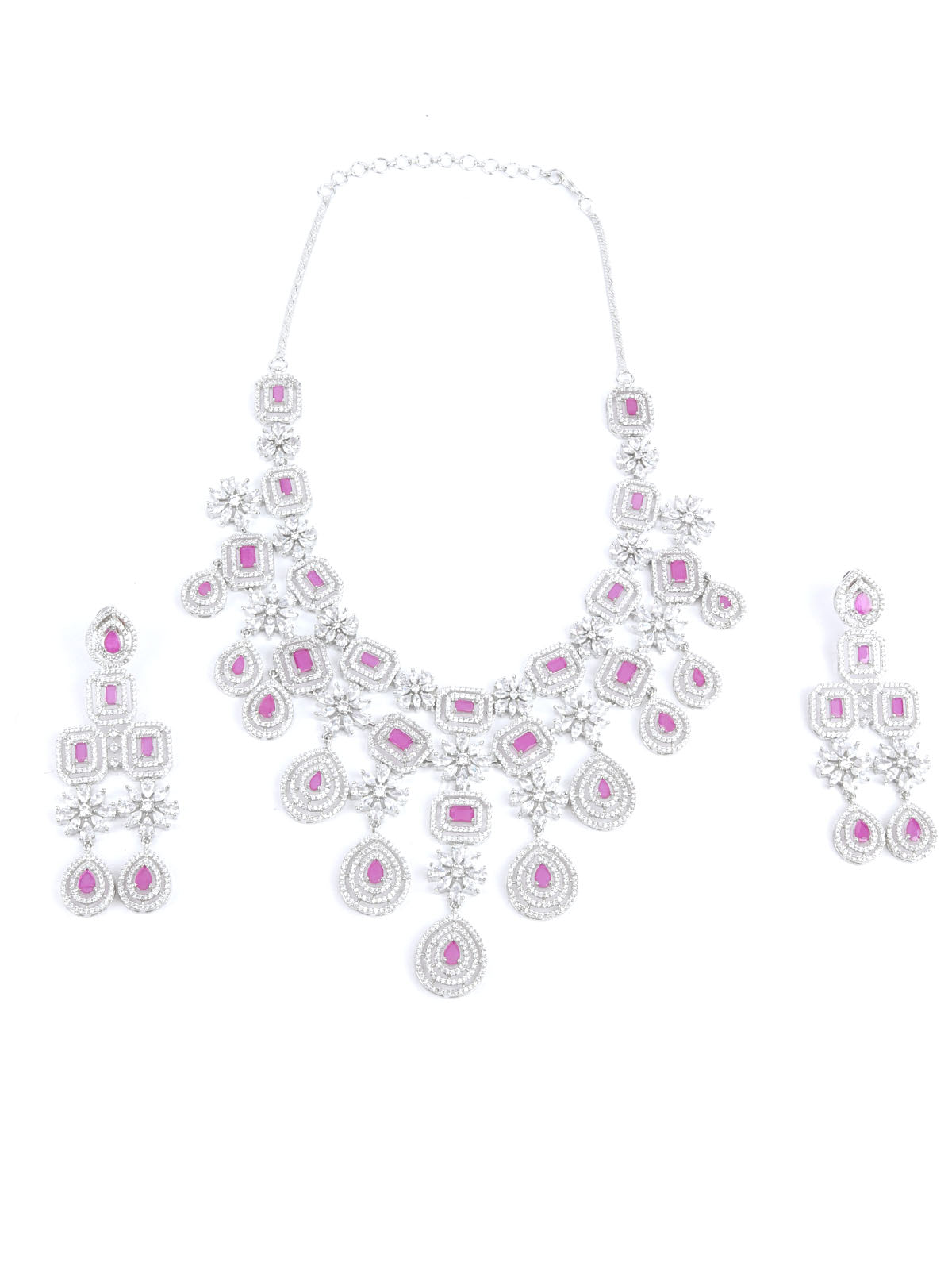 Odette Pink Alloy Embellished Jewellery Set For Women