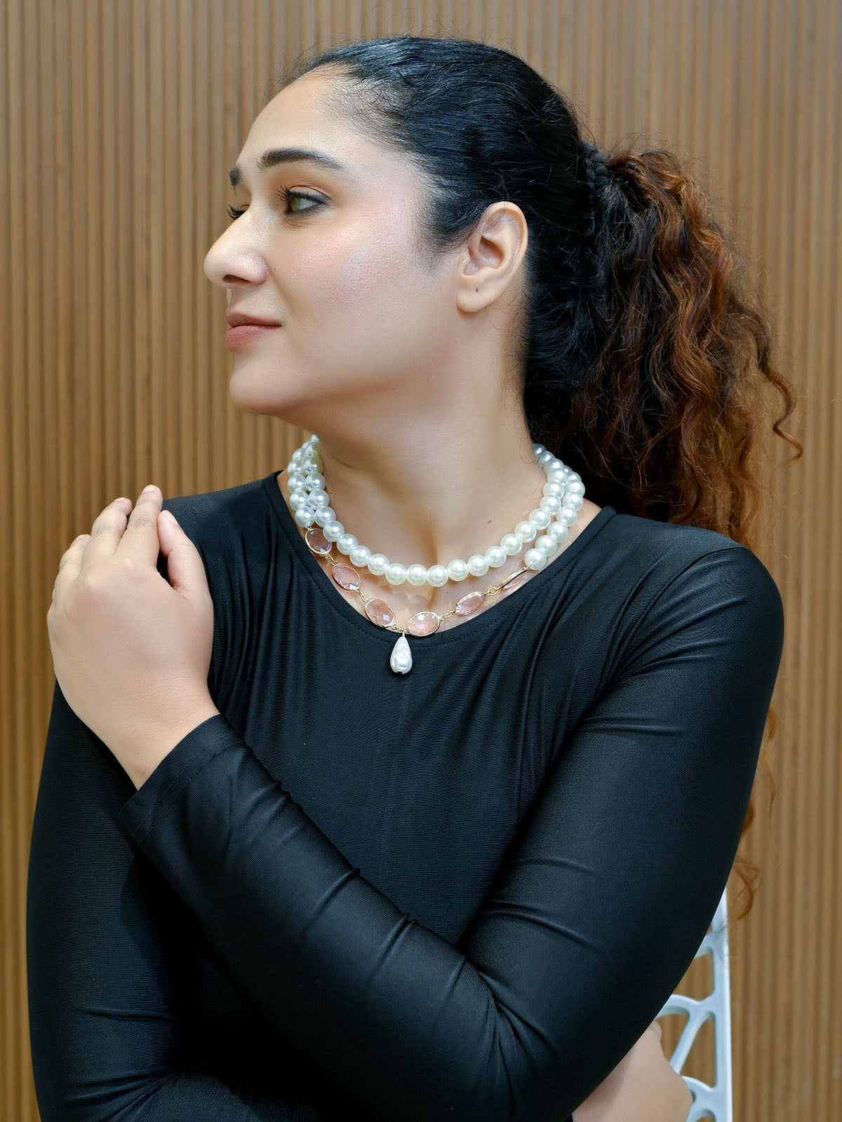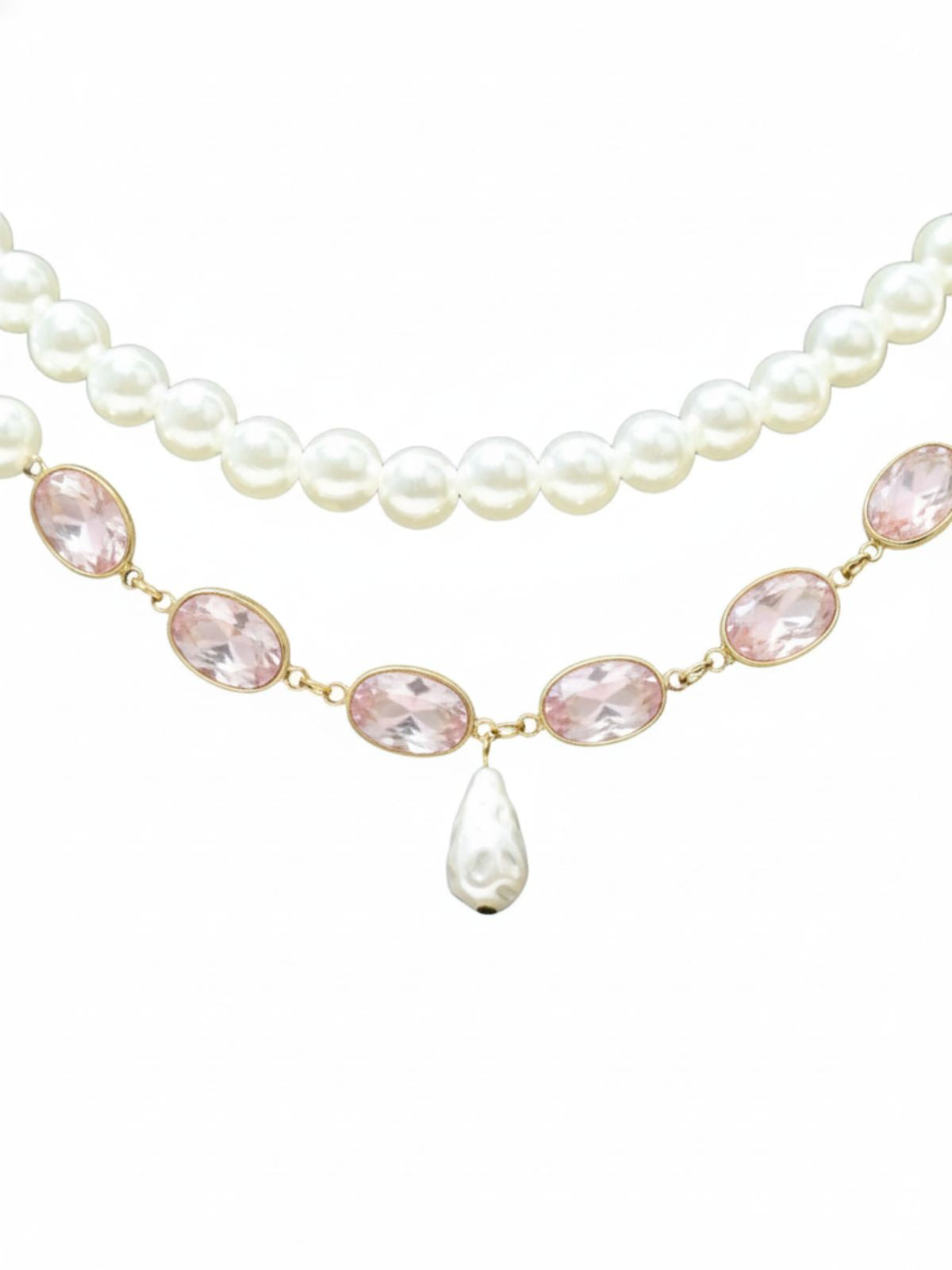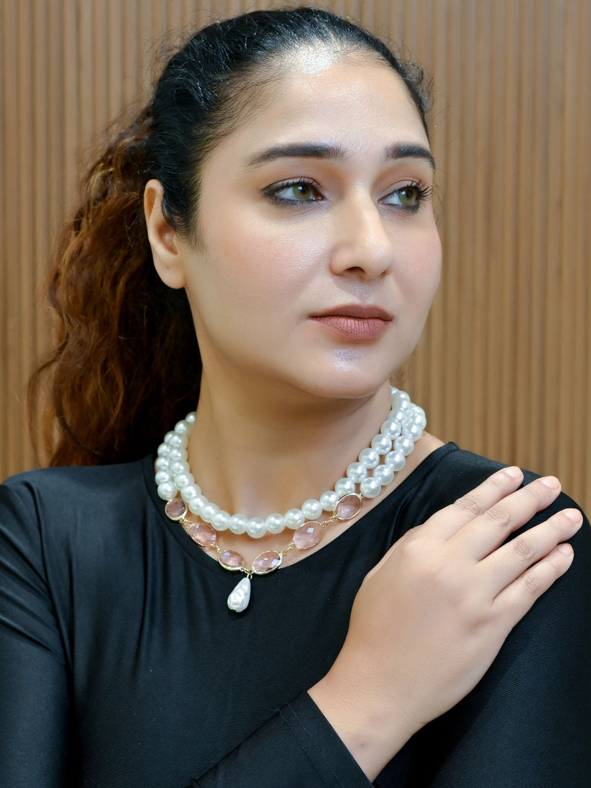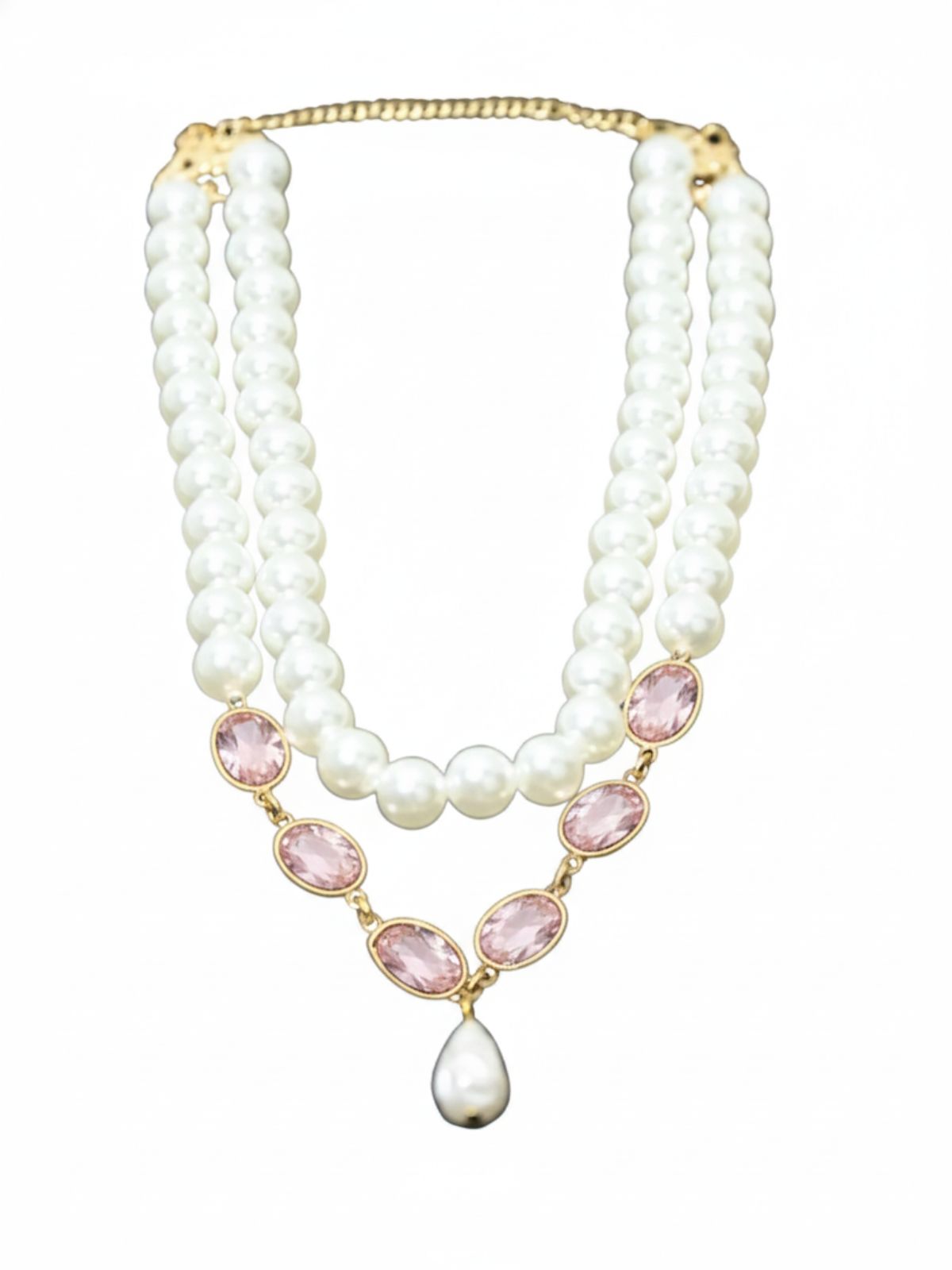 Odette White & Pink Alloy Embellished Neckpiece For Women