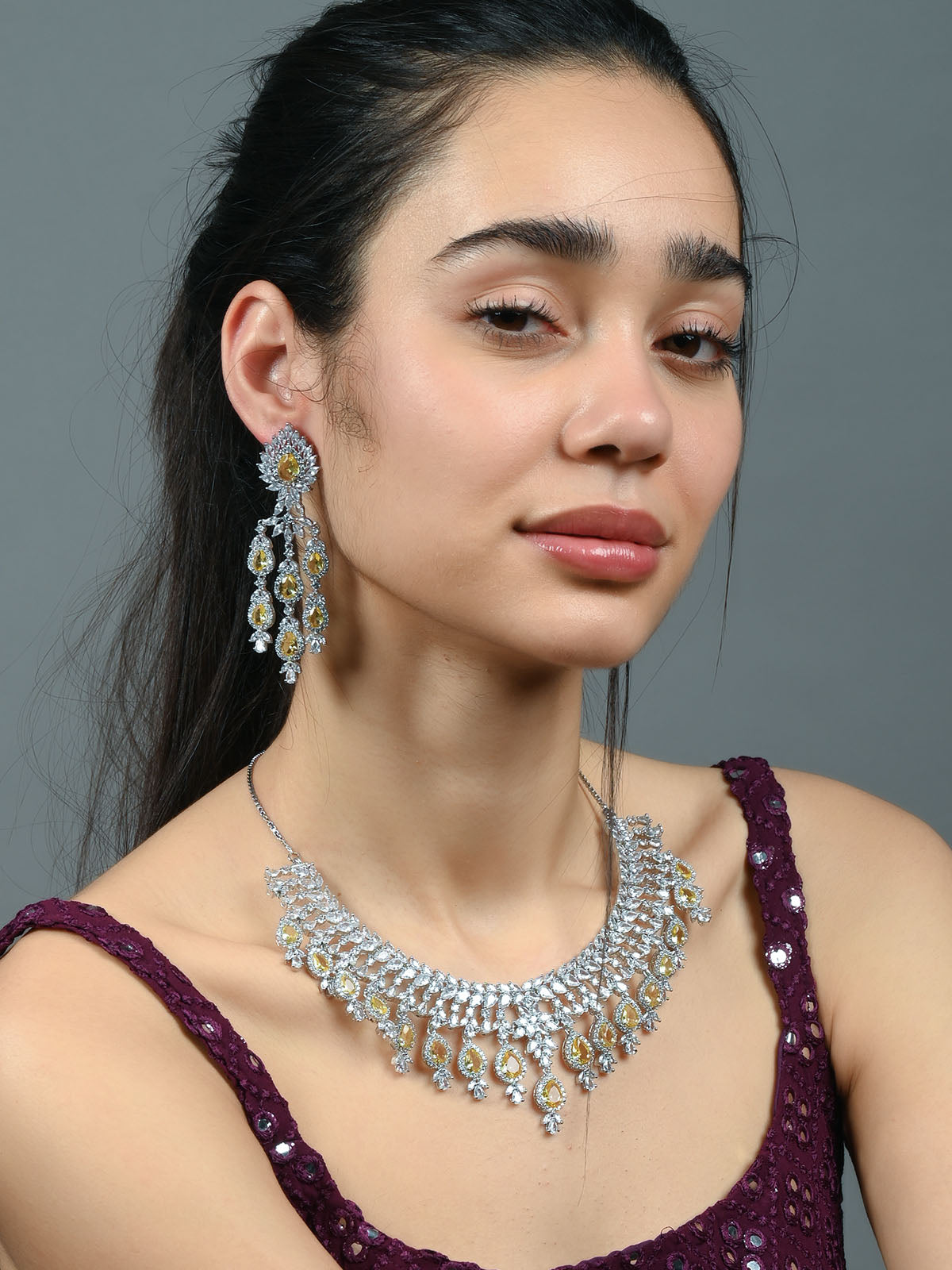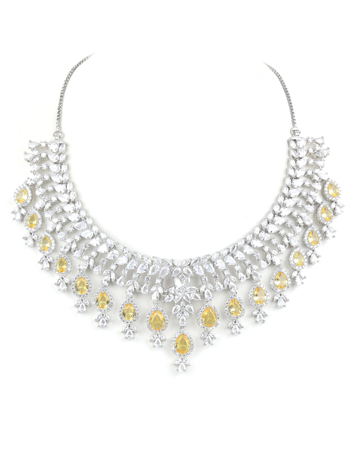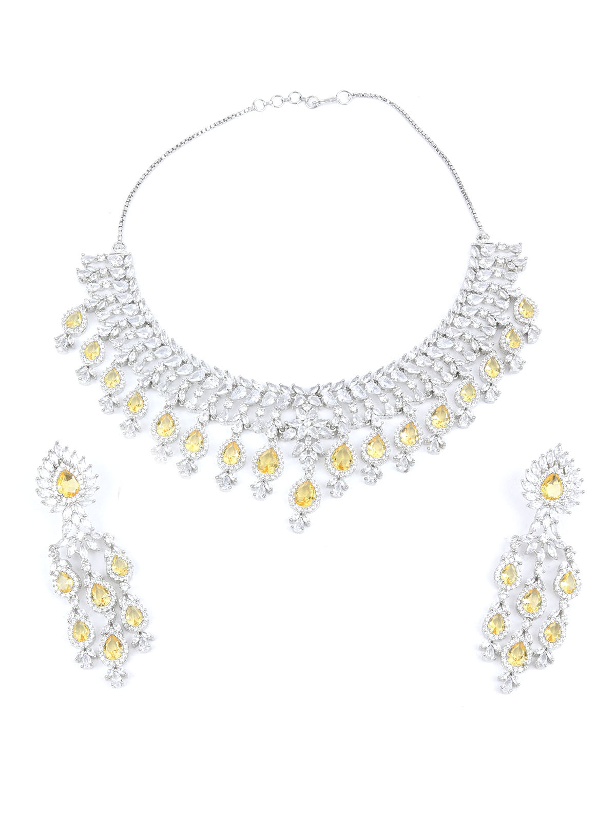 Odette Yellow & Silver Alloy Embellished Jewellery Set For Women