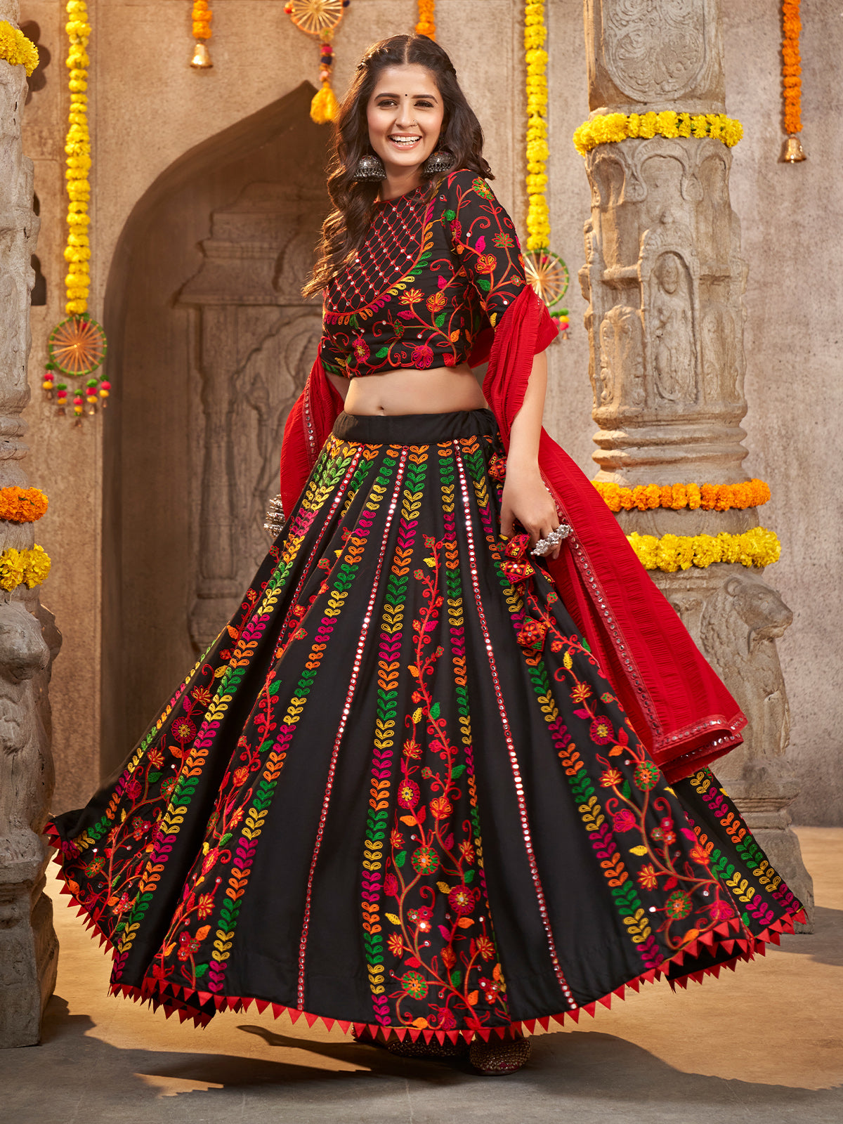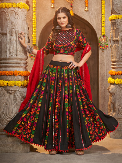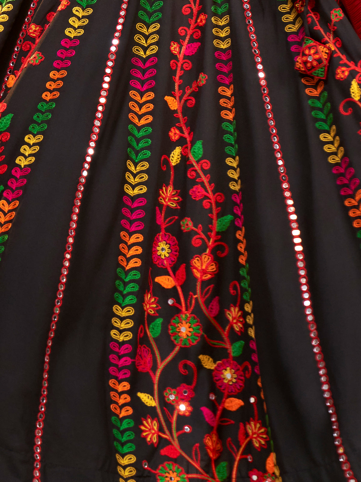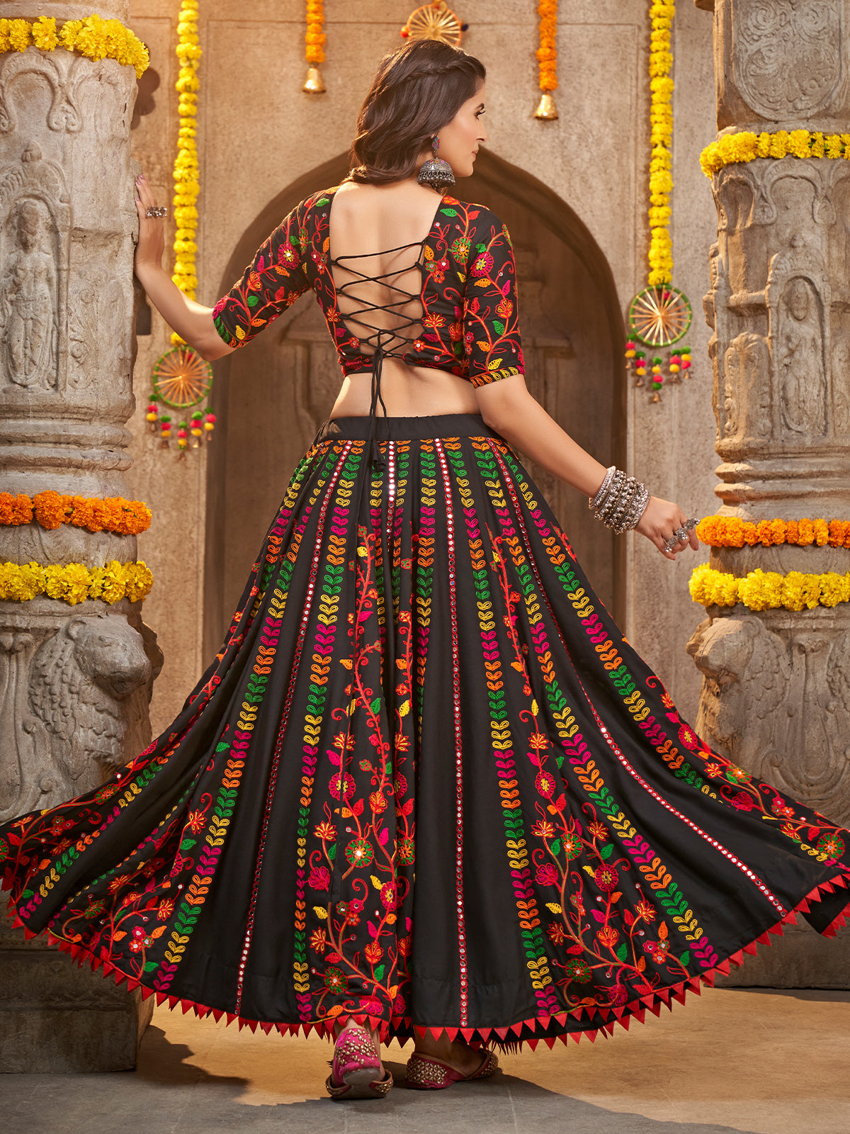 Black Viscose Rayon Embroidered Semi Stitched Lehenga Choli