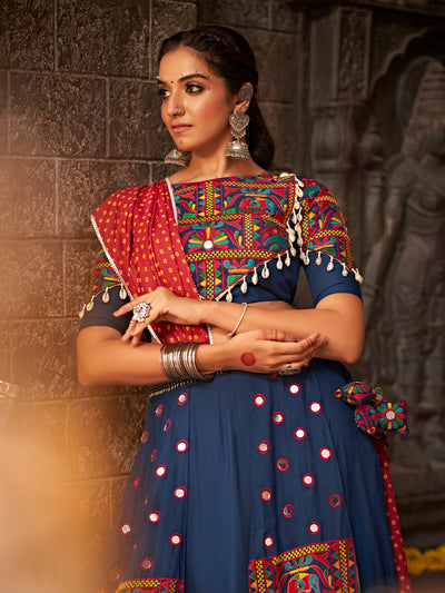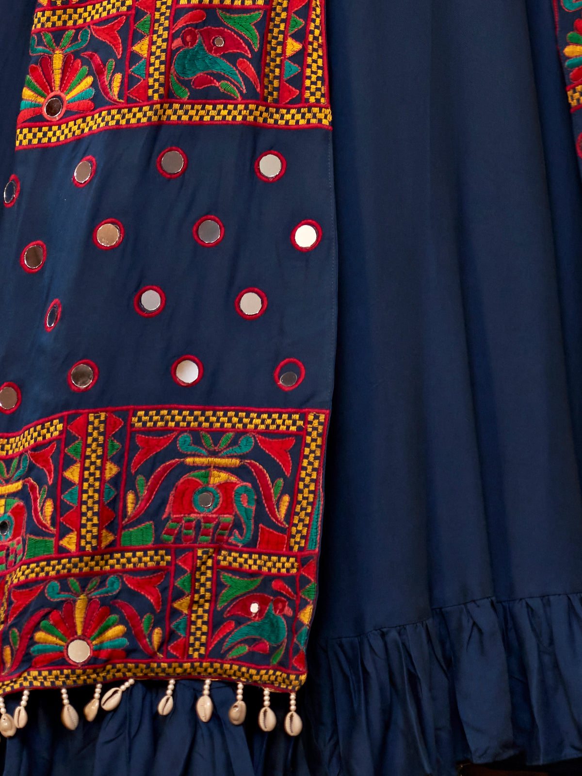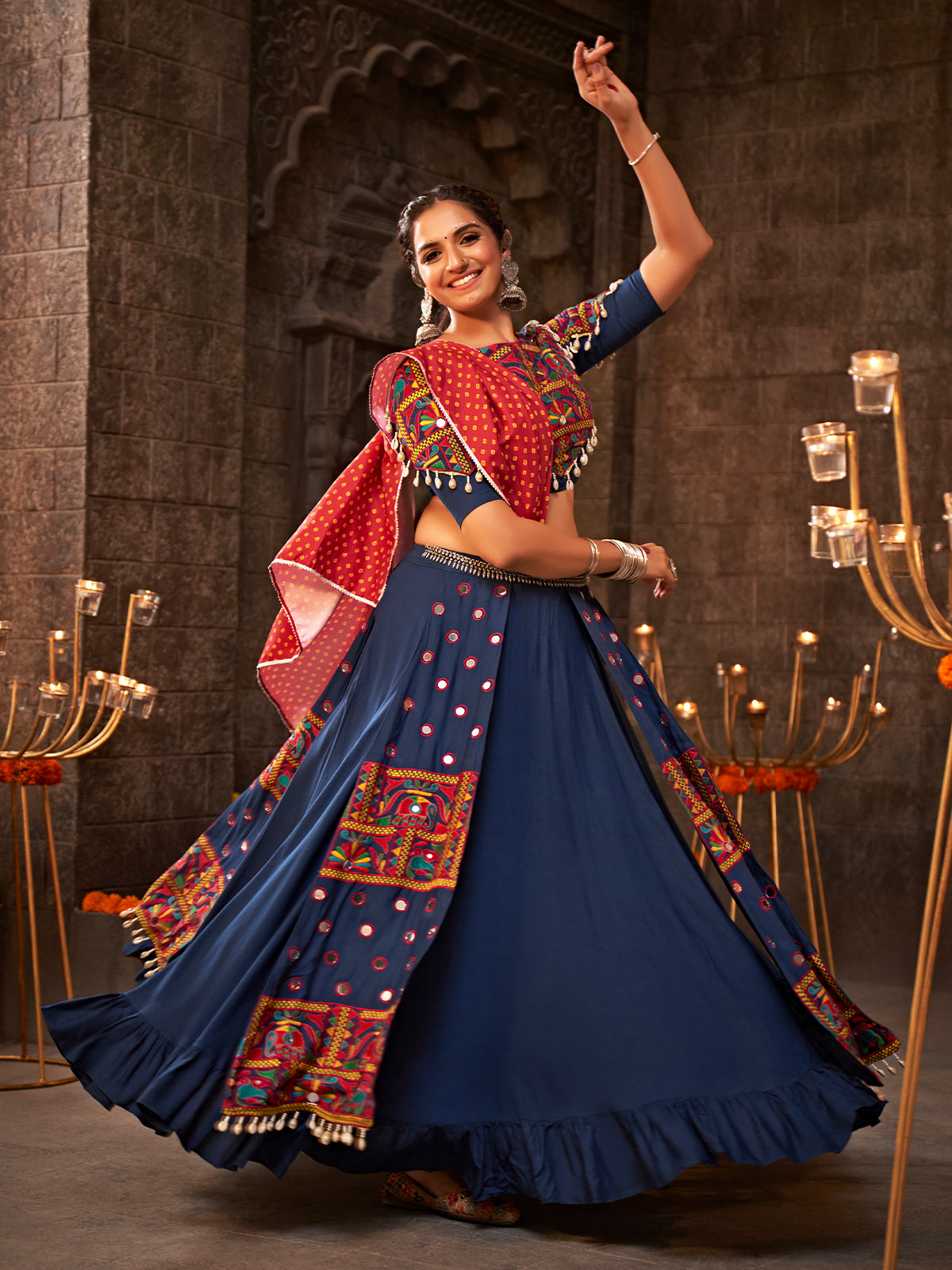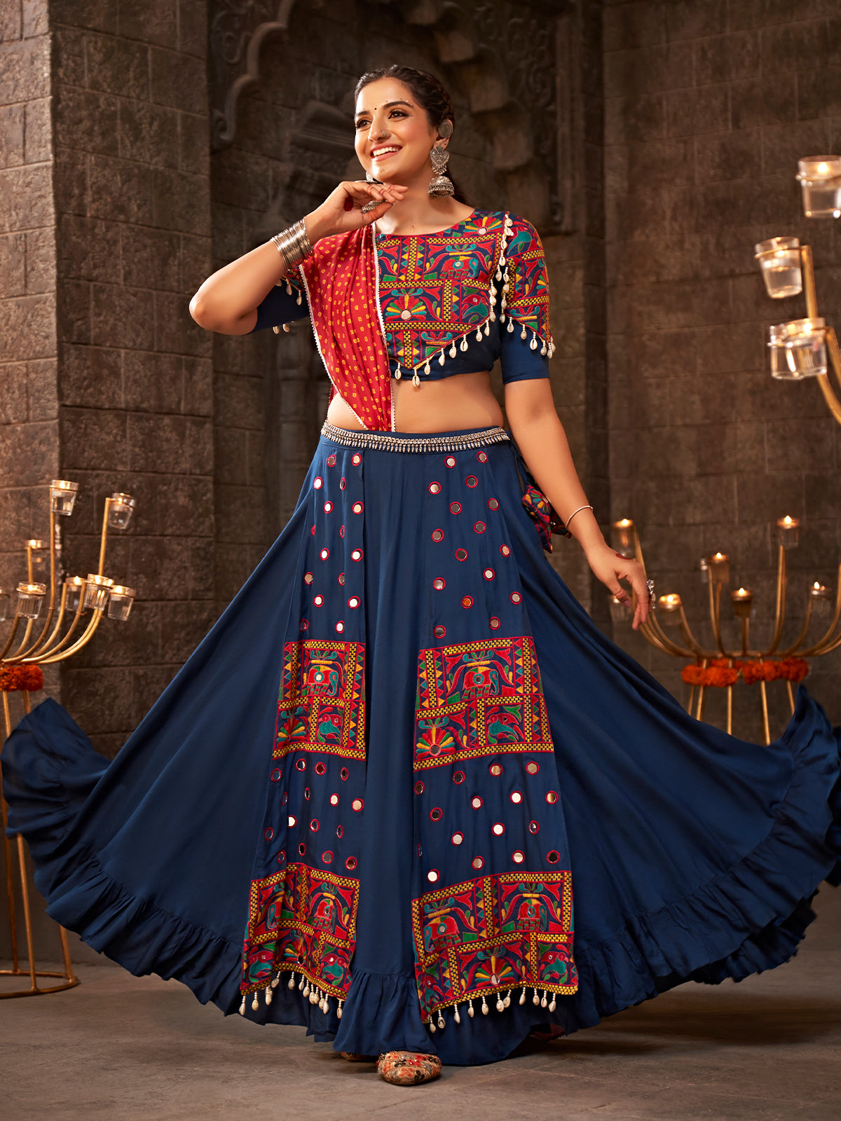Blue Viscose Rayon Embroidered Semi Stitched Lehenga Choli