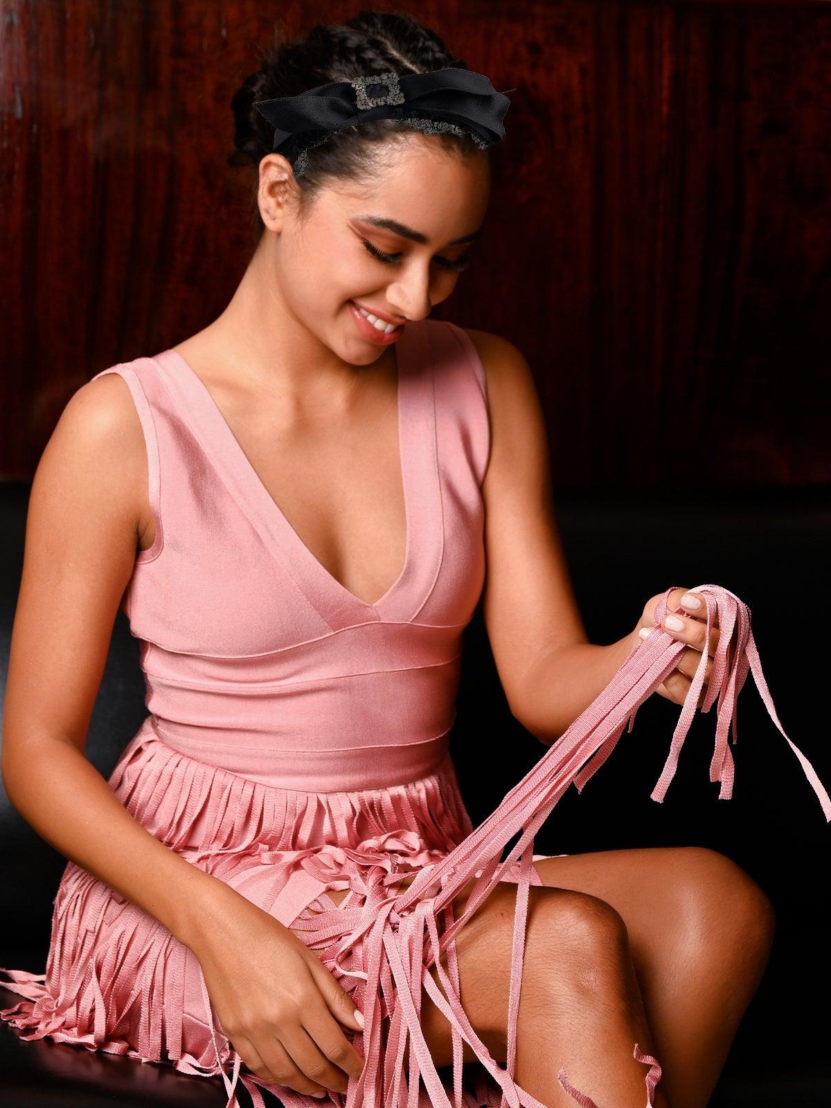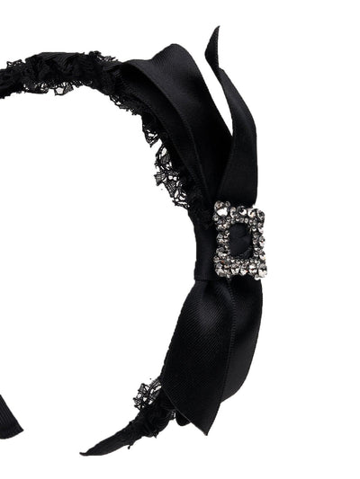 • Our advice; go with this black laced studded hairband that compliments a messy high-bun.