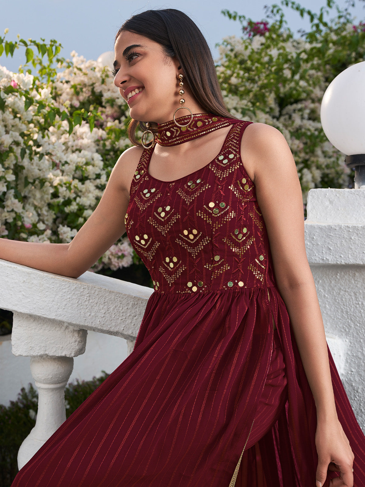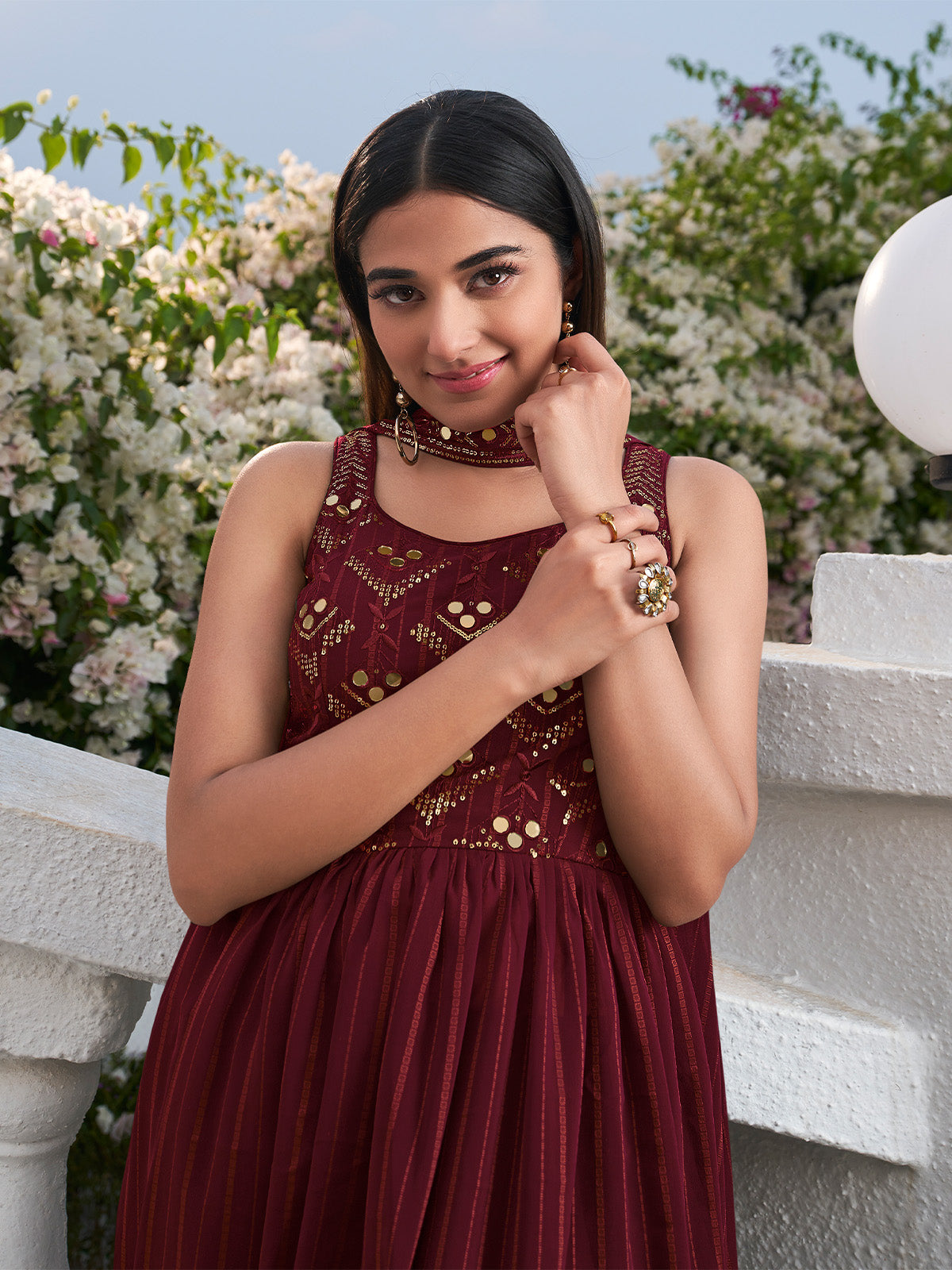 Celebrate This Festive Season With Beauty And Comfort With This Gown In Pretty Colored. This Gown Is Fabricated On Georgette Based With Thread and Sequinced Embroidered Work. It Will Definitely Earn You Lots Of Compliments From Onlookers