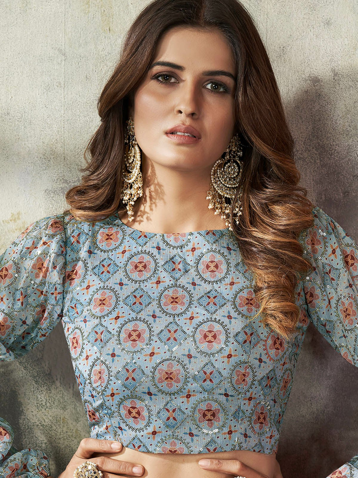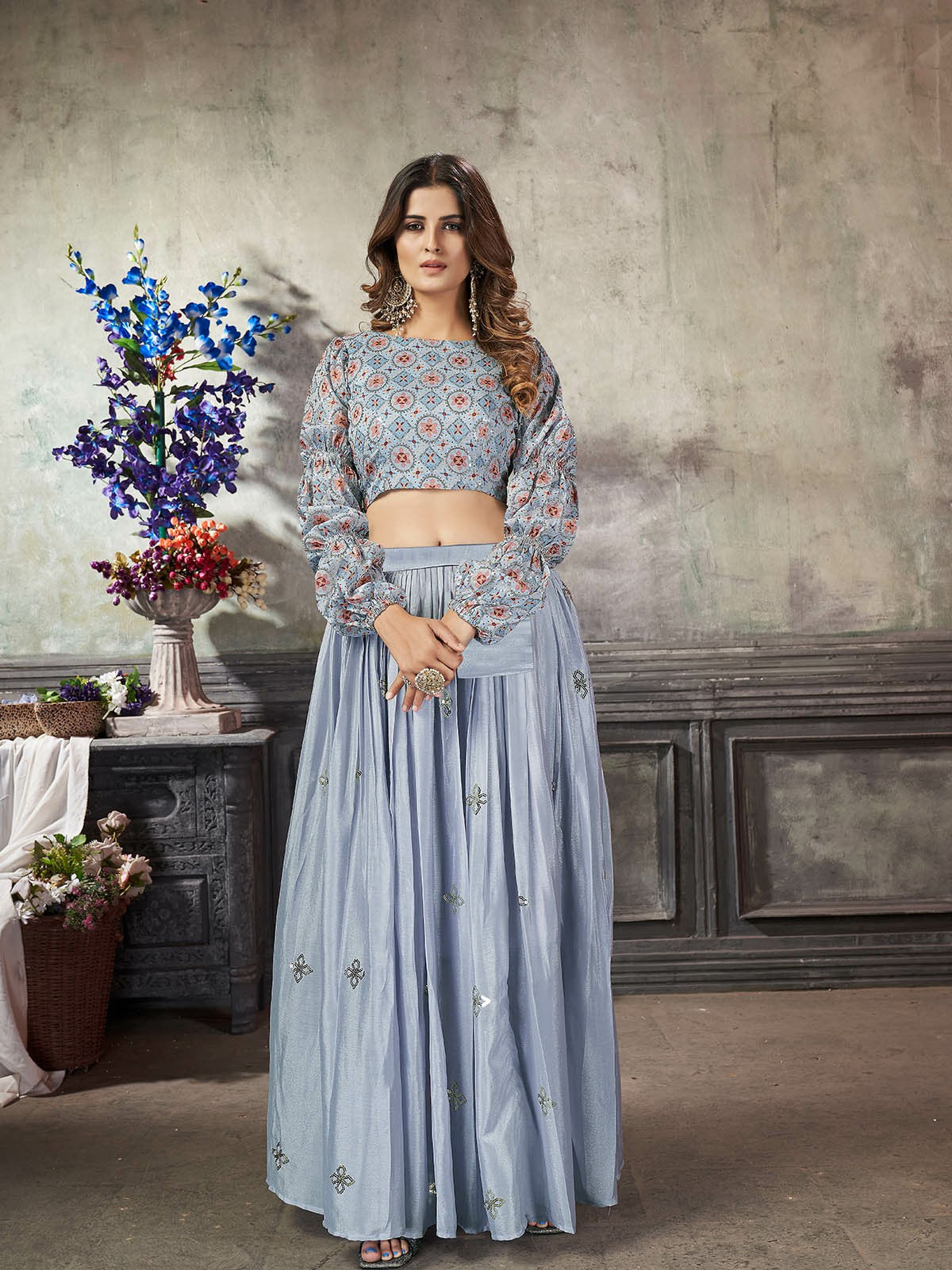 Add light to the celebration called life beaming in this lehenga, choli. Crafted on art silk, the set is beautified embroidered work.