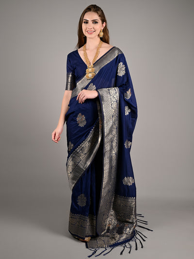Dark Blue Nylon Woven Saree With Unstitched Blouse