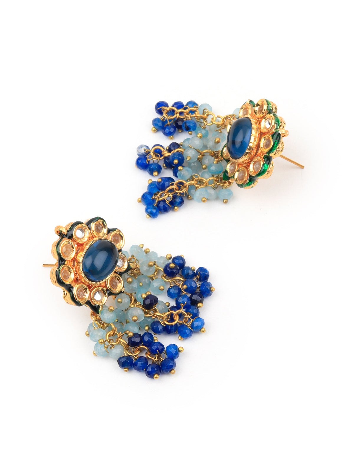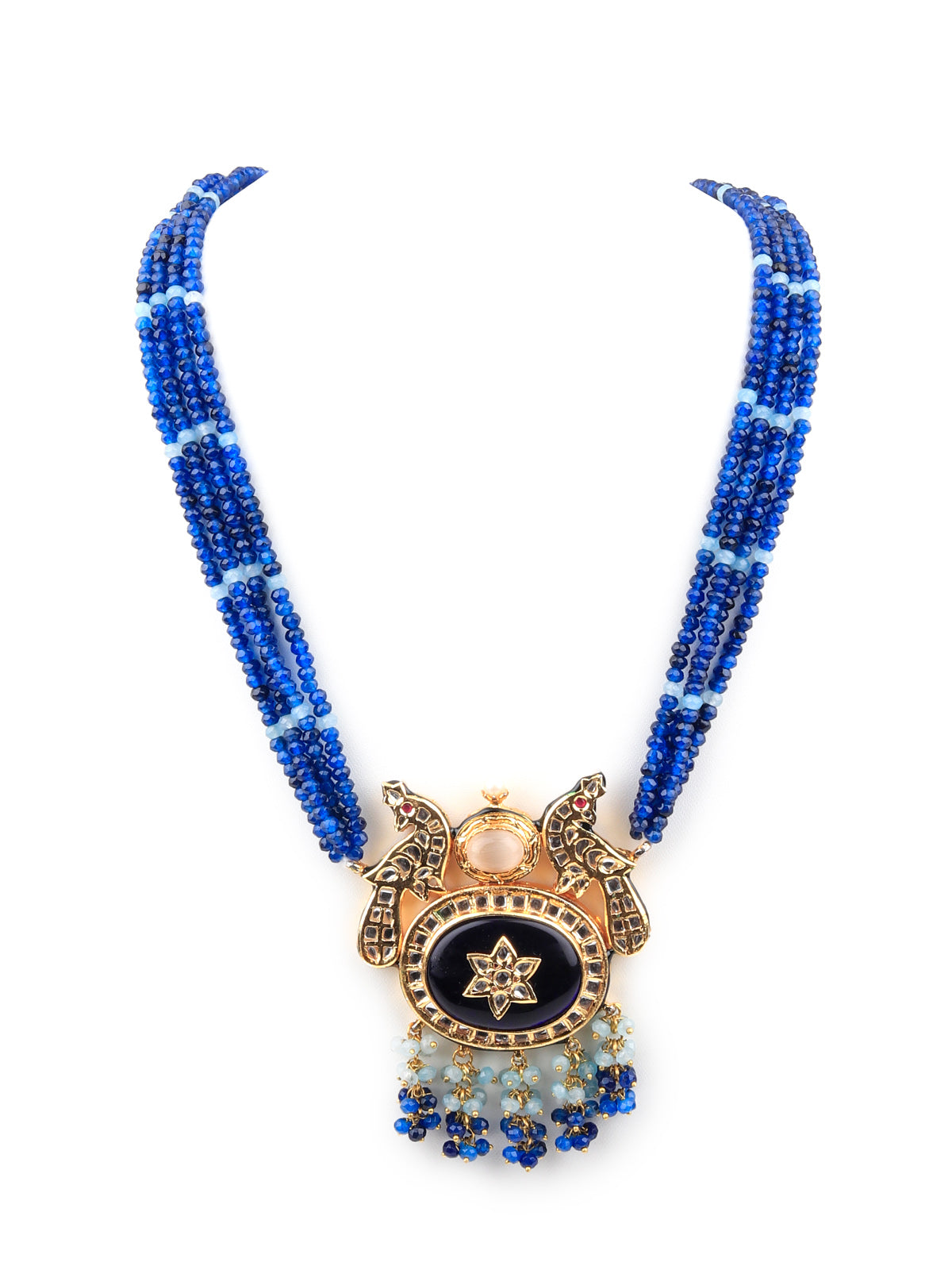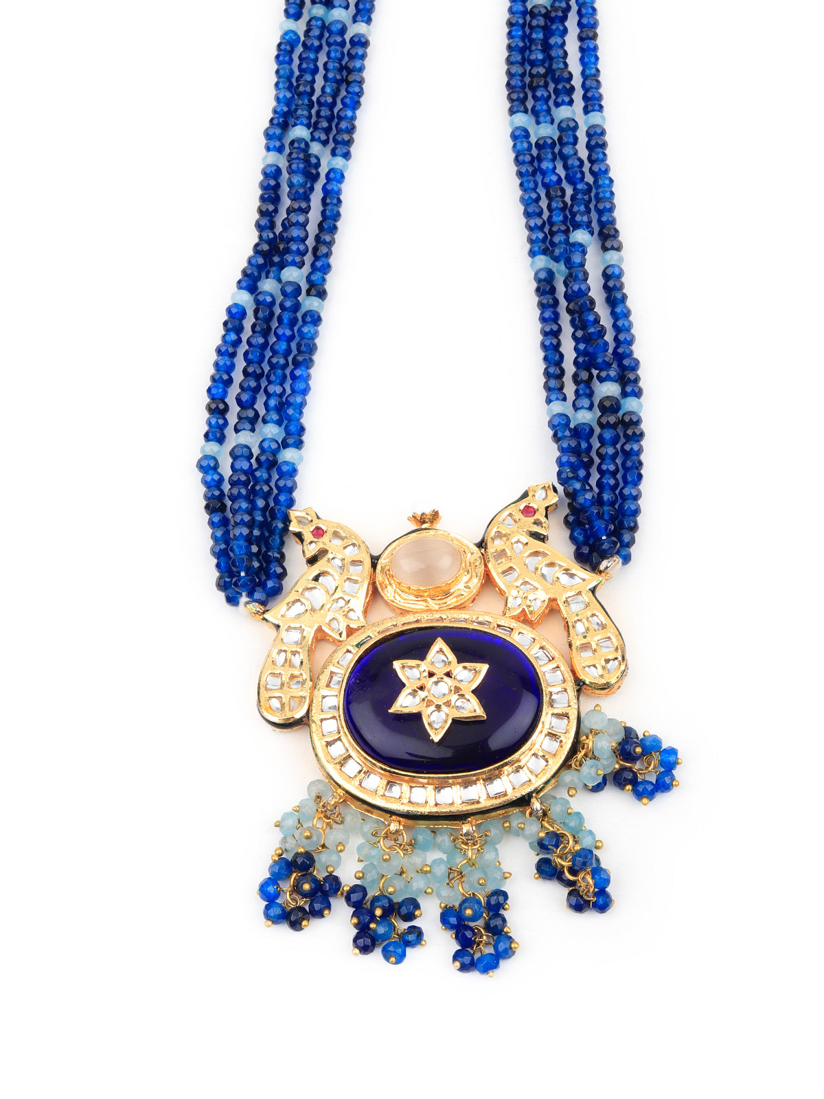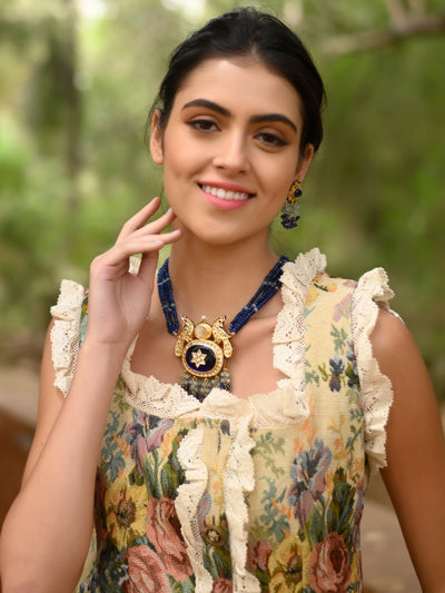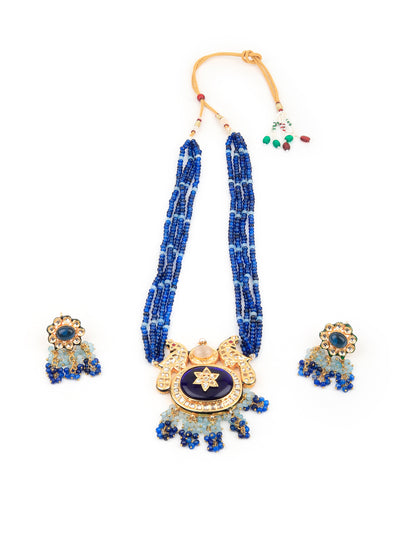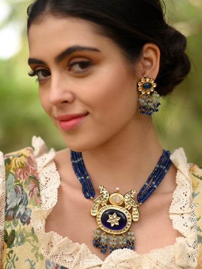 This gorgeous set of neck piece with dangling earrings is a great accompaniment to your wedding or party outfit. The necklace has Kundan and beads on it. The collection and setting of faux stones lend Victorian grandeur to this piece. This is must have in your collection.