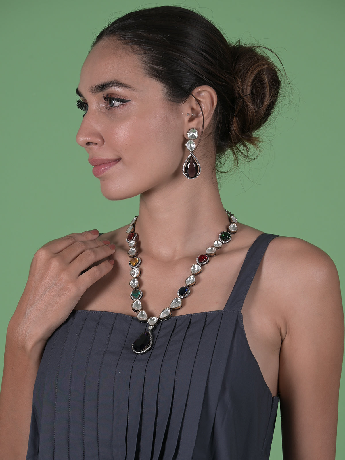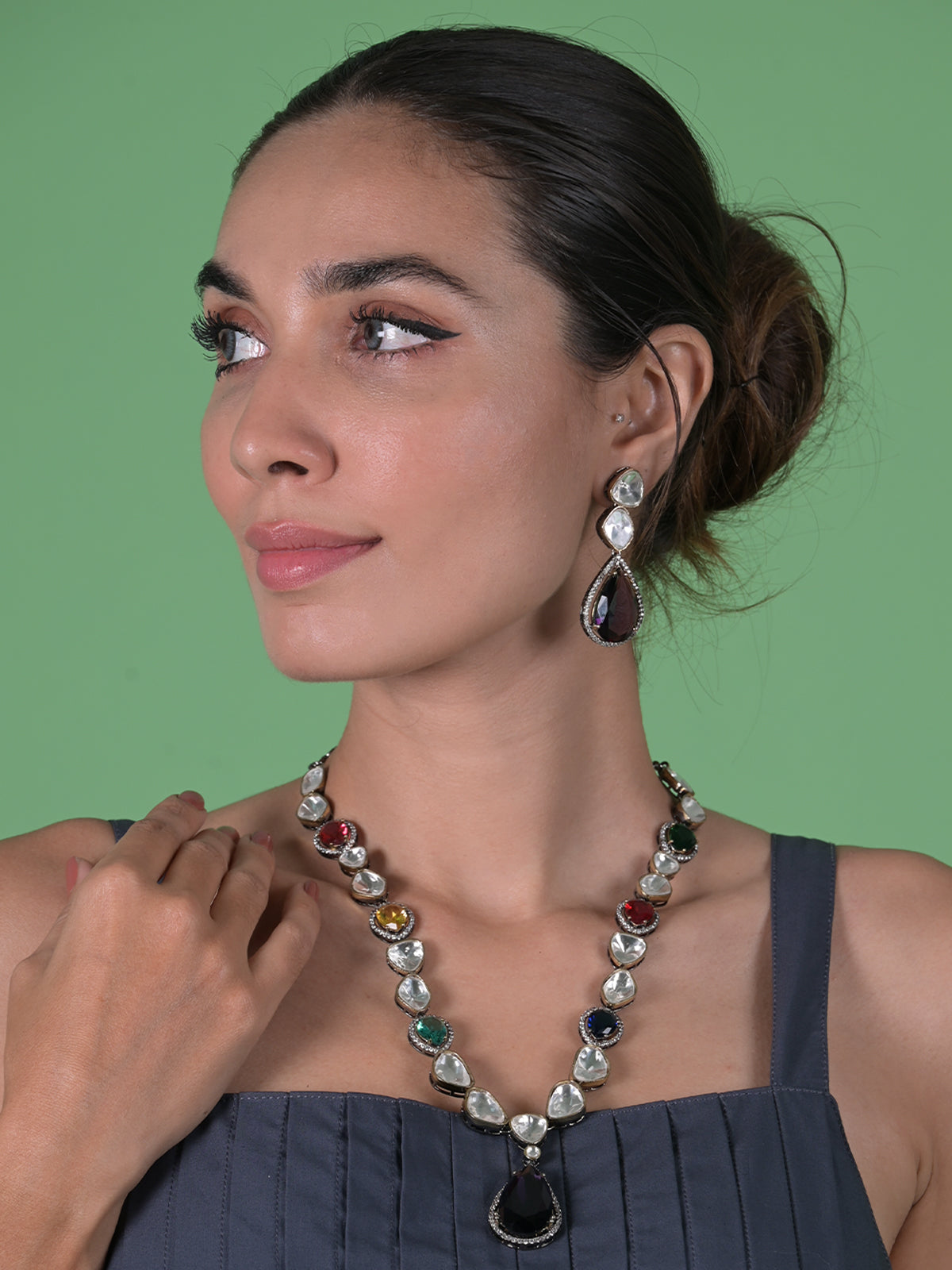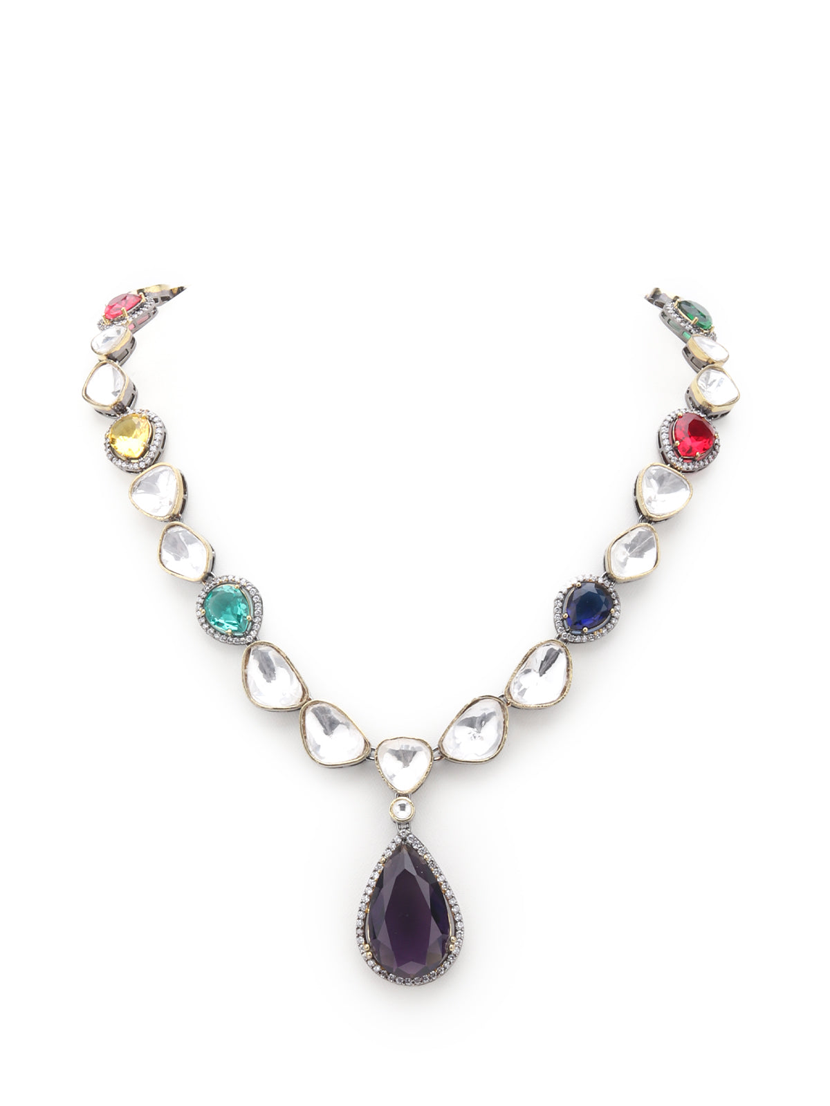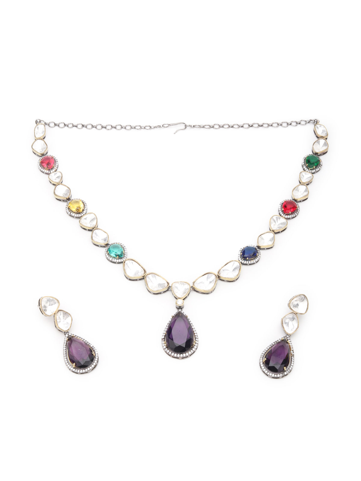 Dazzling Multicolored Stones Studded Choker Jewelry set