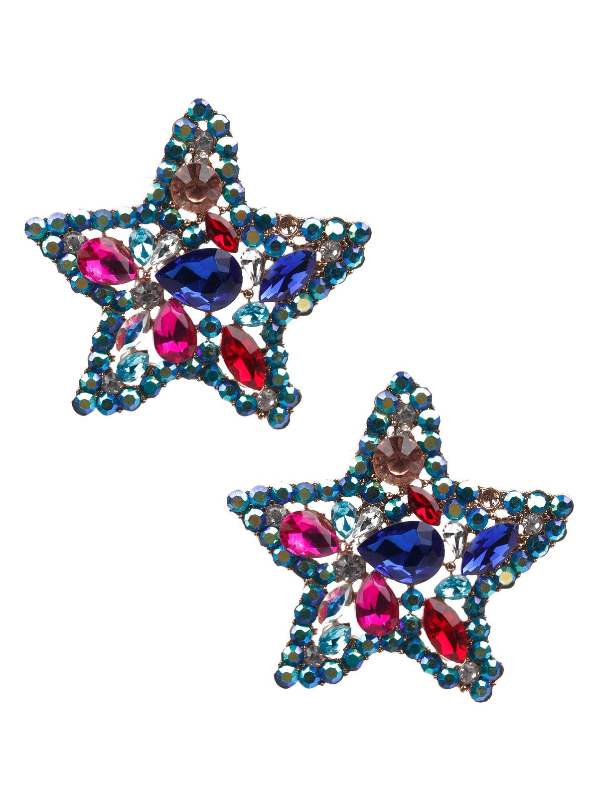 This stylish pair of multicolored stone studded gold, dangle earrings is a perfect accompaniment to festive outfits or for evening outings and go well with Indian and Indo-western dressing.