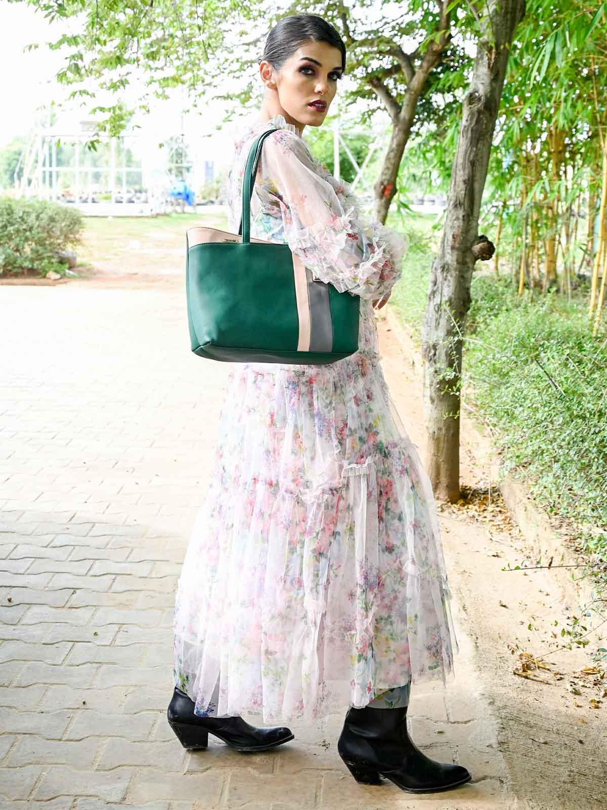 This impressively spacious hand bag is a piece of art. Take it just anywhere, it is a great accompaniment to the Work or Office dressing or even evening wear. The Handbag is spacious and is lined with a good quality lining.
