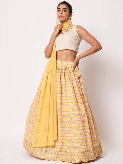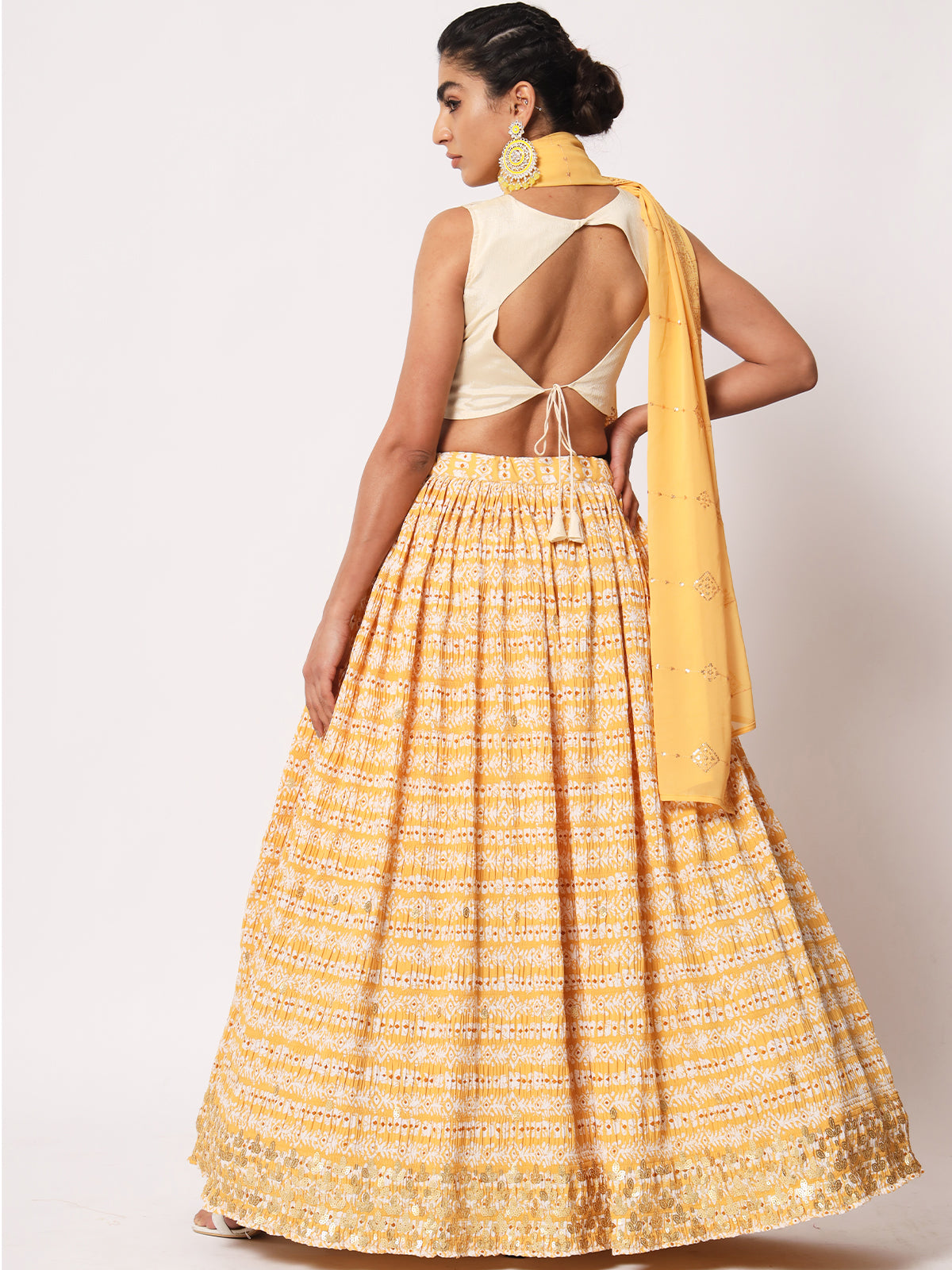 Add light to the celebration called life beaming in this lehenga, choli and dupatta set. Crafted on art silk, the set is beautified with Thread with Sequince Embroidered Work. Pair up with matching jewelry, bag and heels to be the Insta Queen.