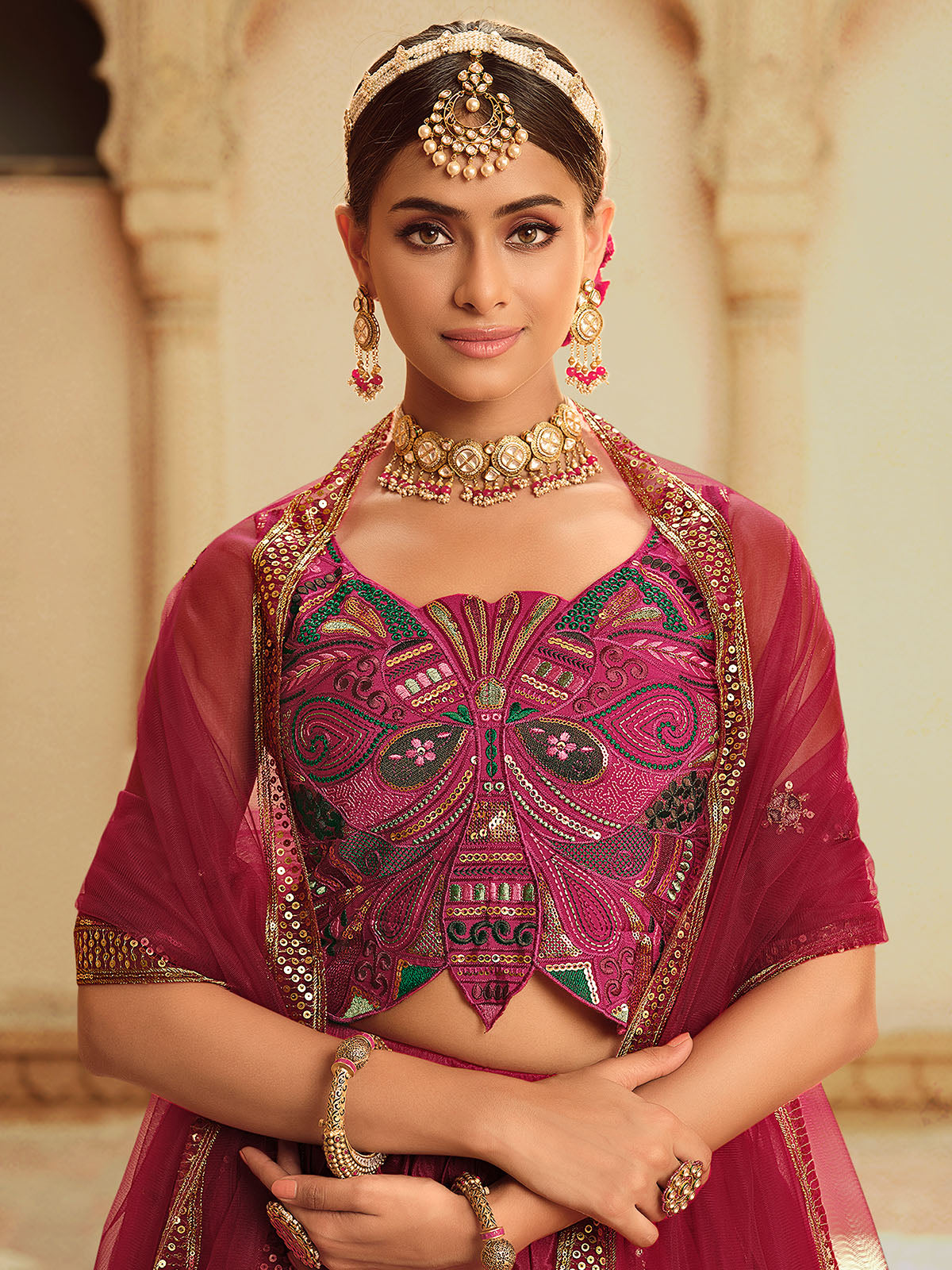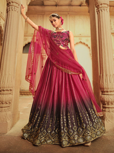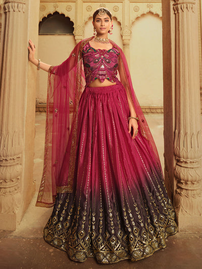 Odette Women Magenta Semi Stitched Lehenga With Unstitched Blouse