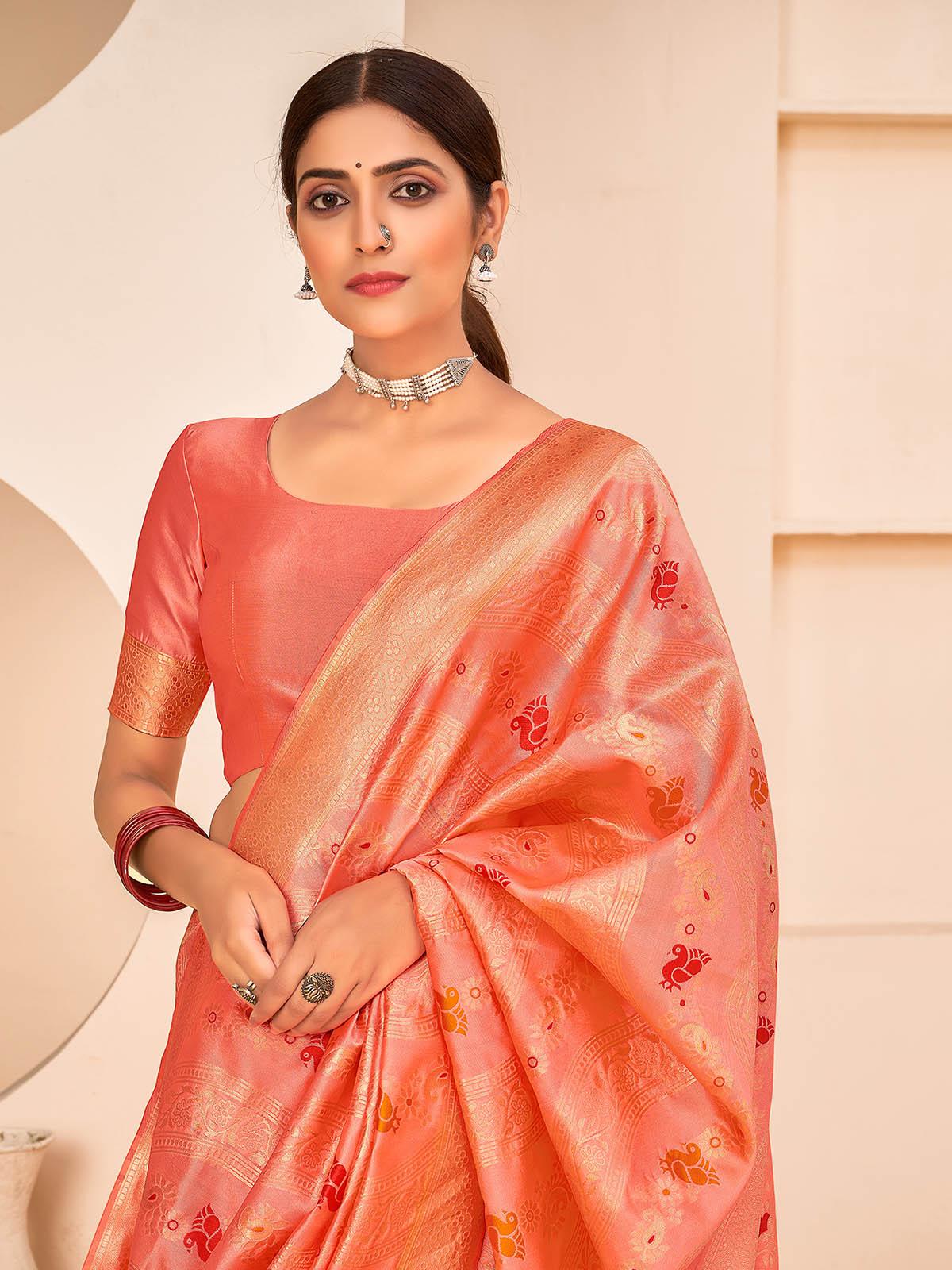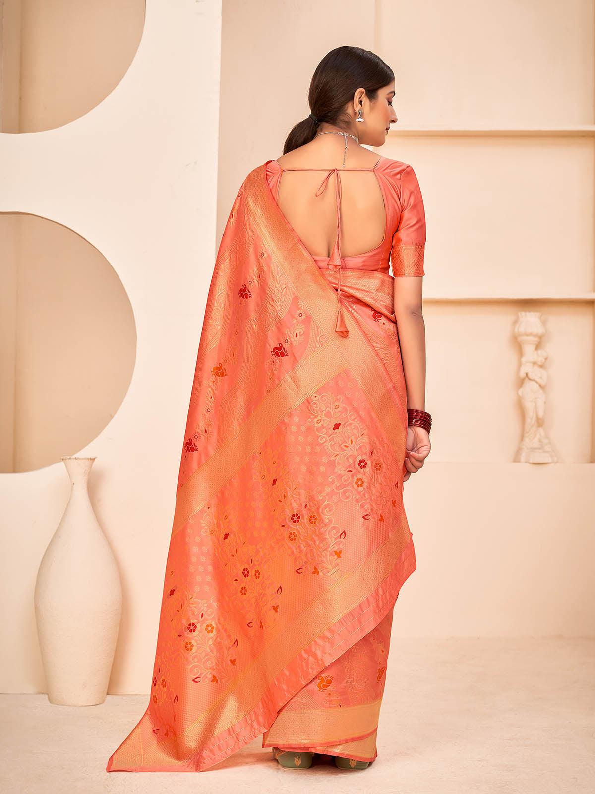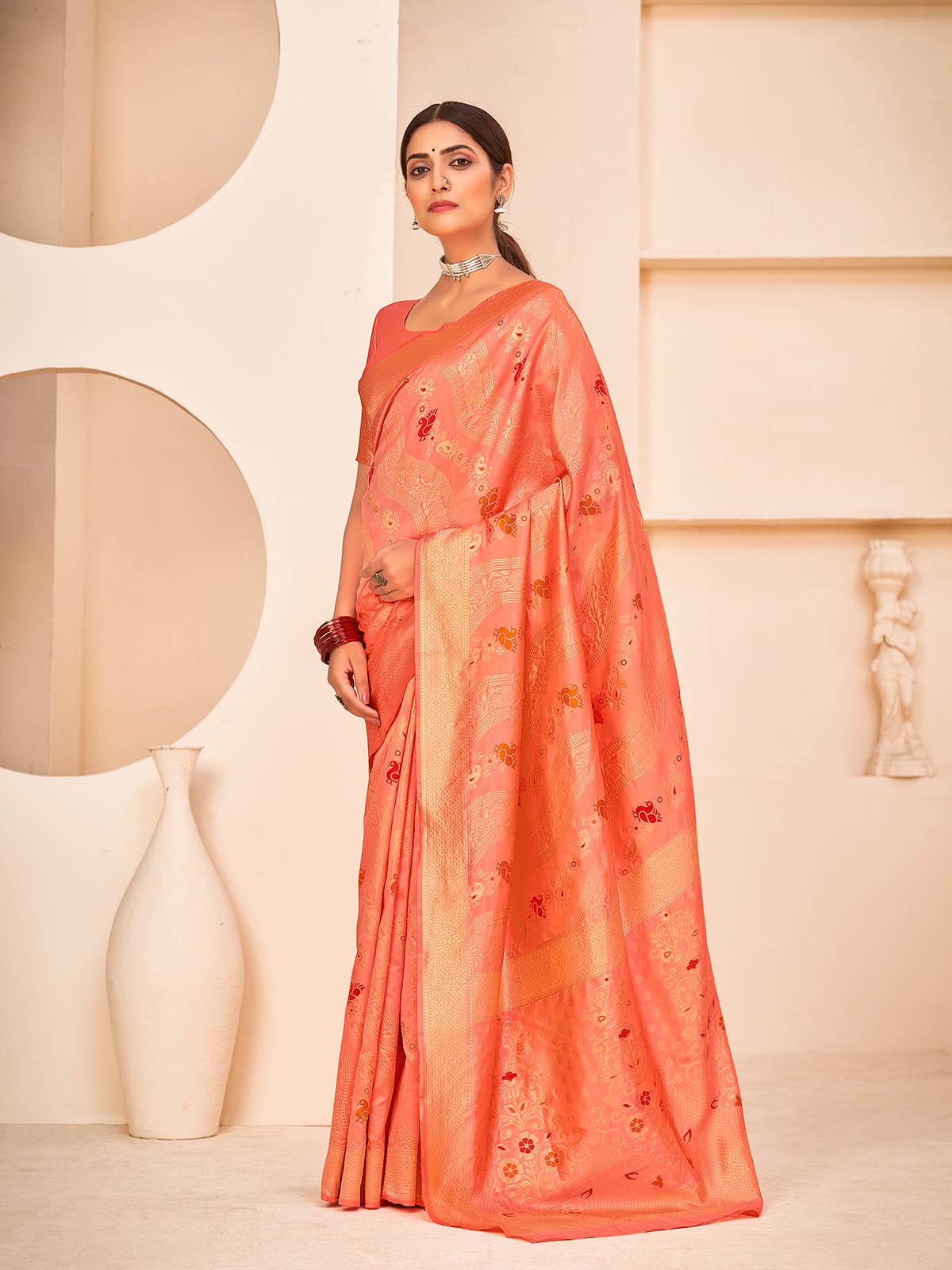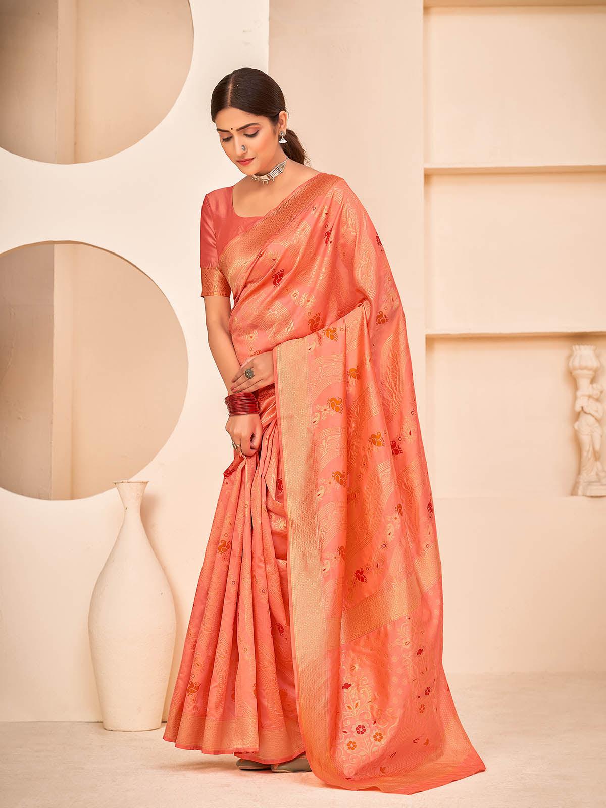Gorgeous Woven Peach Banarasi Silk Saree
