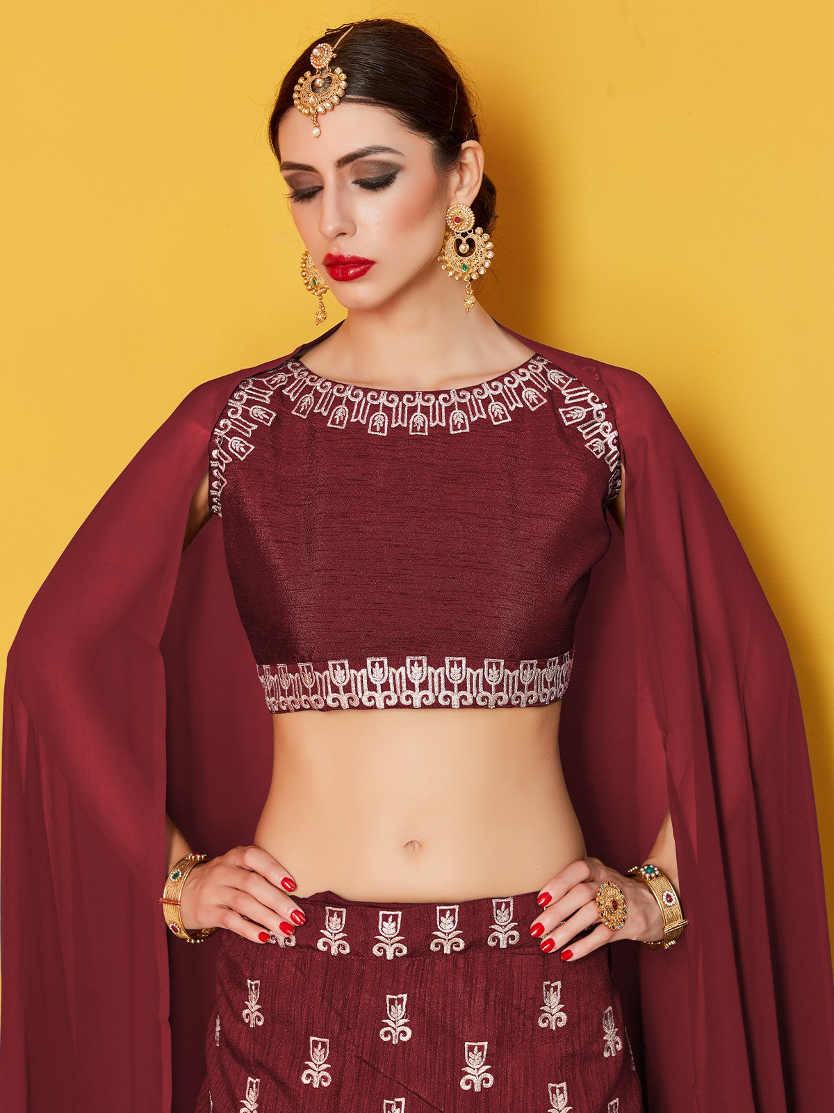 Add light to the celebration called life beaming in this lehenga, choli and dupatta set. Crafted on Artsilk, the set is beautified with embroidery work.