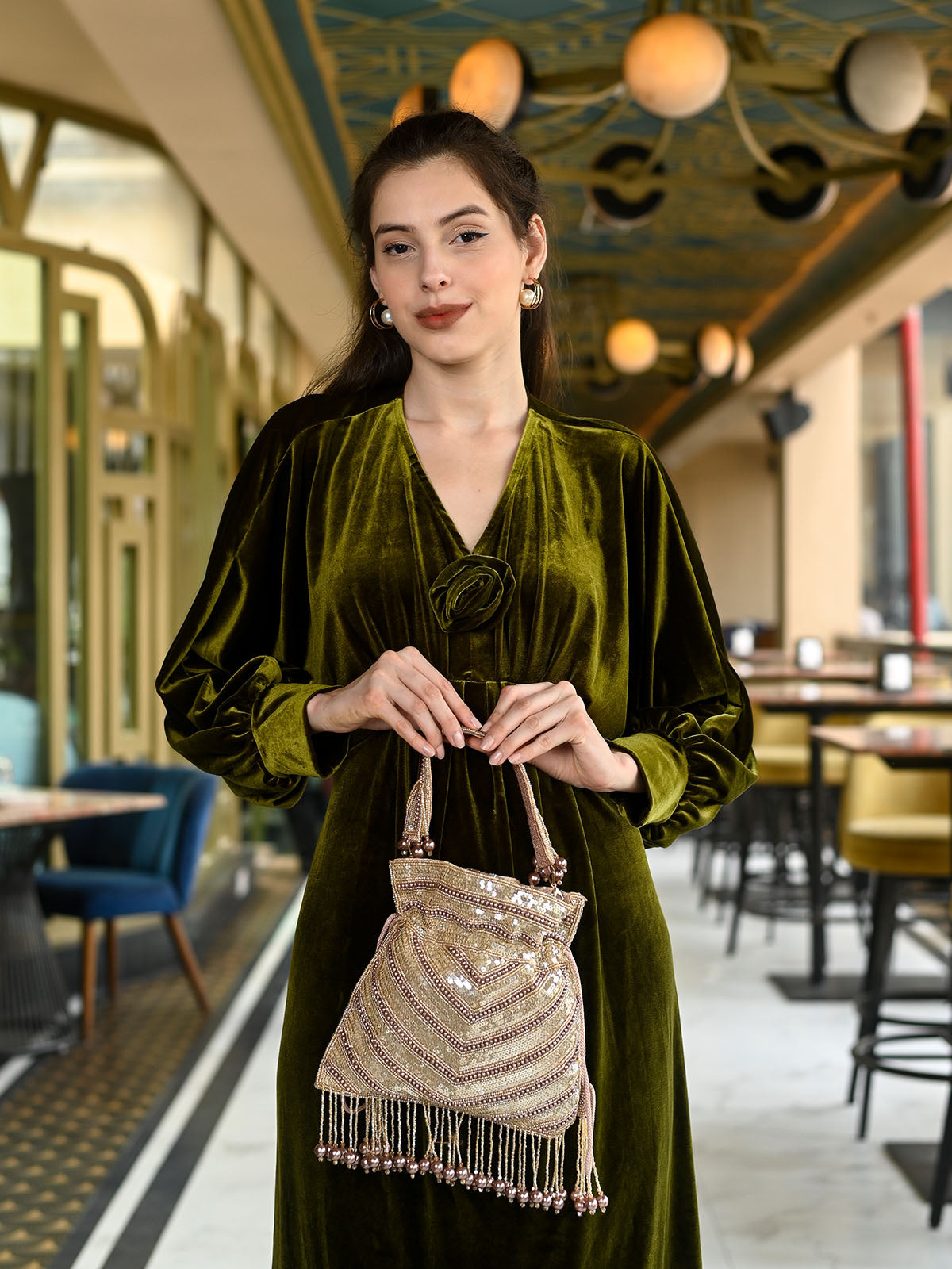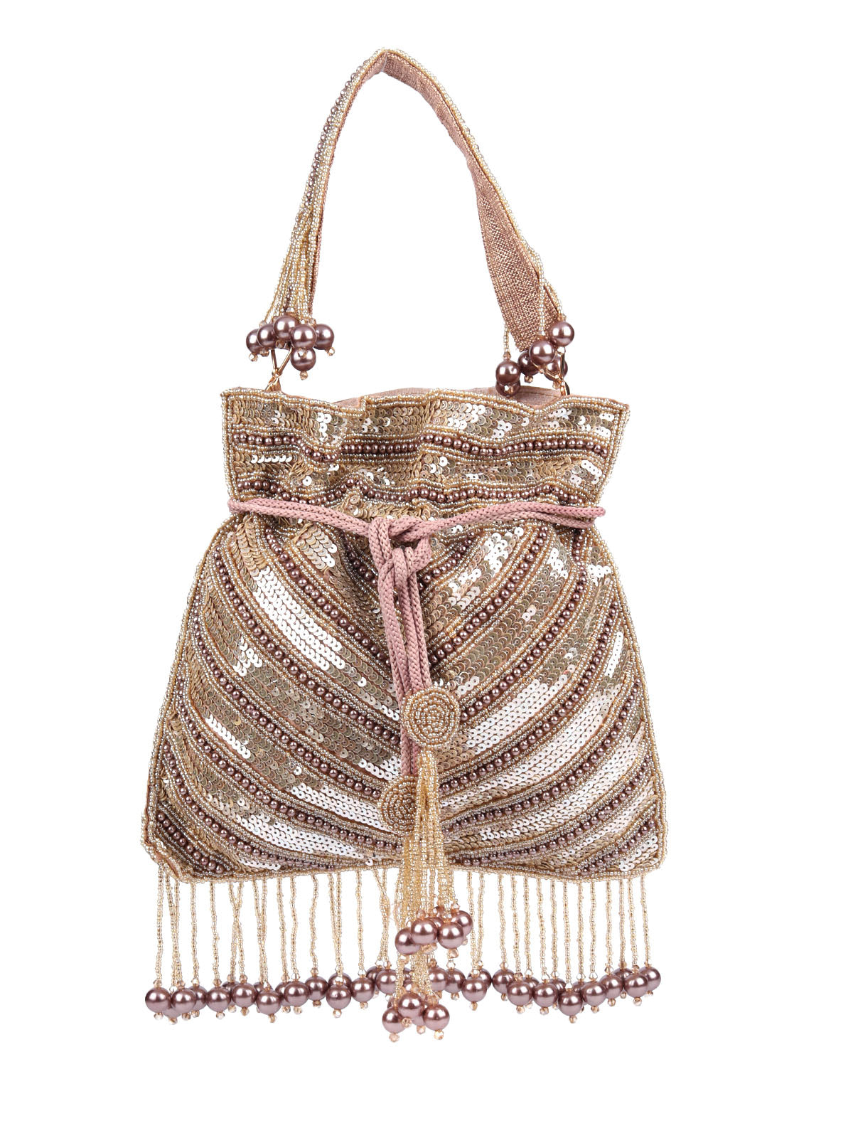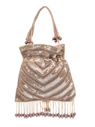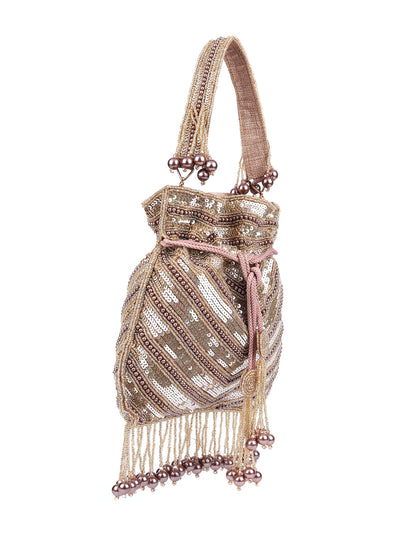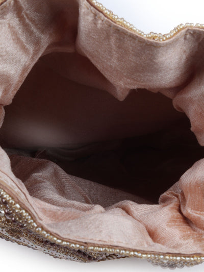 Odette Beige Suede Embellished Potli For Women