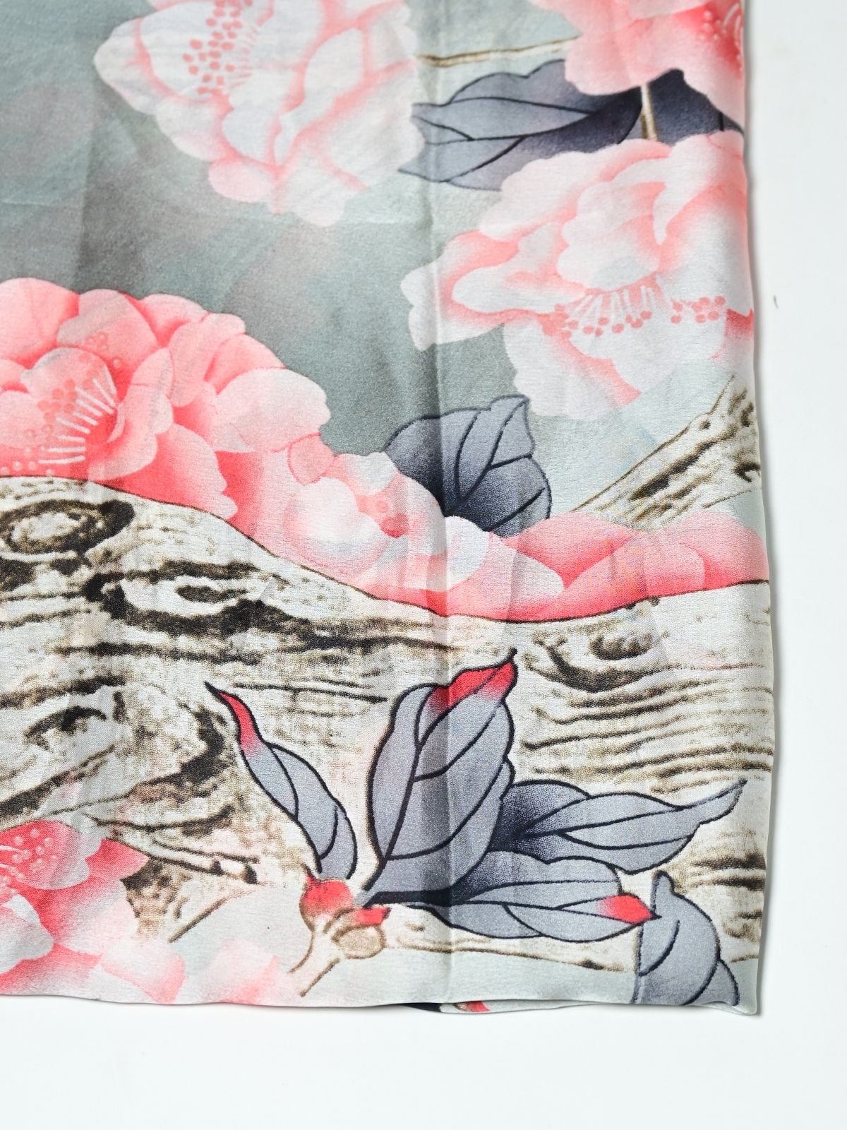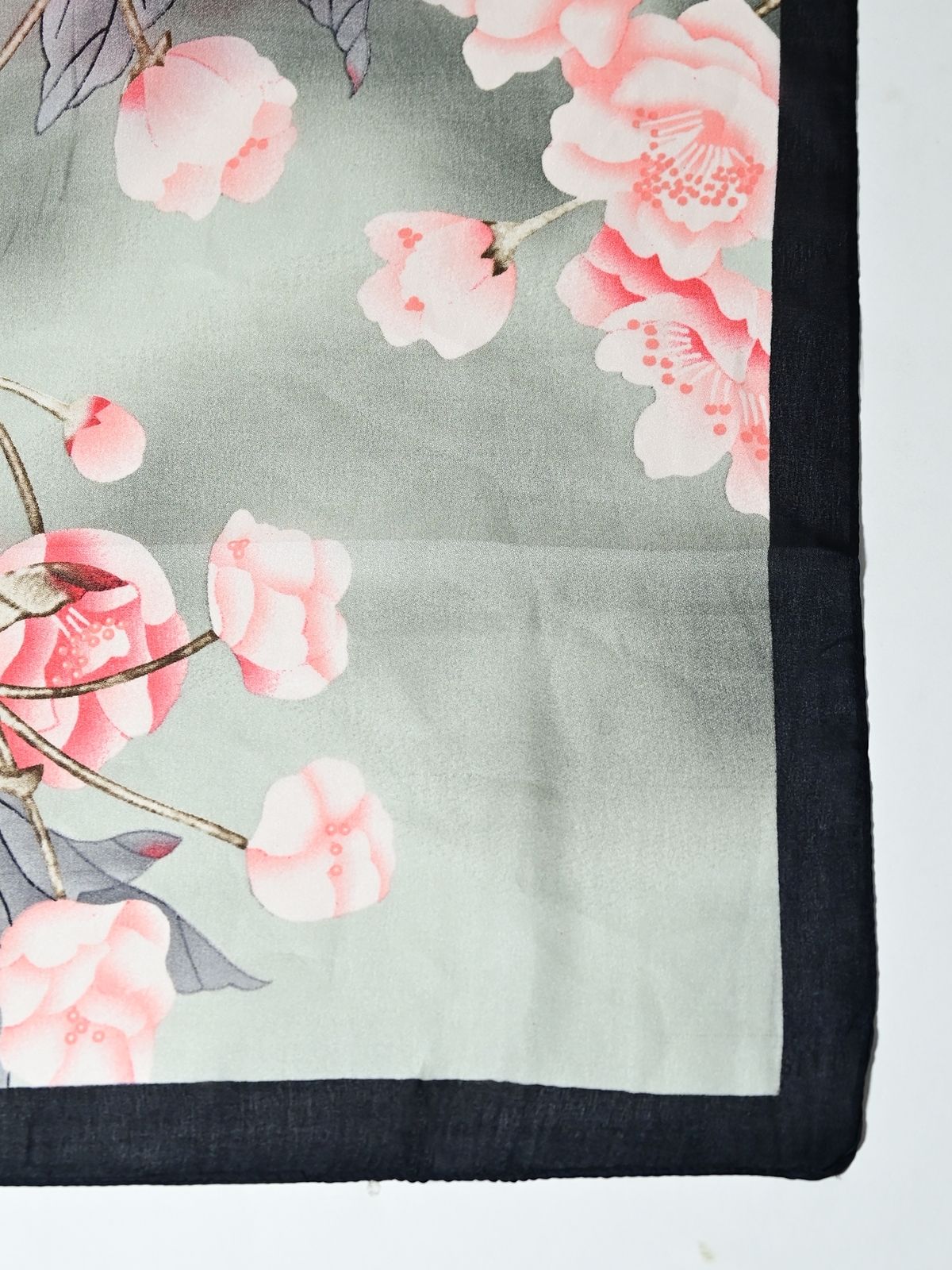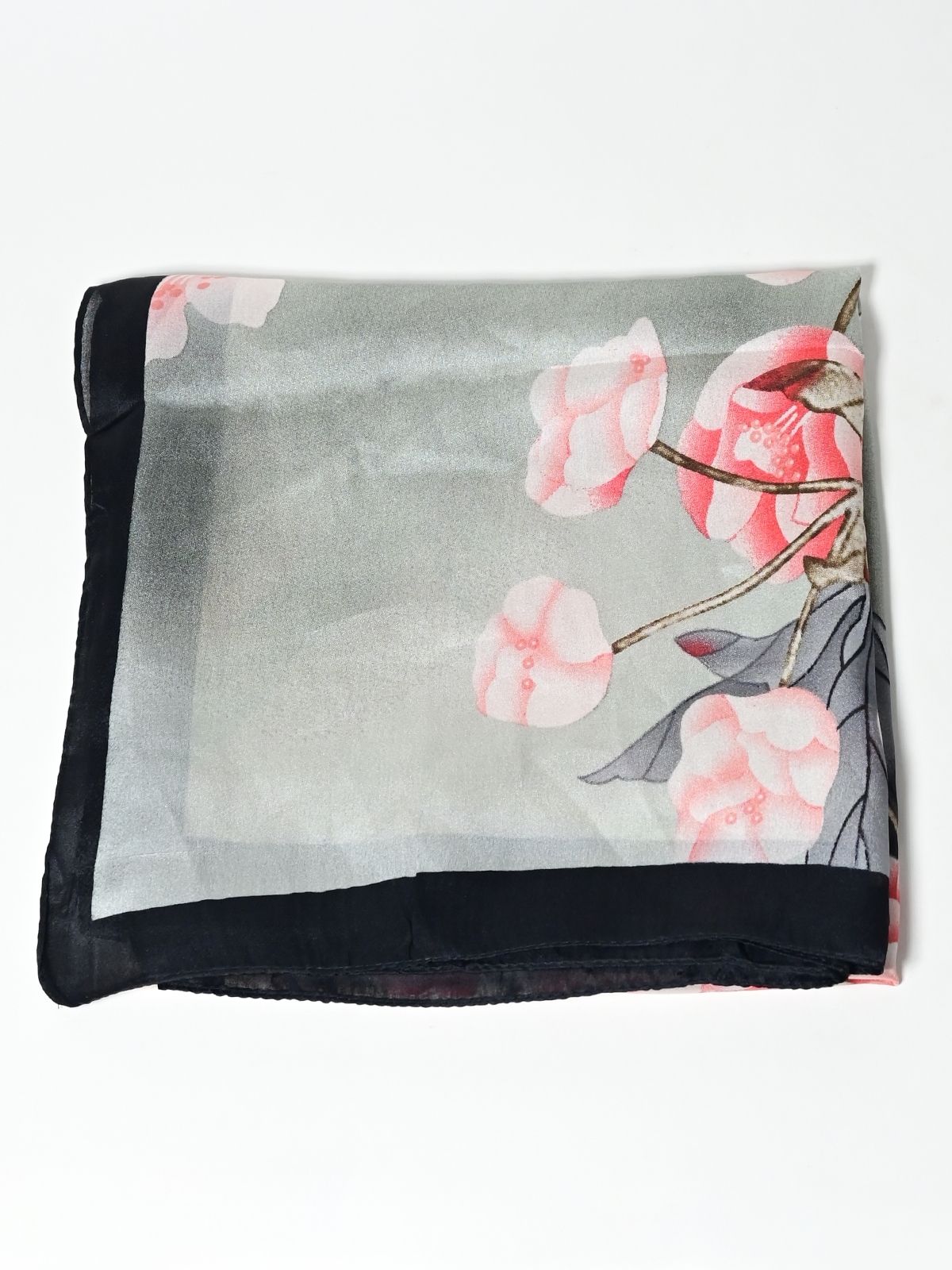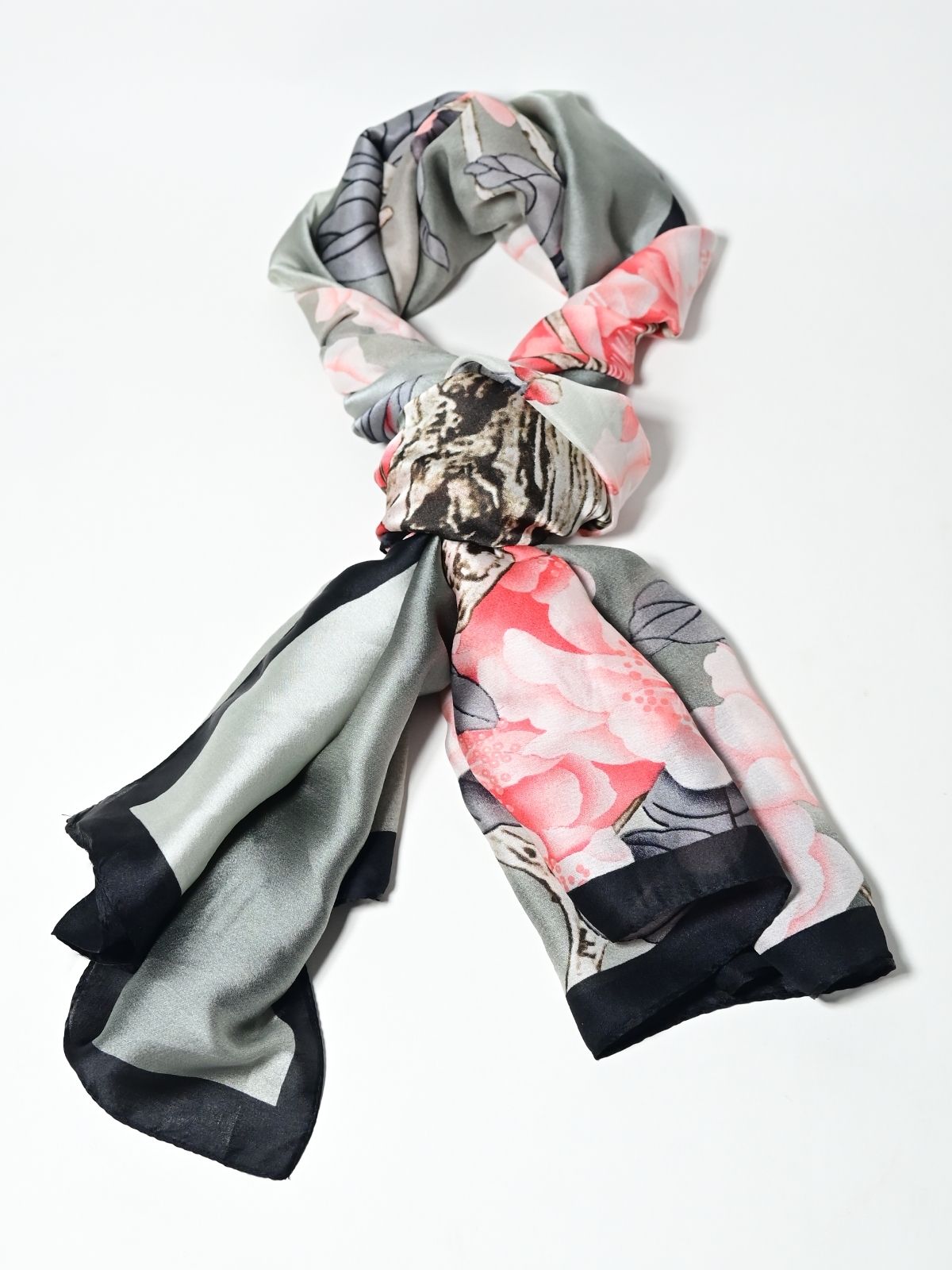 Odette Black And Grey Printed Satin Scarf For Women
