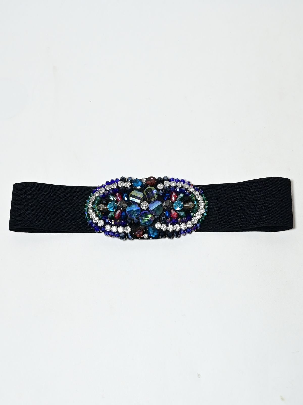 Odette Black Elastic Stone Belt For Women