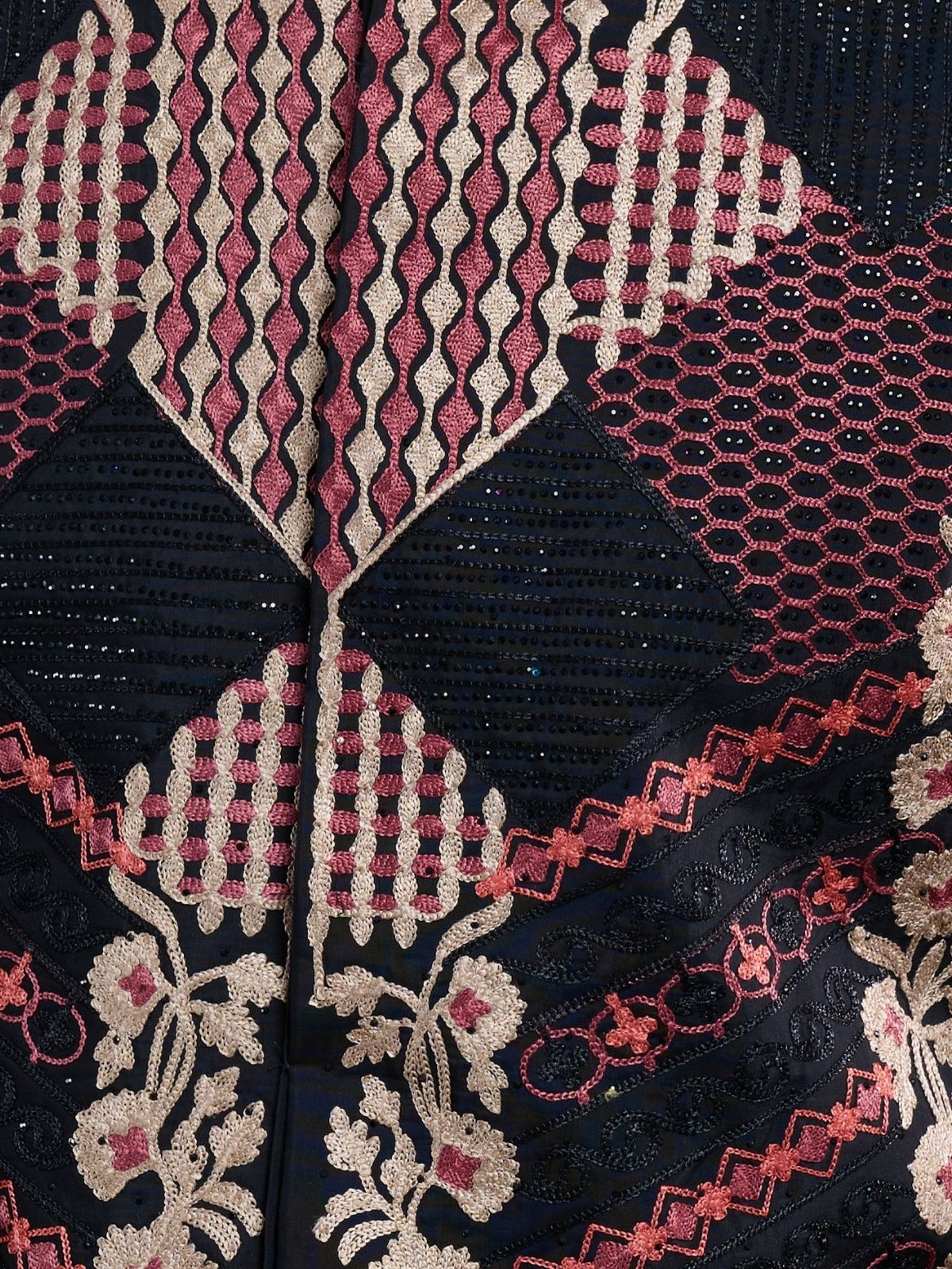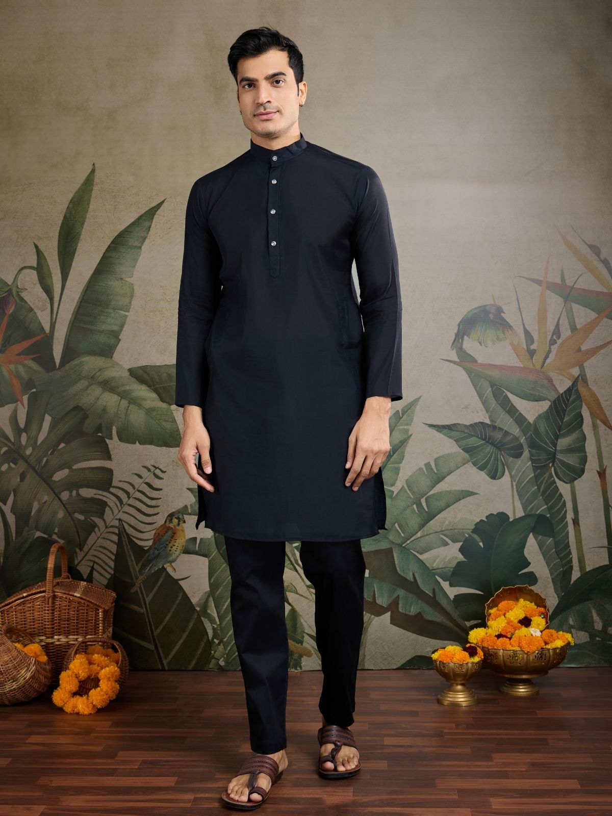 Odette Black Viscose Silk Embroidered Stitched Kurta For Men