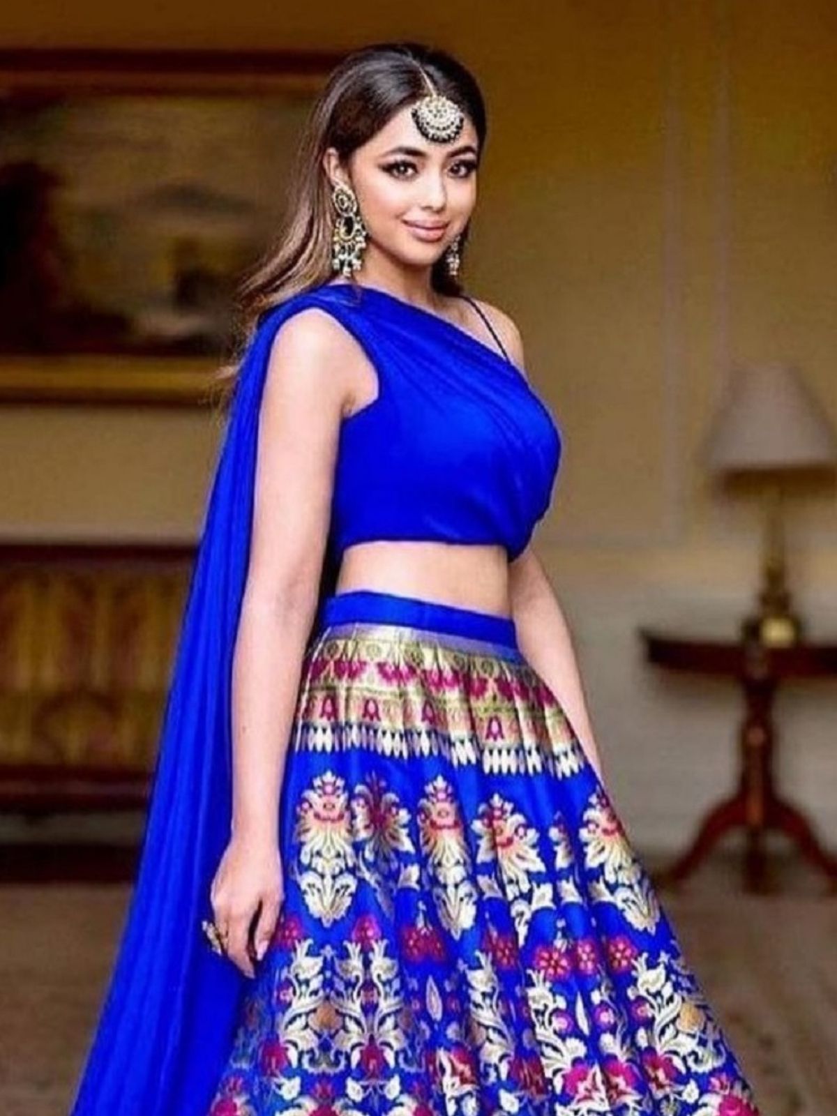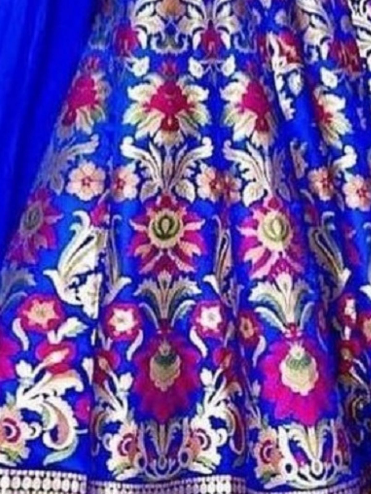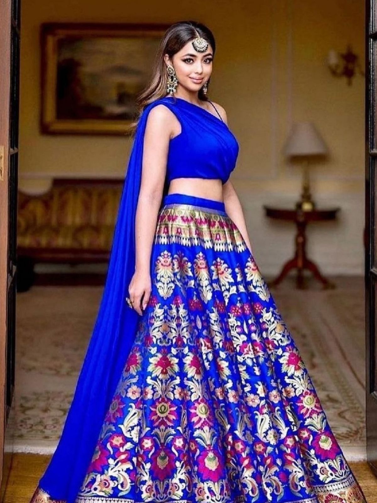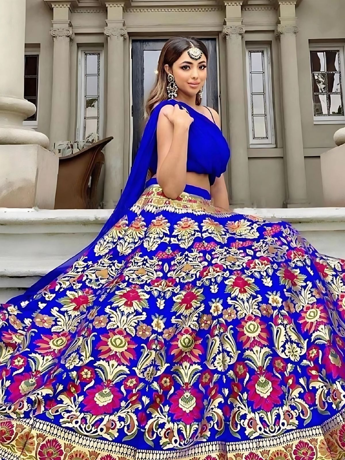 Odette Blue Jacquard Silk Woven Semi-Stitched Lehenga For Women