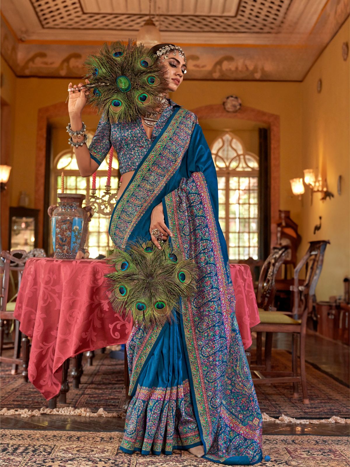 Odette Blue Silk Blend Woven Saree With Unstitched Blouse For Women