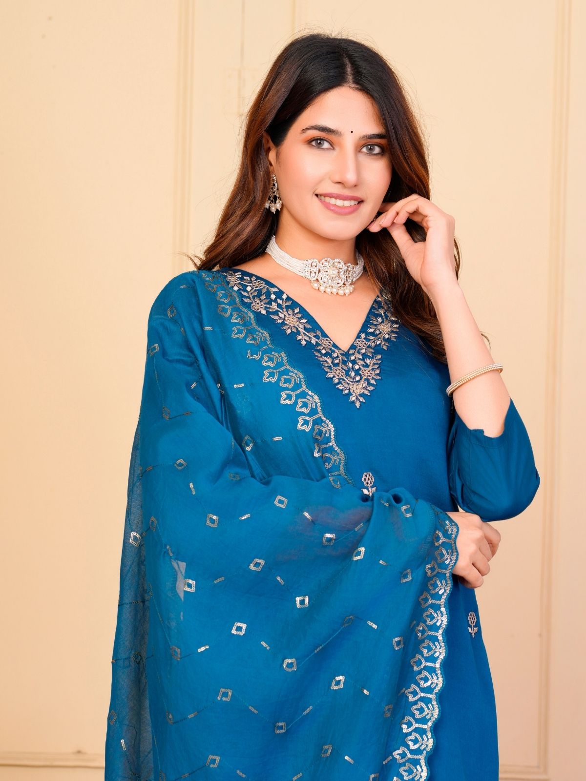 • Kurta Neckline : V Neck