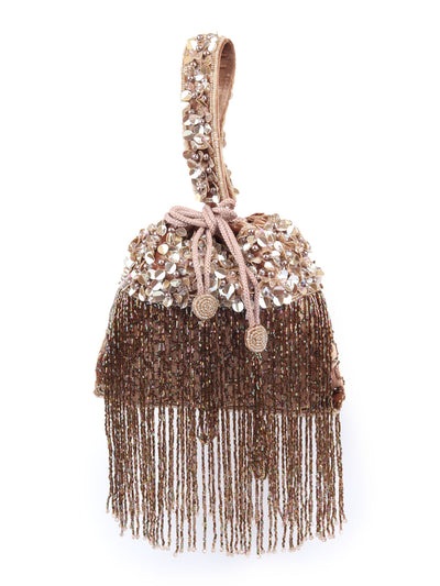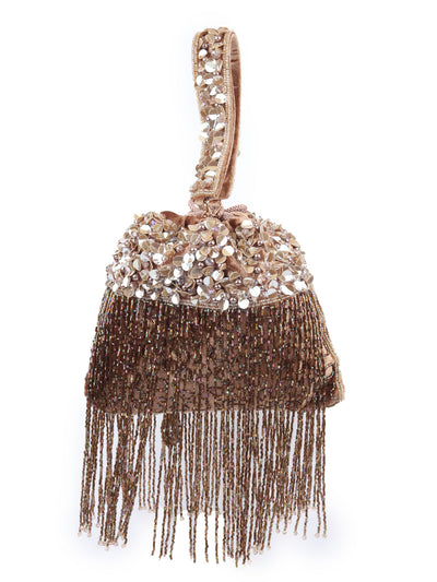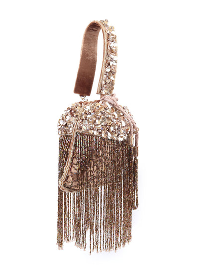 Odette Brown Velvet Embellished Potli For Women