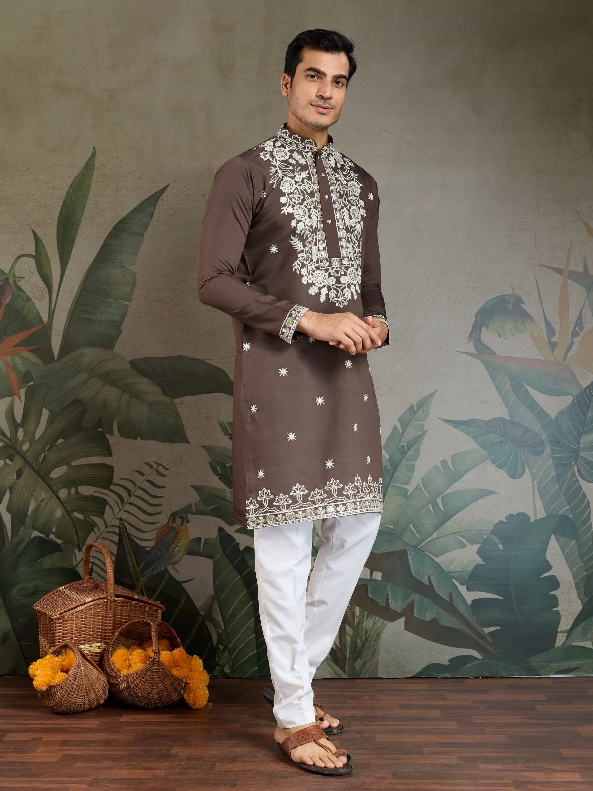 Embrace timeless elegance with this traditional men's kurta. Crafted with premium fabrics and intricate detailing, it exudes sophistication. Ideal for cultural celebrations or casual events, offering comfort and style in equal measure.