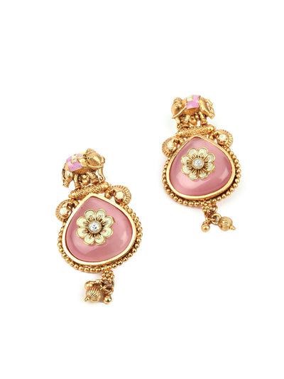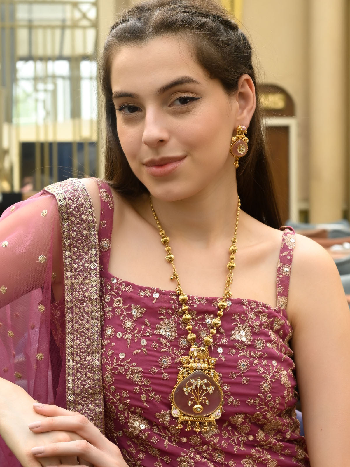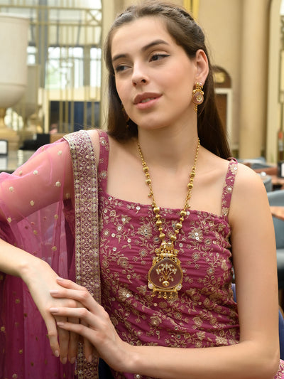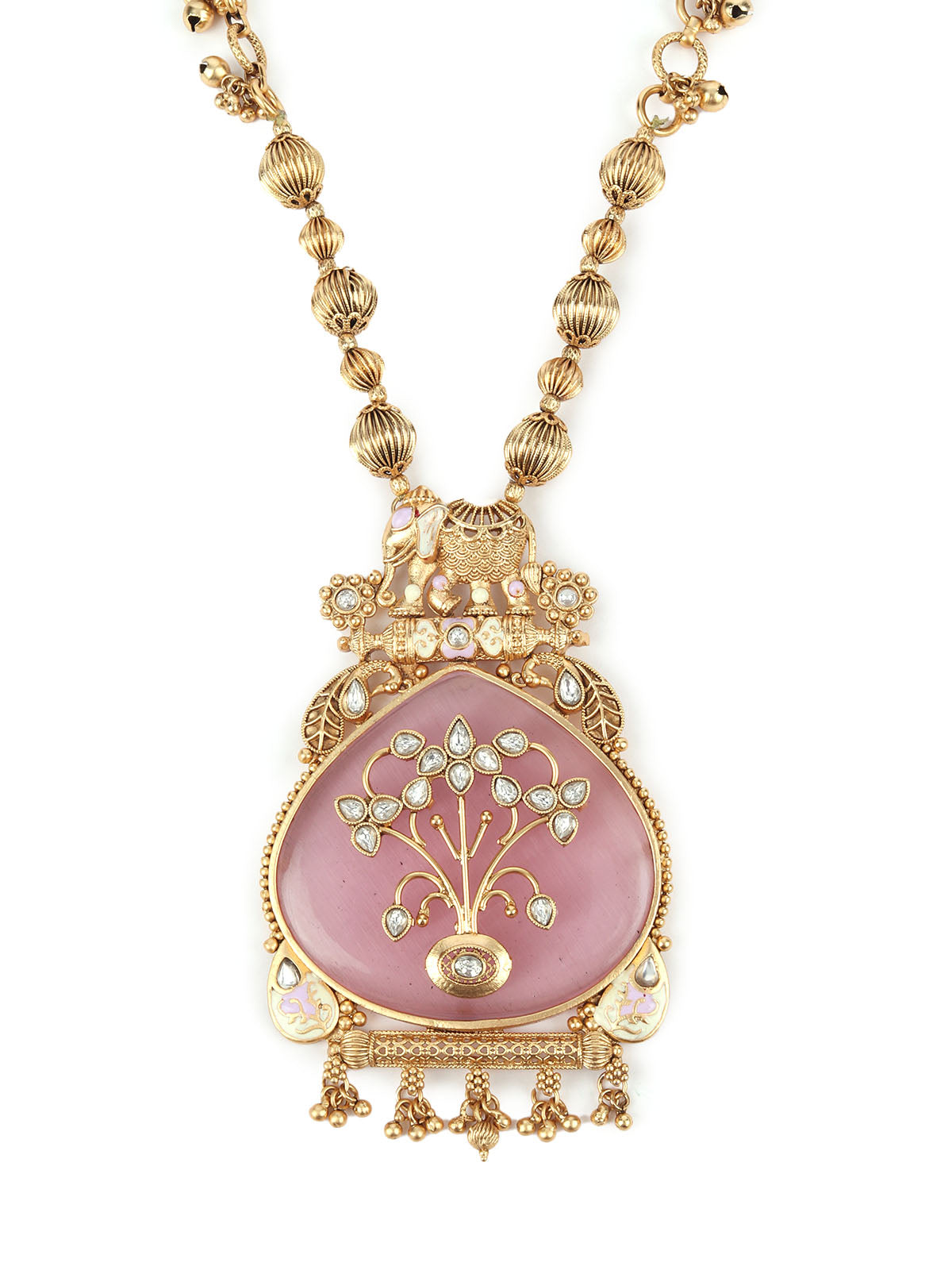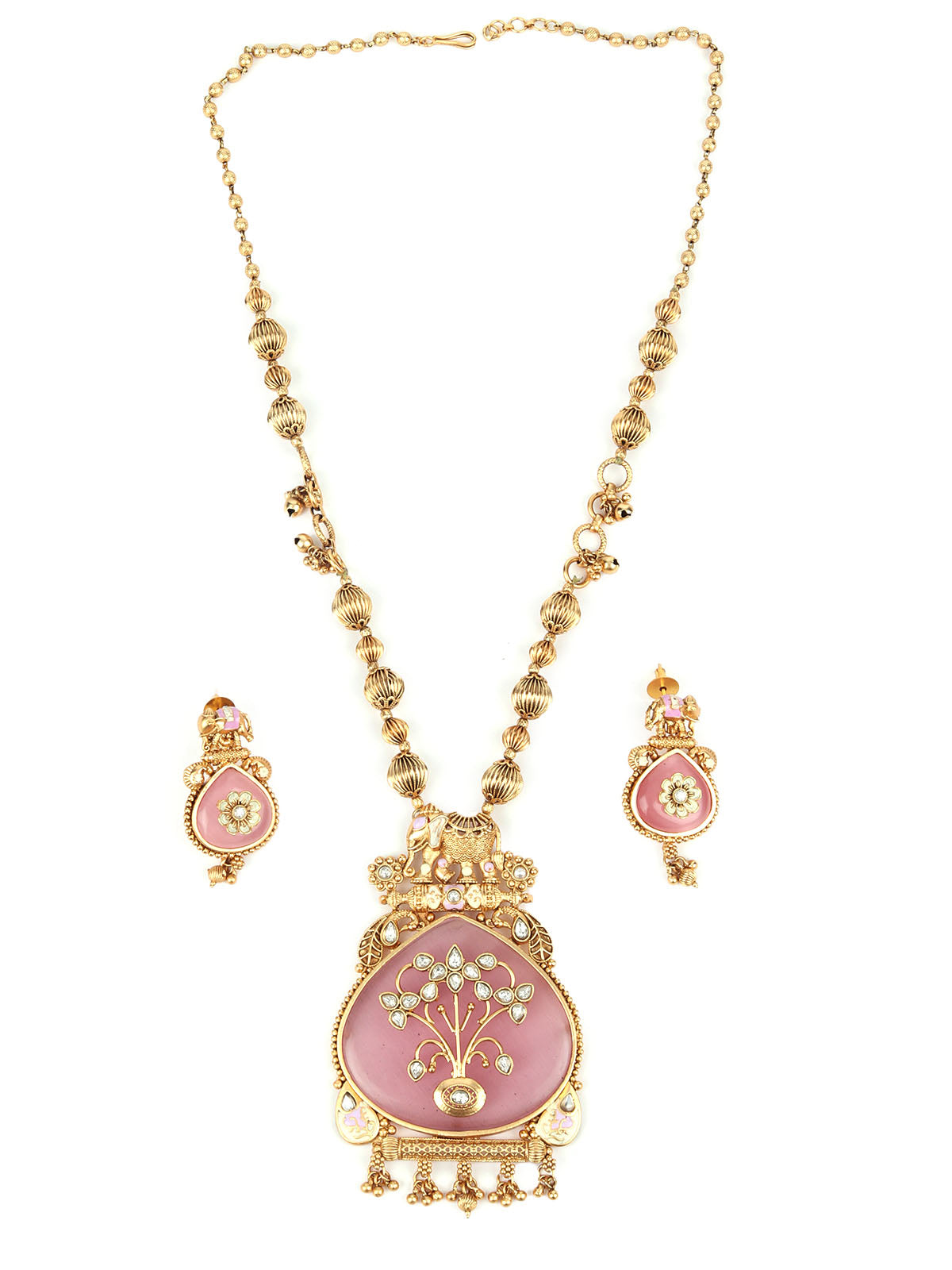 Odette Gold And Pink Mixed Metal Embellished Neck Piece Set For Women