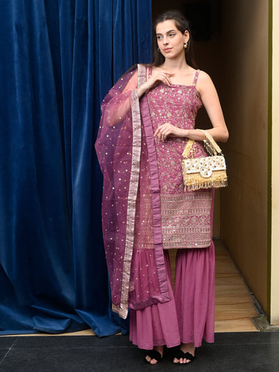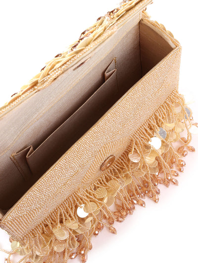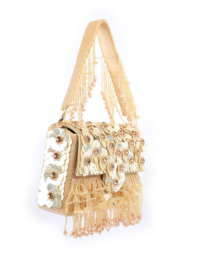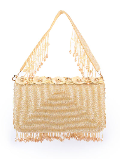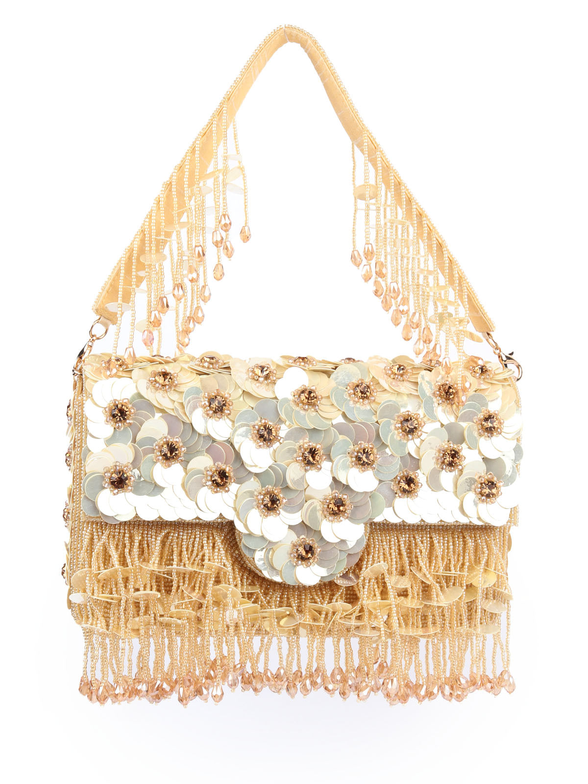 Odette Gold Cotton Blend Embellished Hand Bag For Women