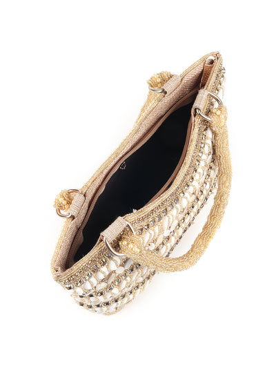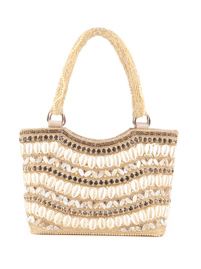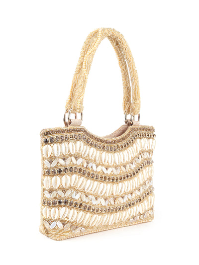 Odette Gold Shells and Beads Embroidered Clutch for Women