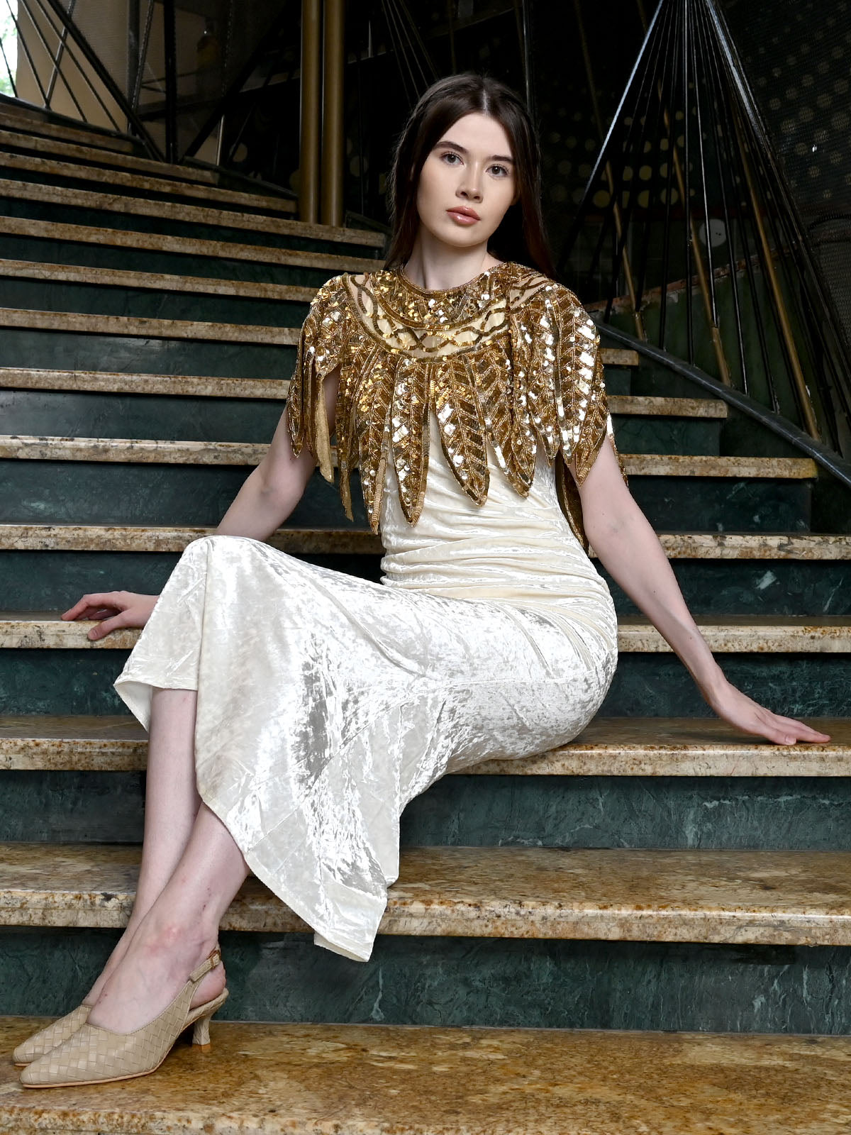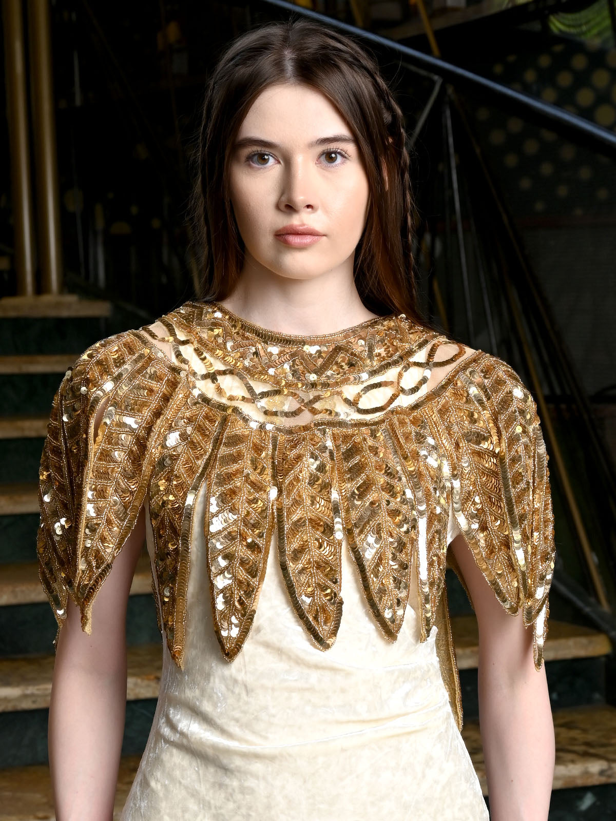 An Amazing Partywear, This Cape Is A Head-Turner For Sure. Created On Soft Net And Embroidered With Sequins & Cutdana, This Tasseled Cape Is A Fun Accessory For Parties, That Compliments Western Wear.