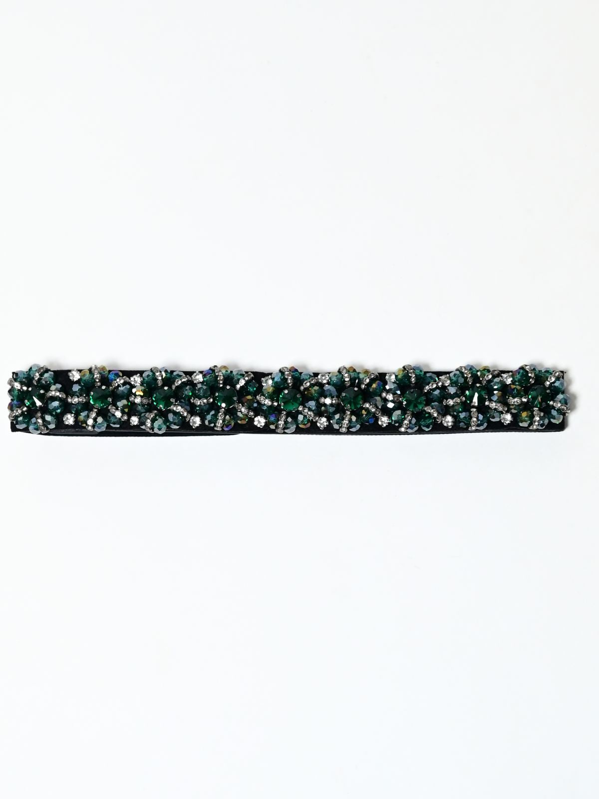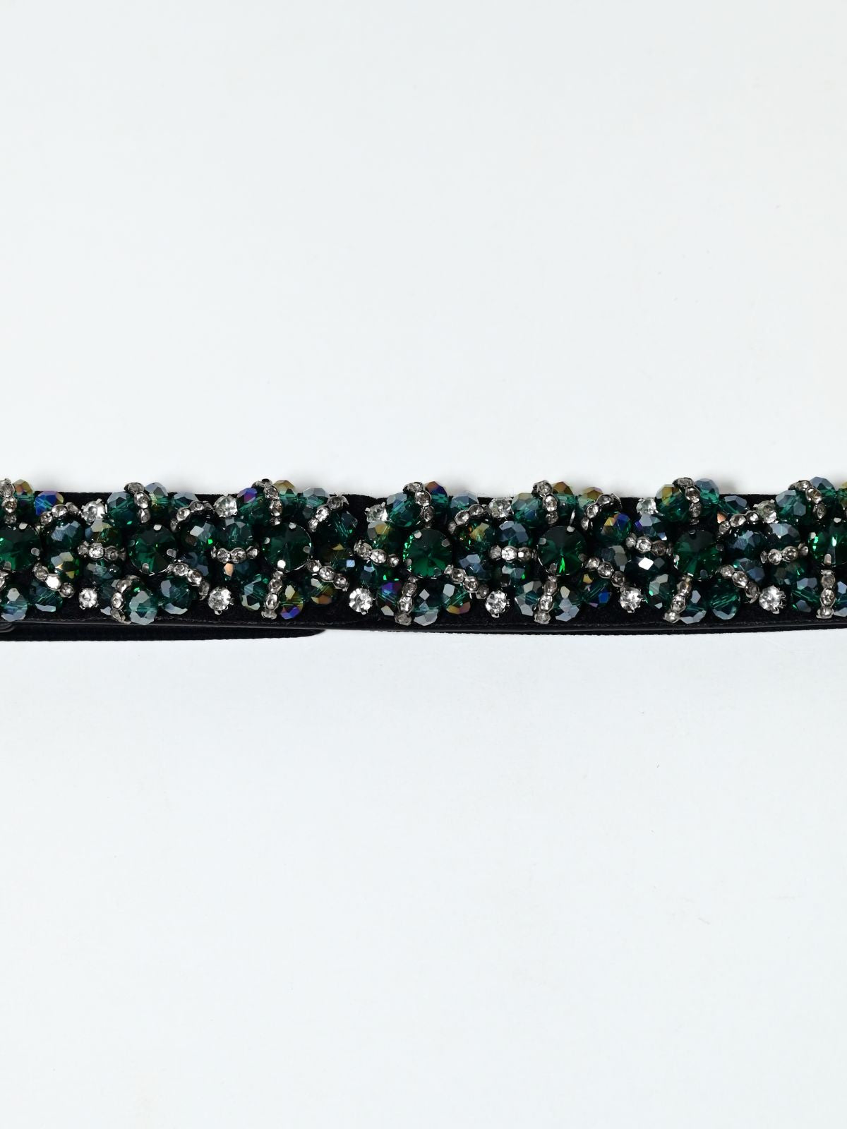 Odette Green And Black Elastic Stone Belt For Women