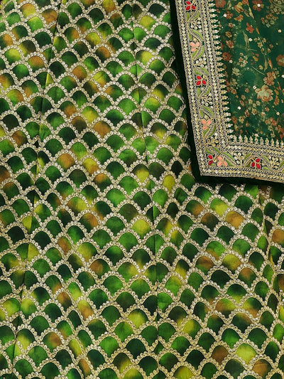 Odette Green Art Silk Embroidered Semi Stitched Lehenga With Blouse For Women