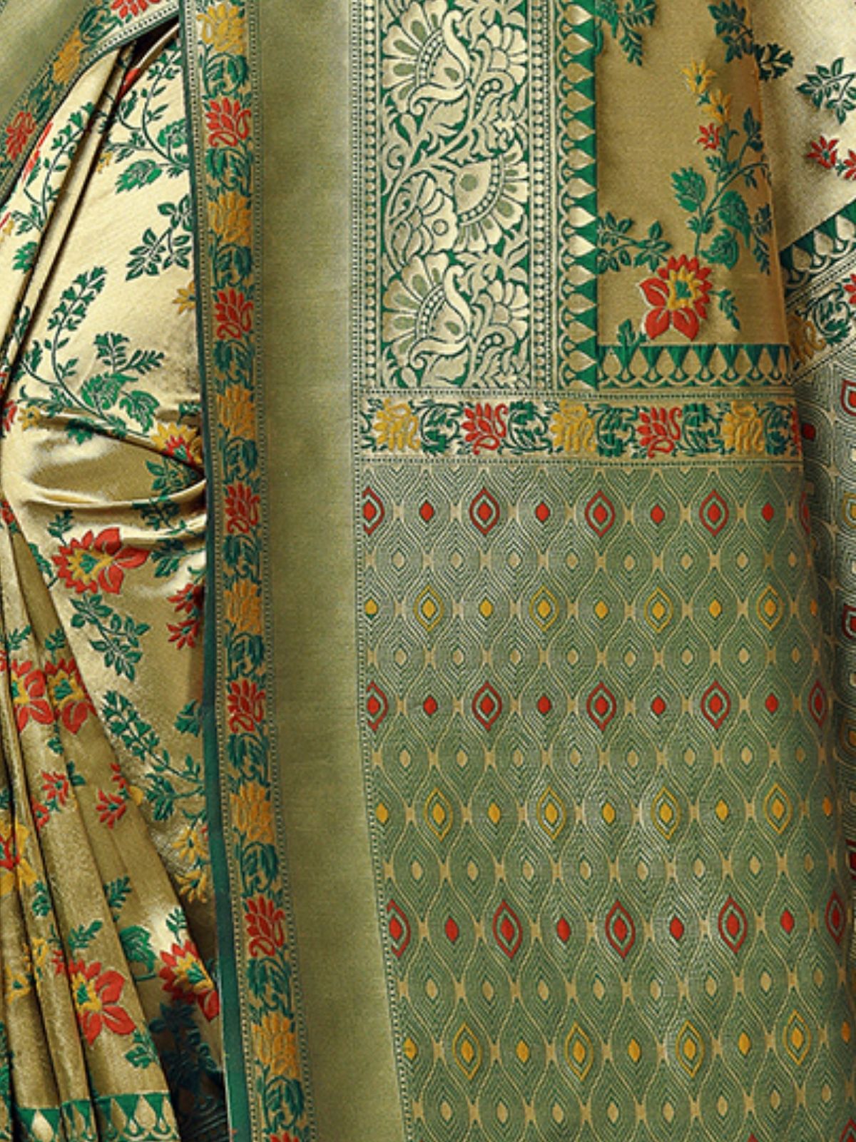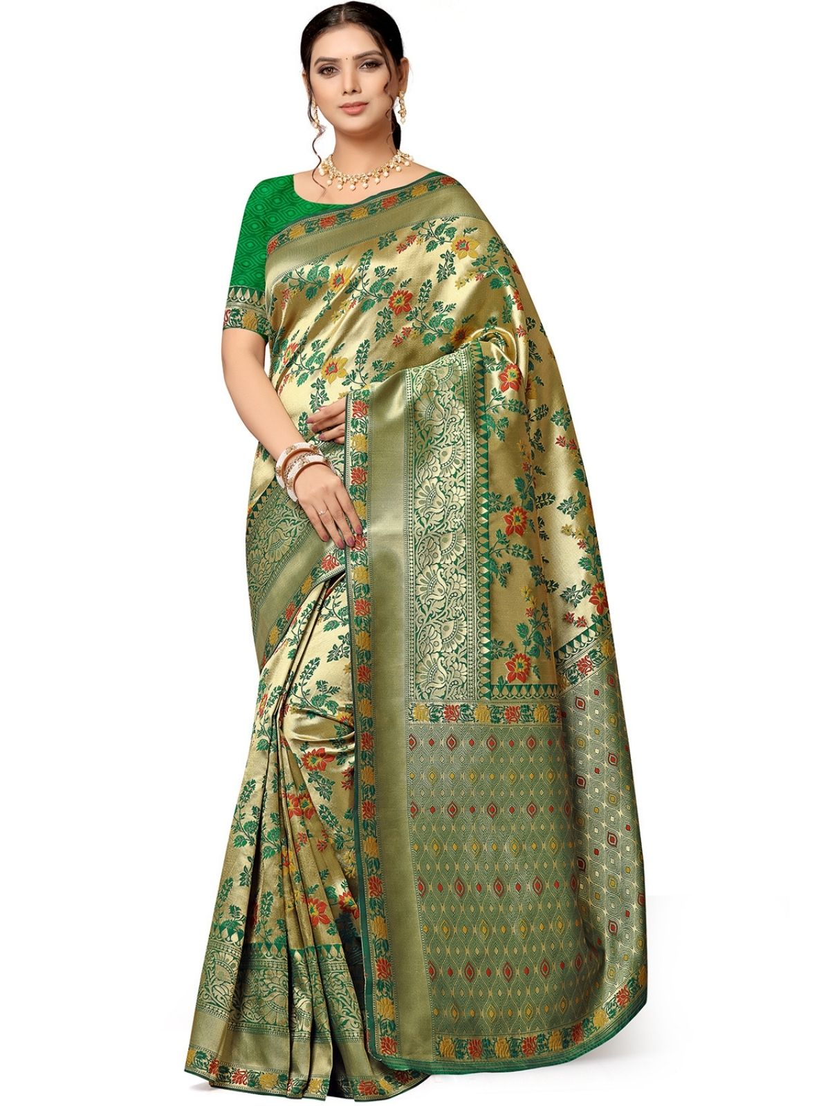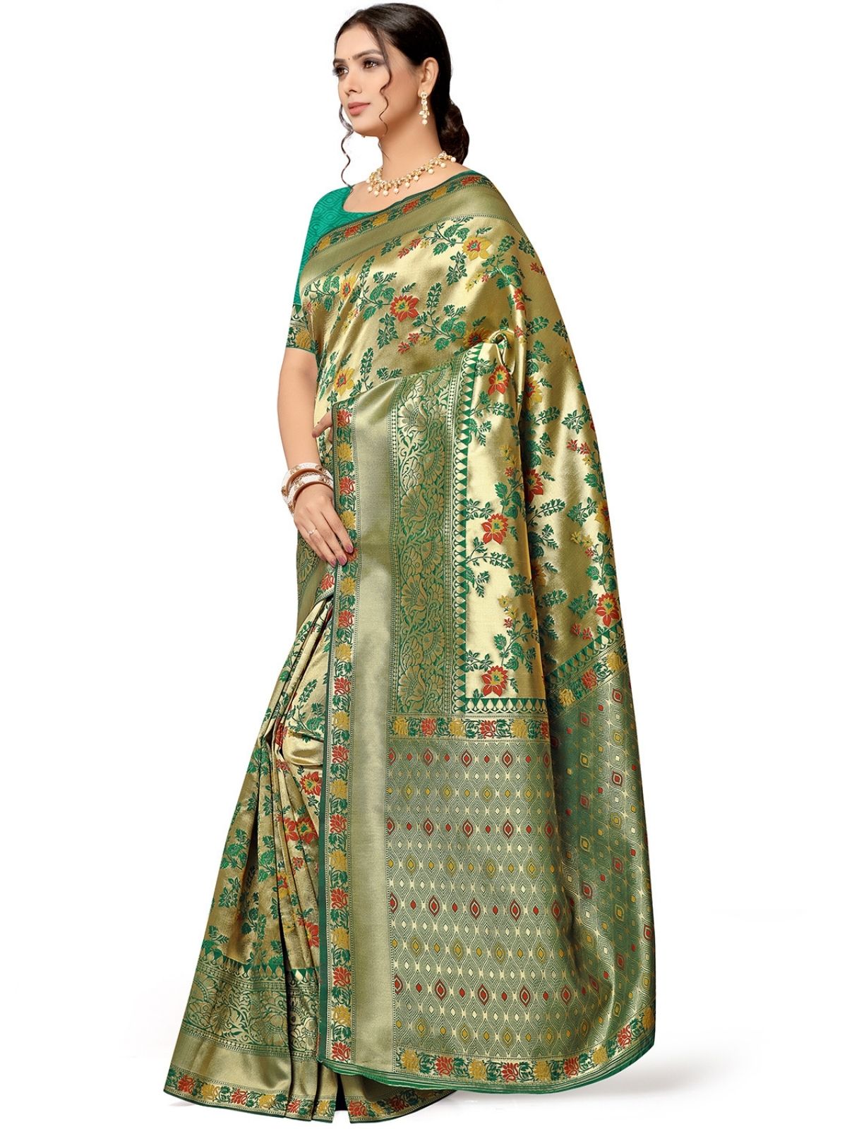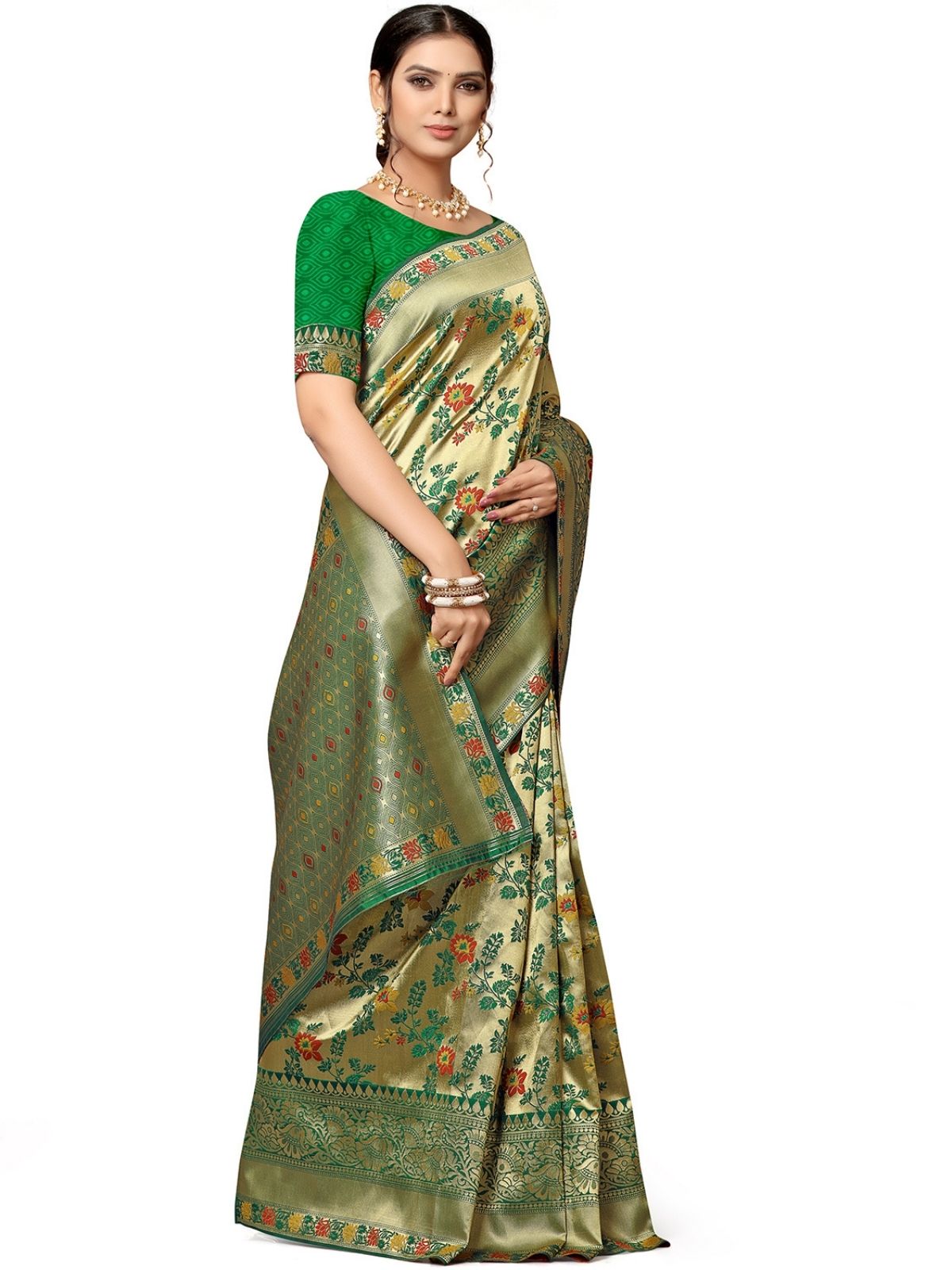 • Saree Color : Green & Golden