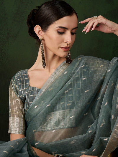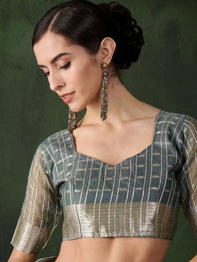 Odette Green Organza Woven Saree With Unstitched Blouse For Women