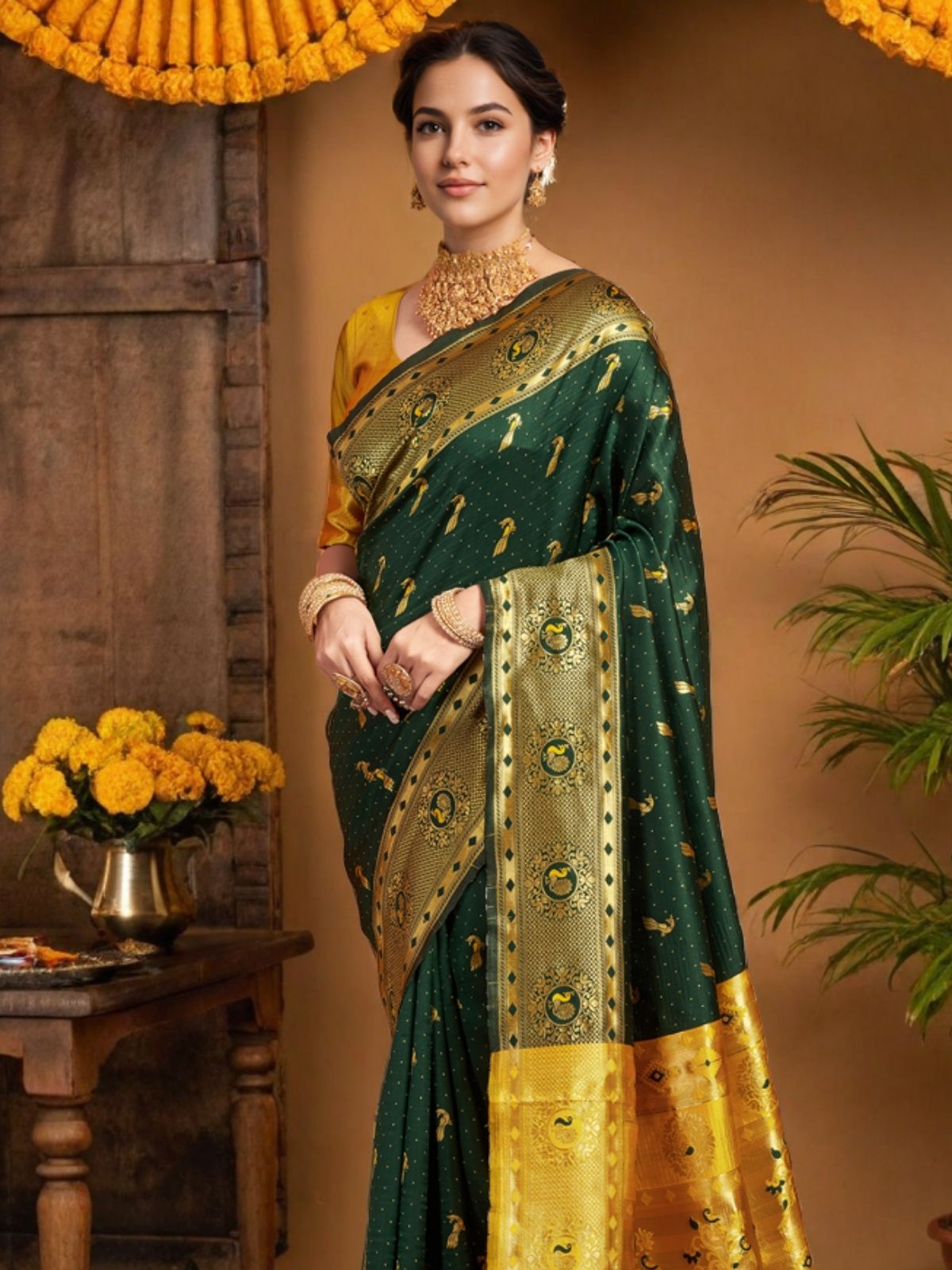 • Saree Color : Green