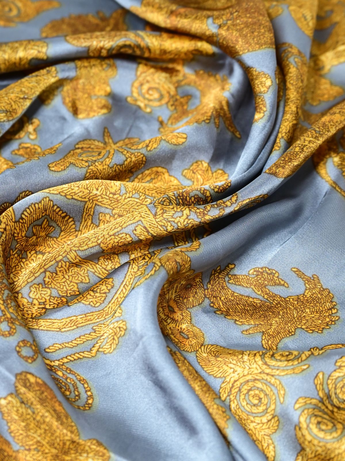Odette Grey Printed Satin Scarf For Women