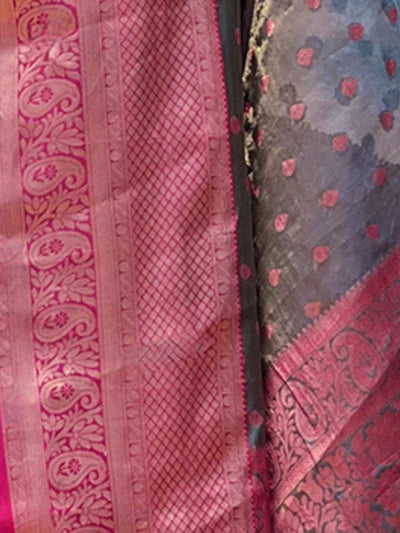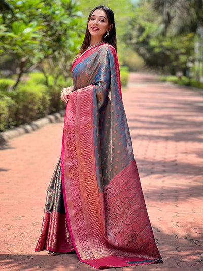 Odette Grey Woven Design Tissue Silk Saree With Unstitched Blouse For Women