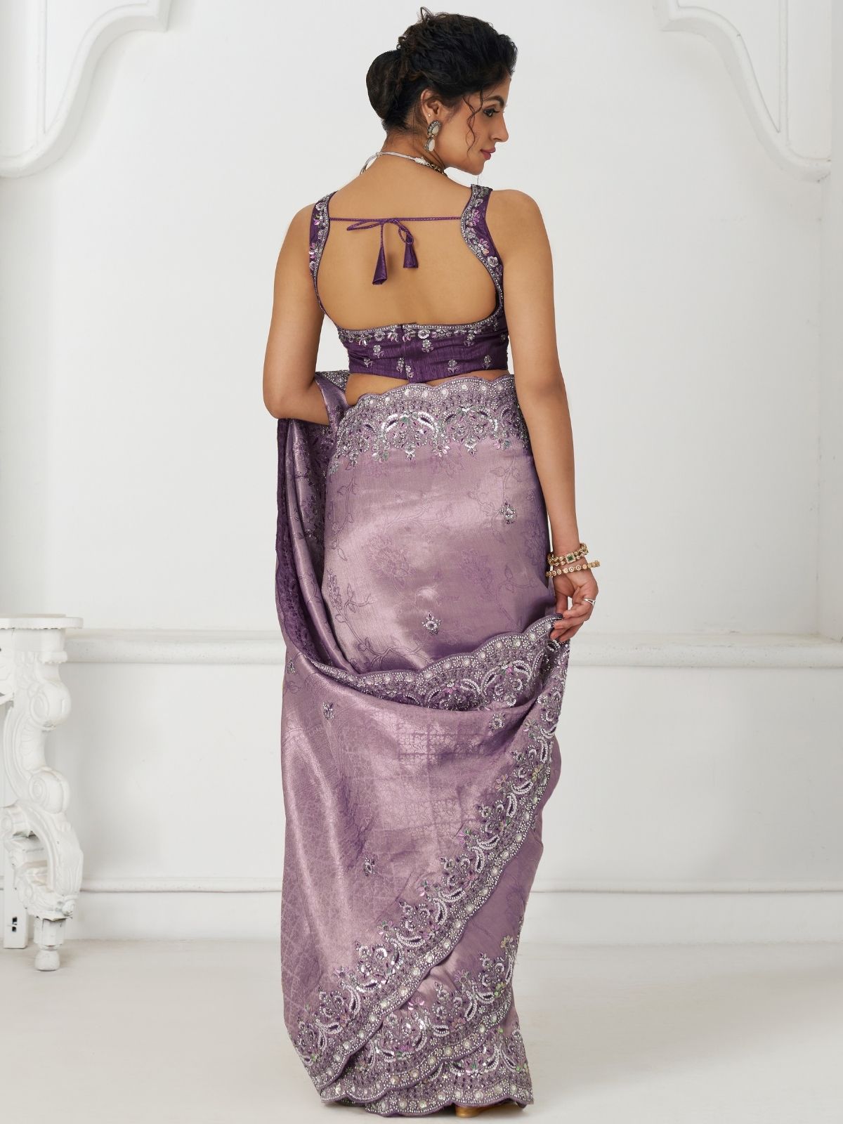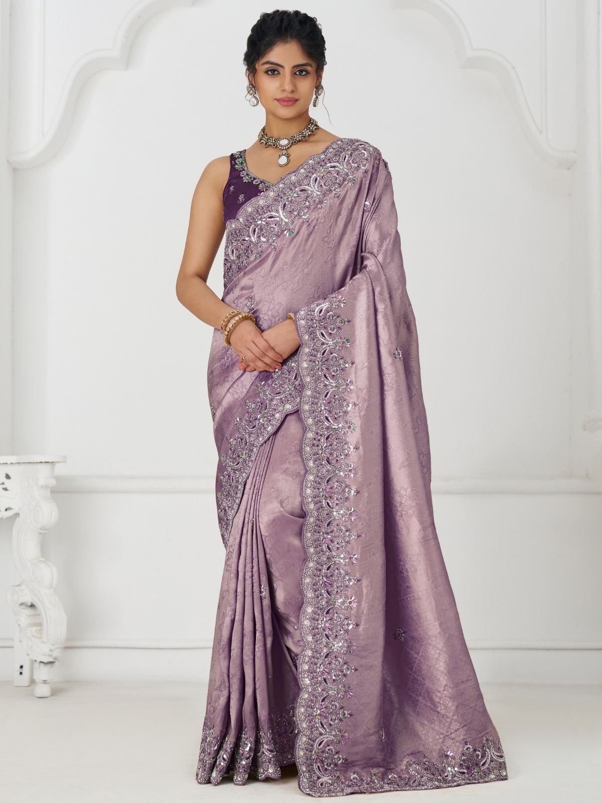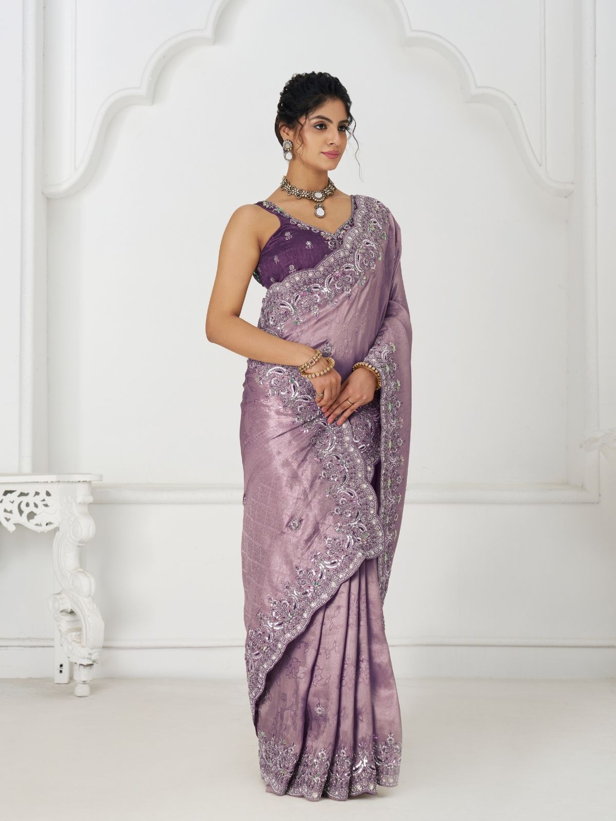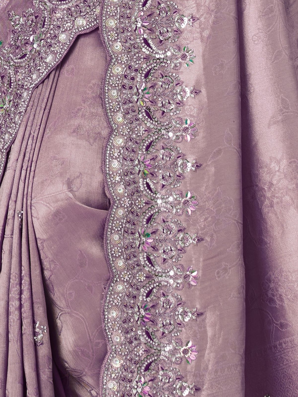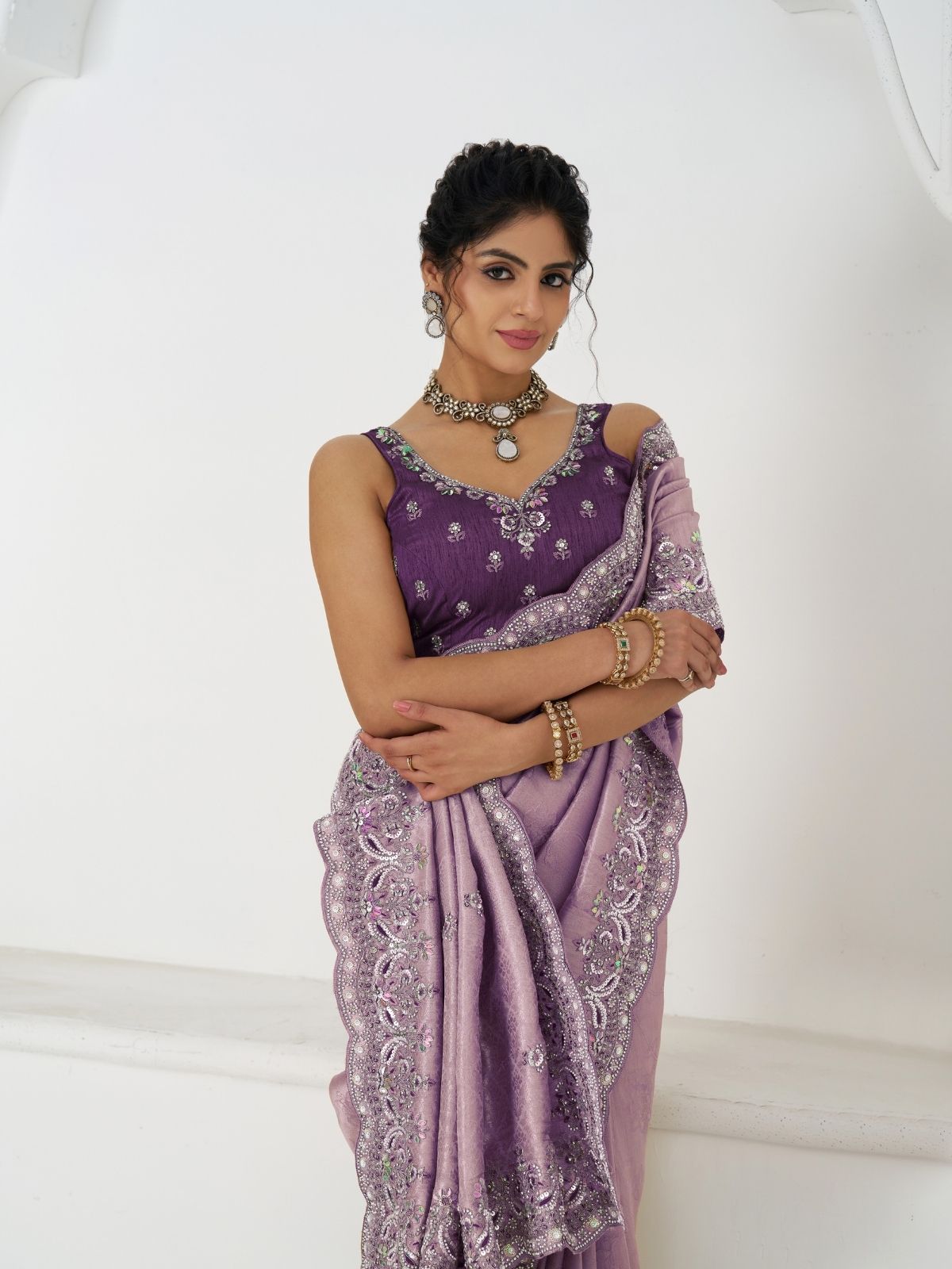 Odette Lavender Viscose Silk Embellished Saree For Women