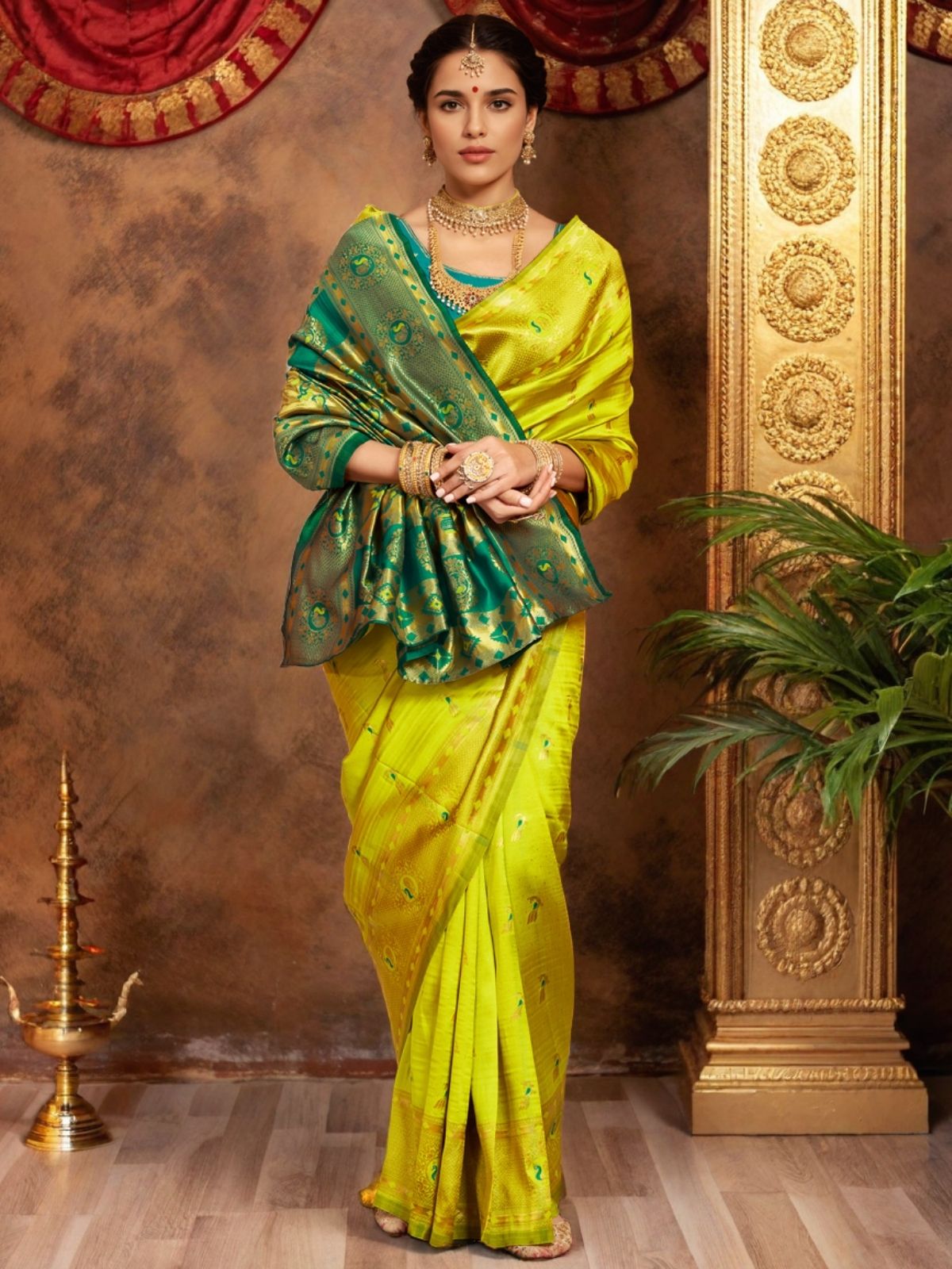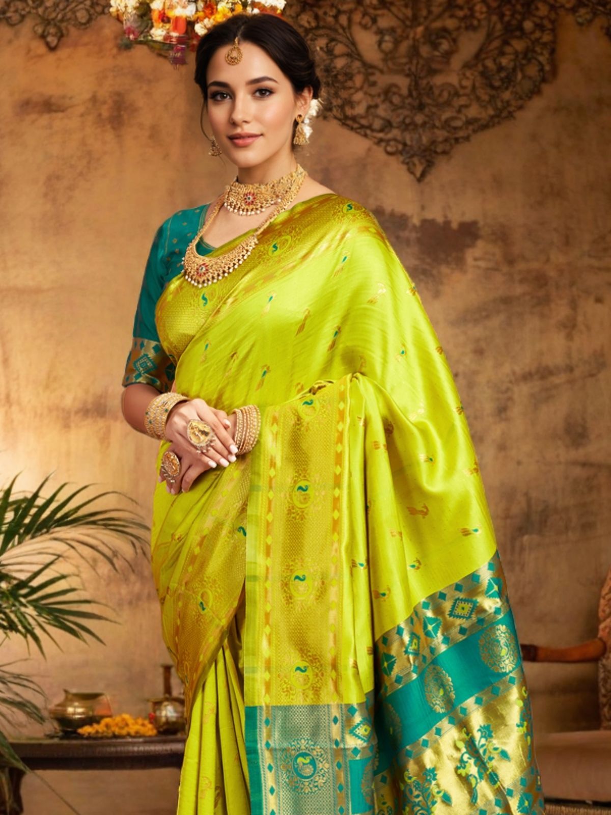 • Saree Color : Lime Green