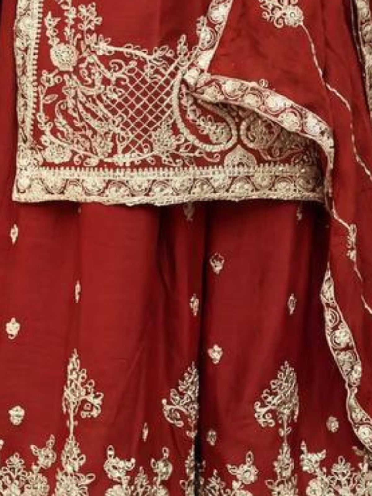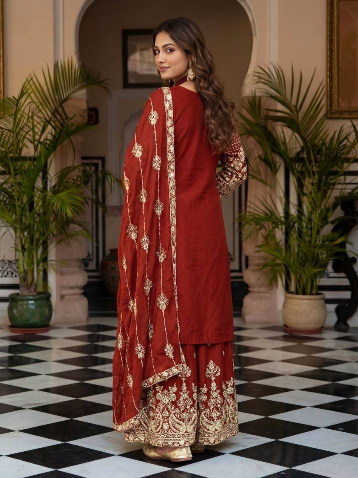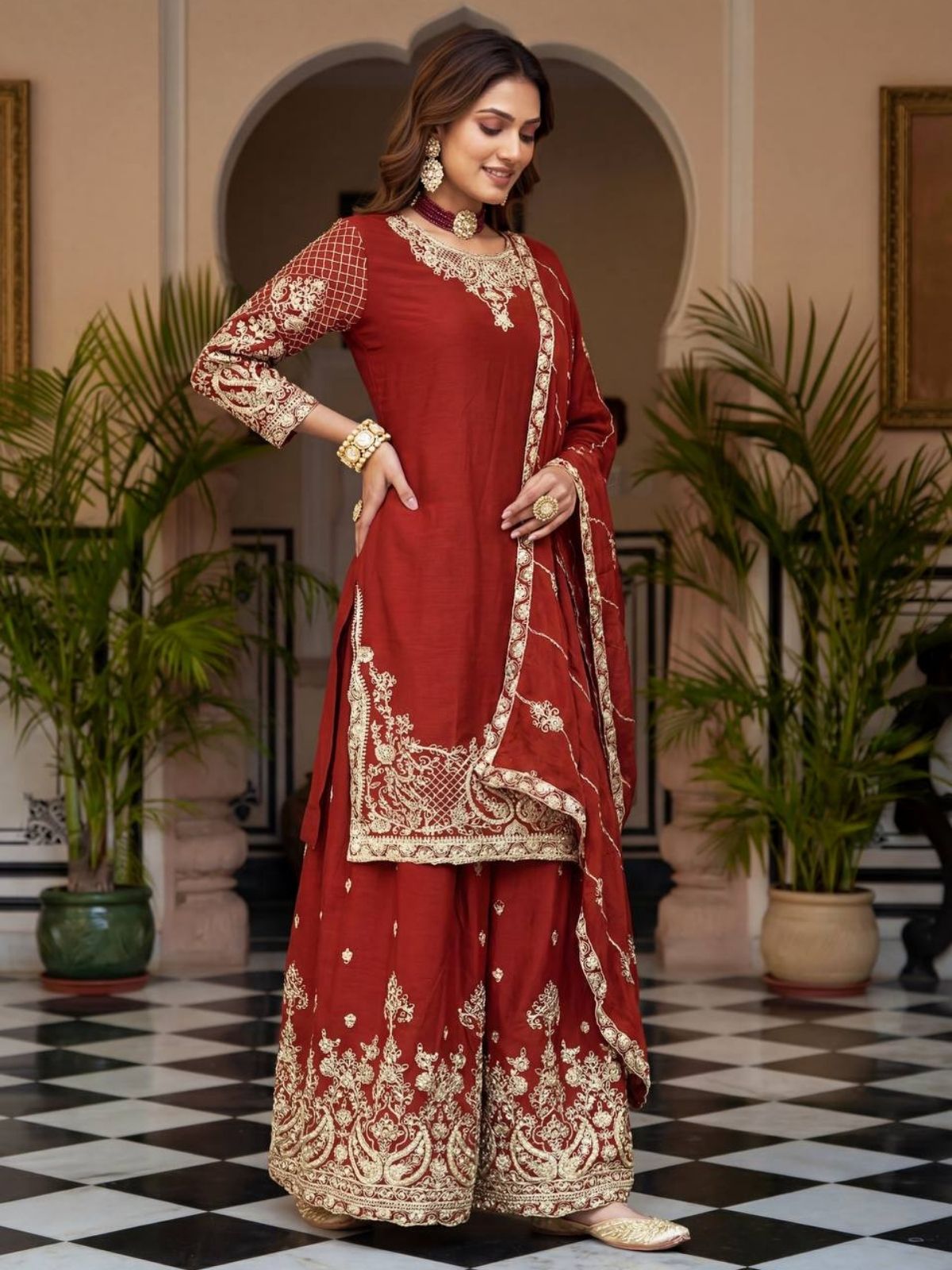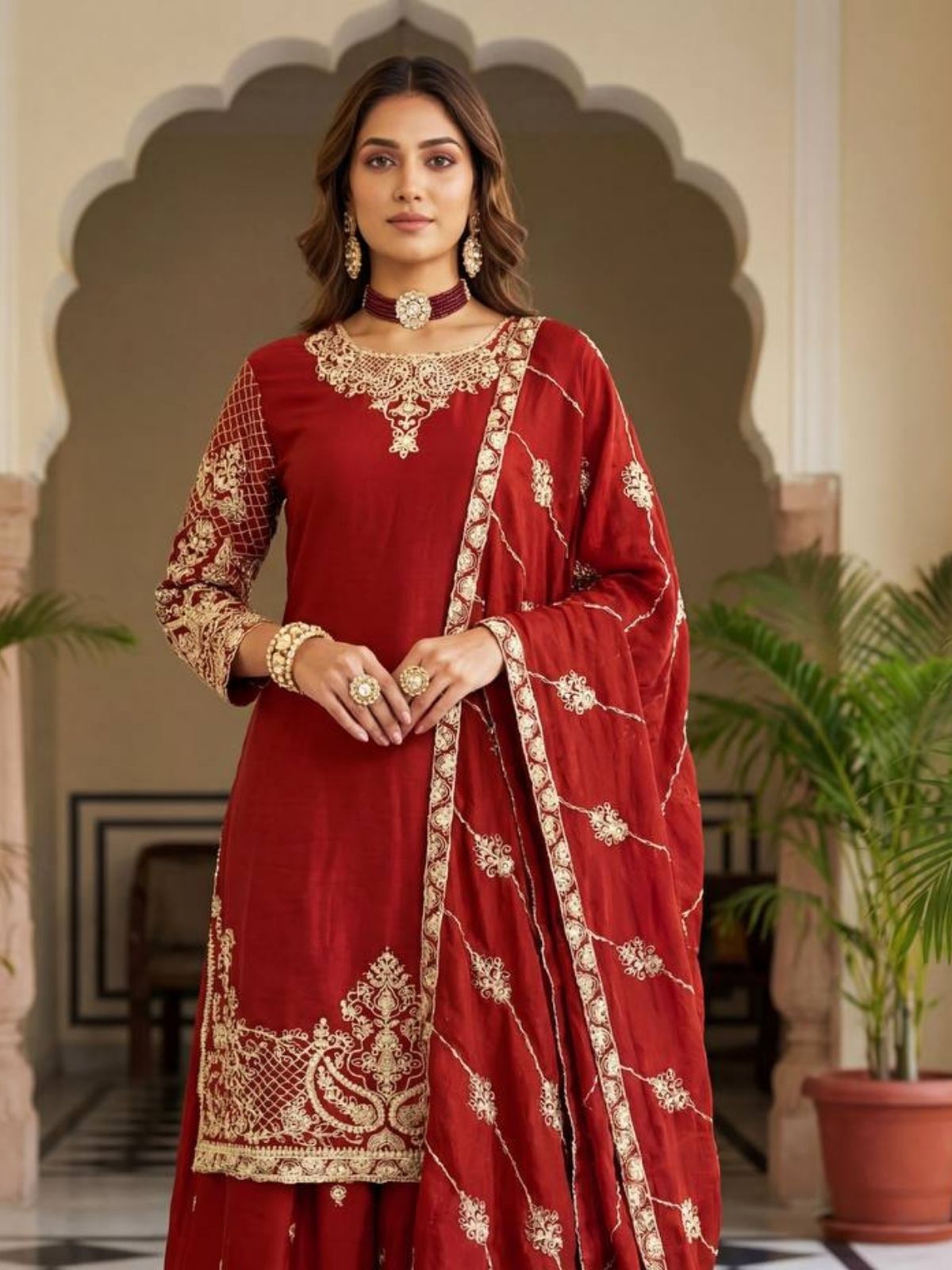 Odette Maroon Chinon Solid Stitched Kurta Set For Women