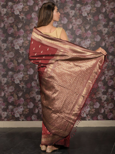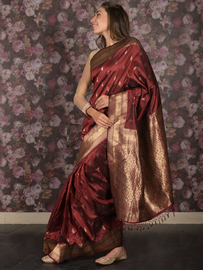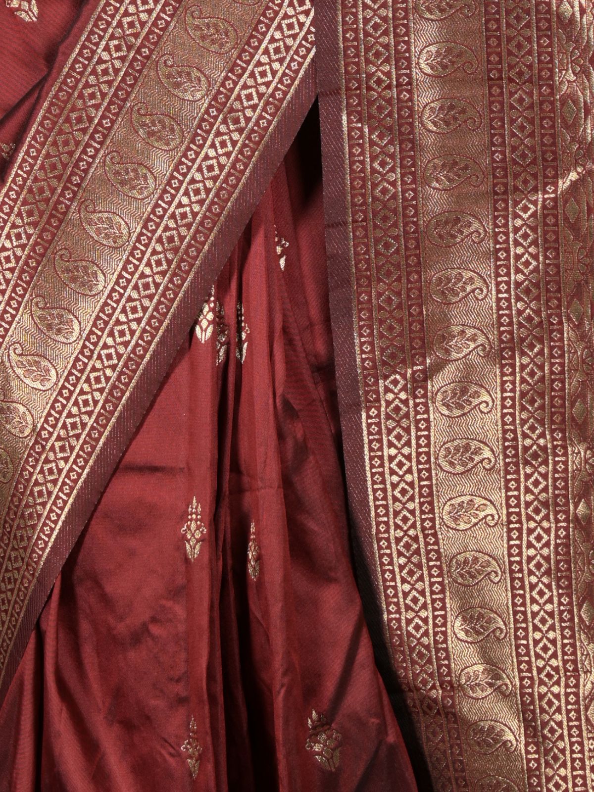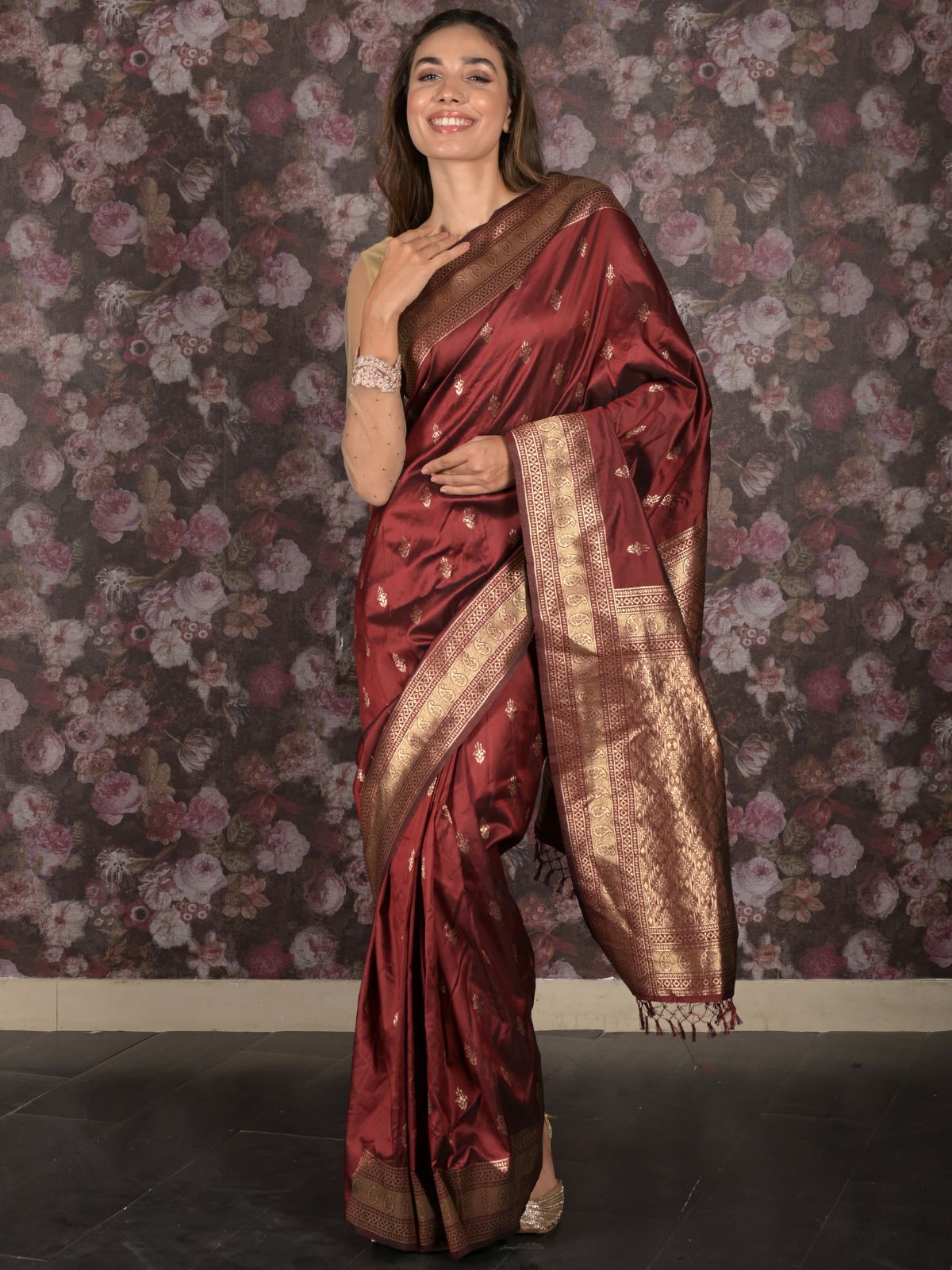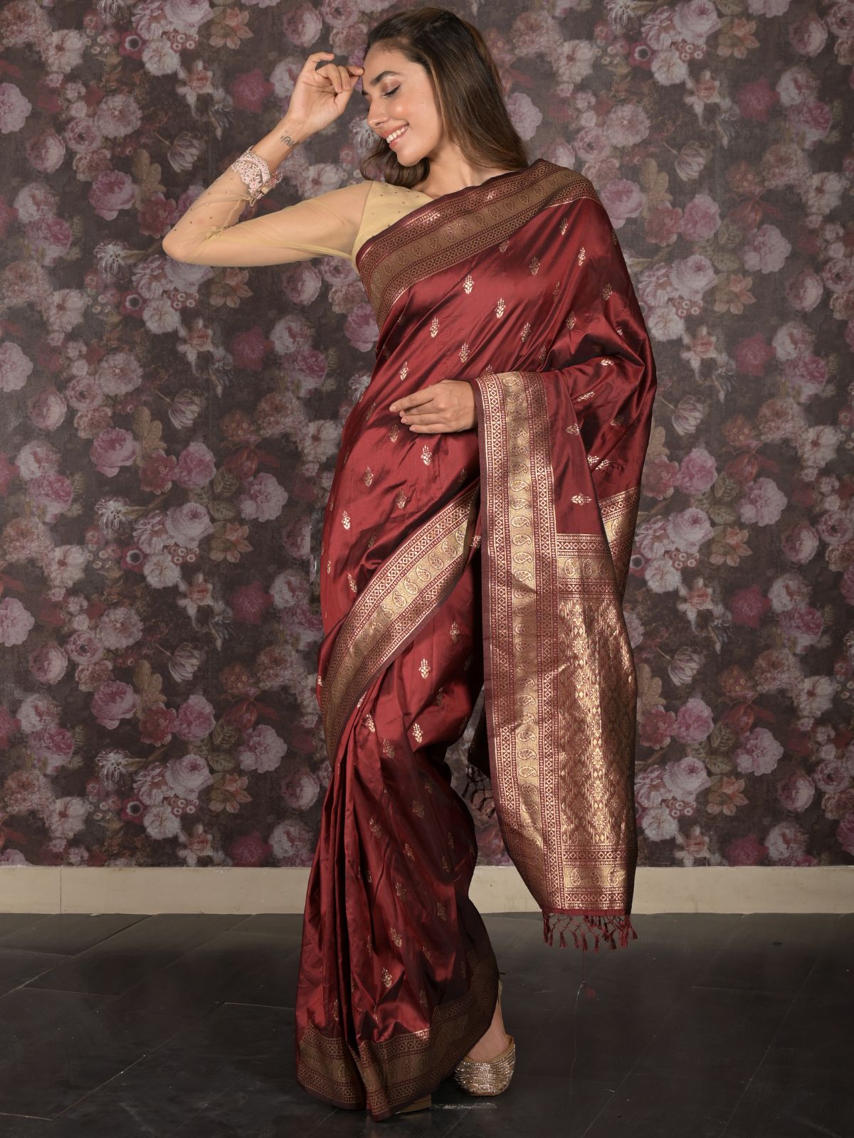 Odette Maroon Woven Silk Blend Saree with Unstitched Blouse for Women