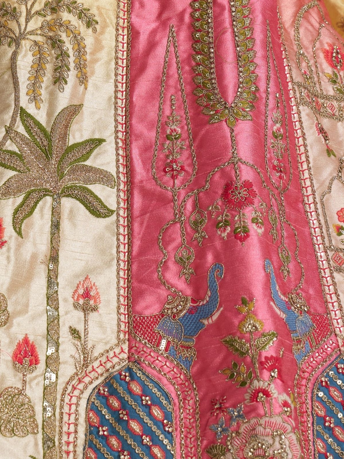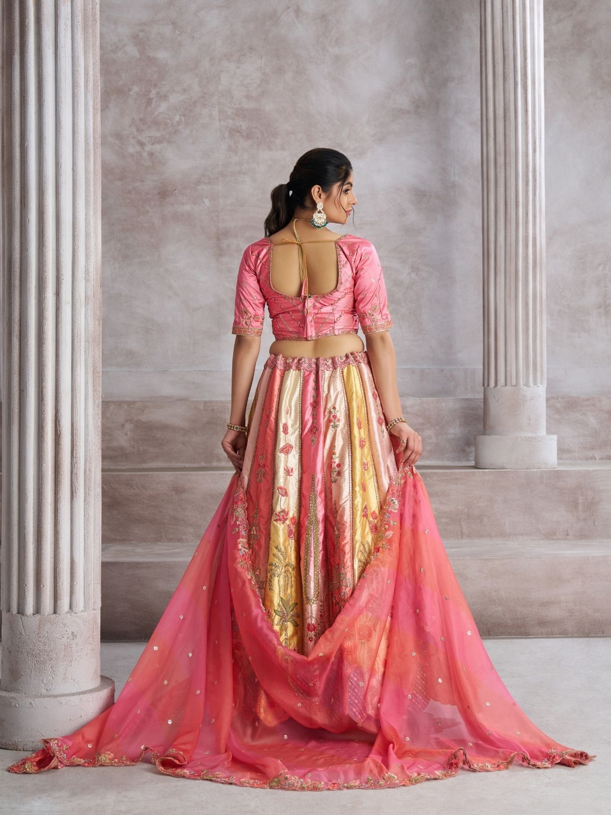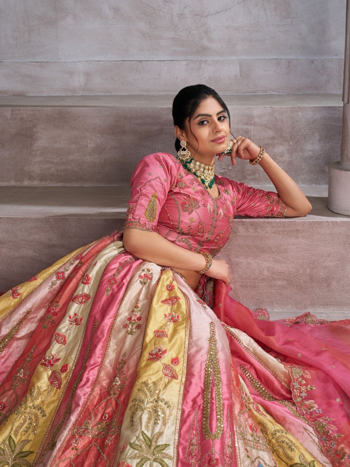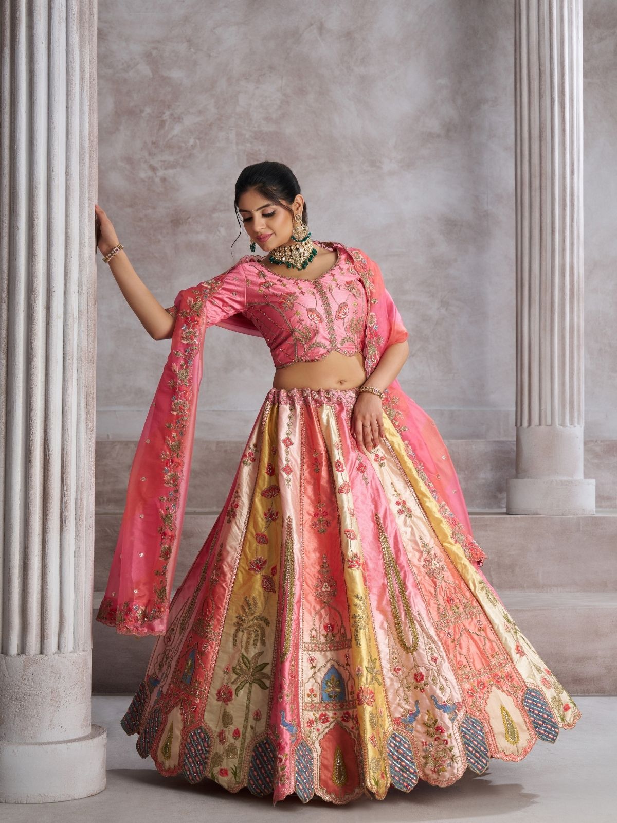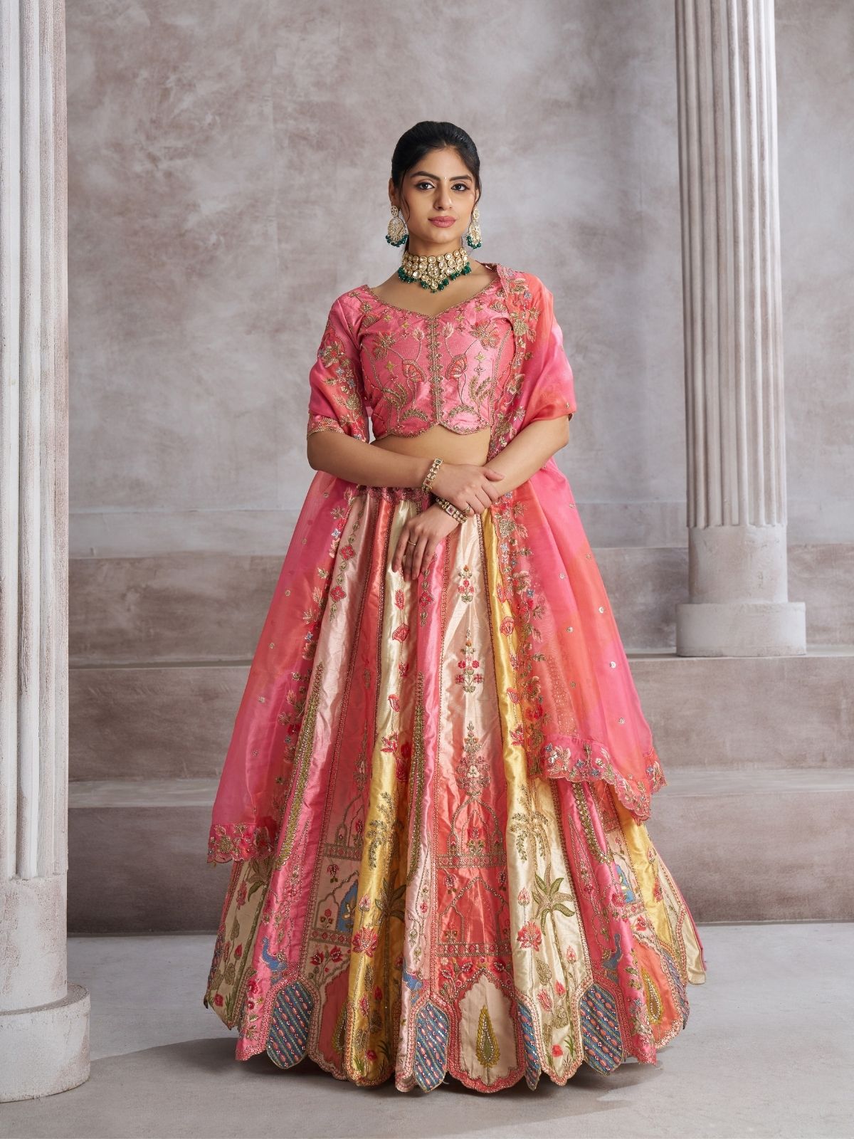 Odette Multicolor Banarasi Silk Embroidered Semi-Stitched Lehenga For Women