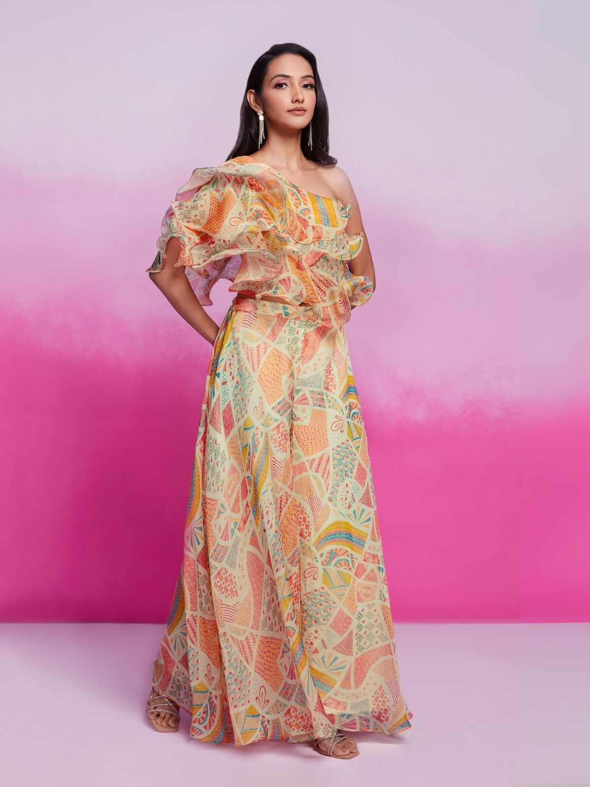 Steal The Spotlight With This Modern Take On Classic Co Ord Set. This Co Ord Set Are Fabricated Silk Blend.