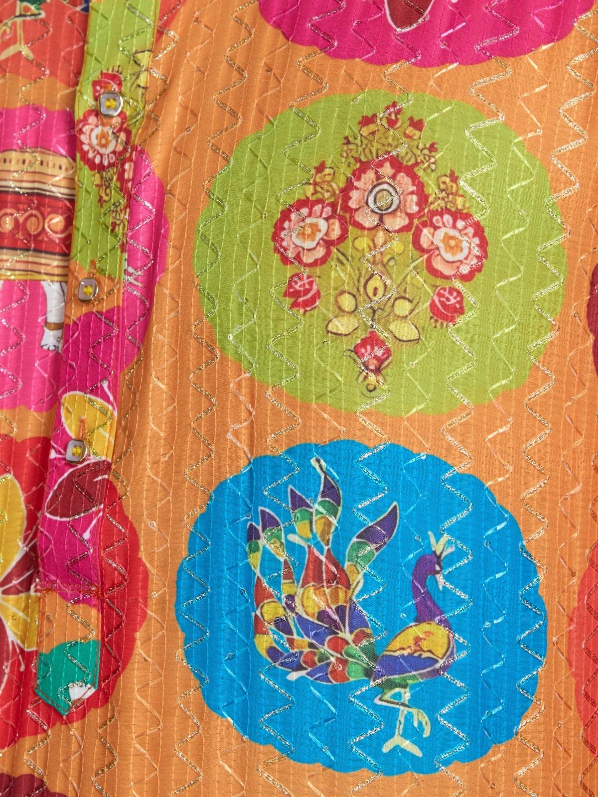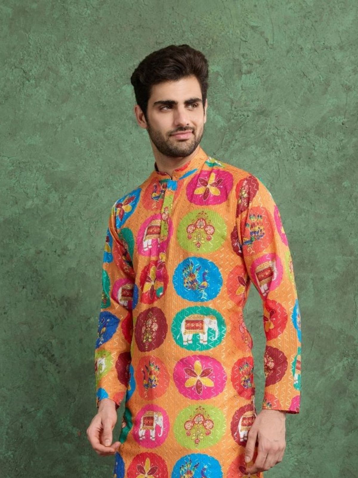 Odette Multicolor Rayon Printed and Embroidered Stitched Kurta For Men