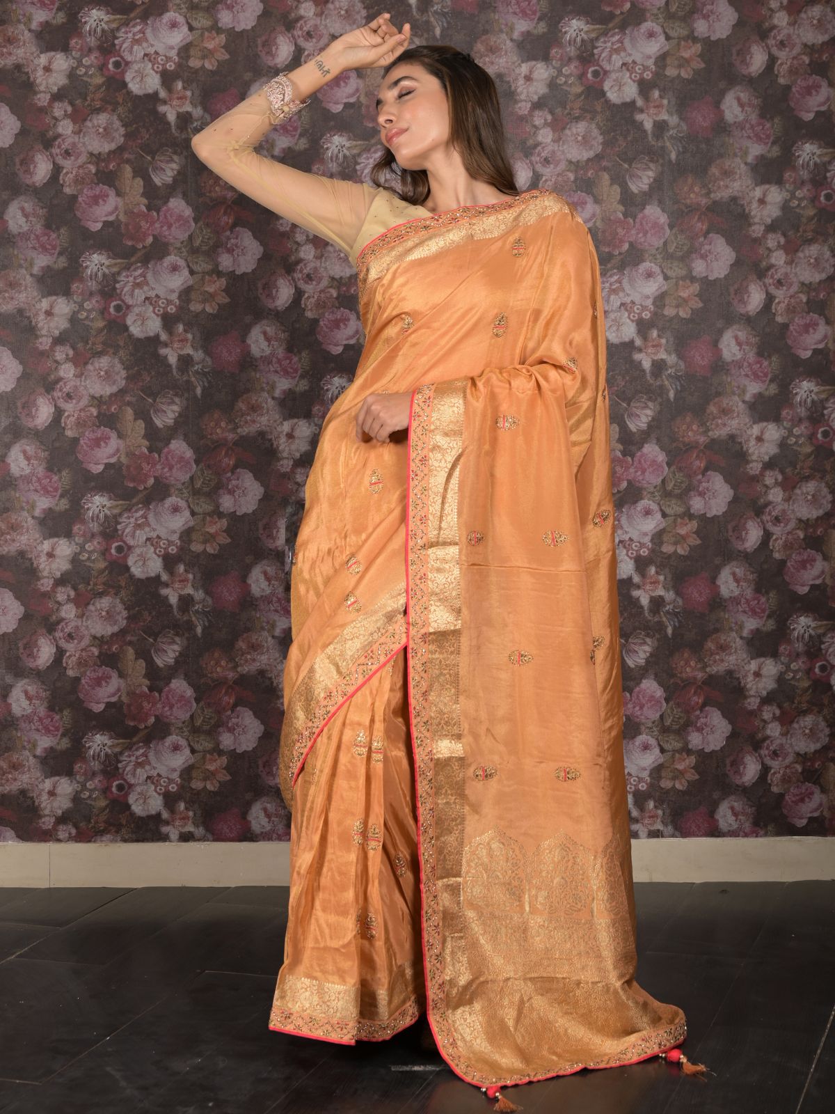 Elevate your elegance with Odette's exquisite saree. This masterpiece of craftsmanship features intricate design that adds a touch of timeless beauty to your look. Made from premium fabric, this saree is perfect for special occasions, exuding luxury and charm with every drape. Shop now and step into the spotlight!