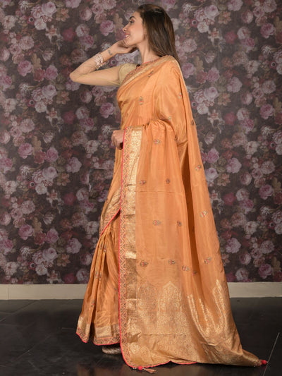 Odette Mustard Woven Silk Blend Saree With Unstitched Blouse For Women